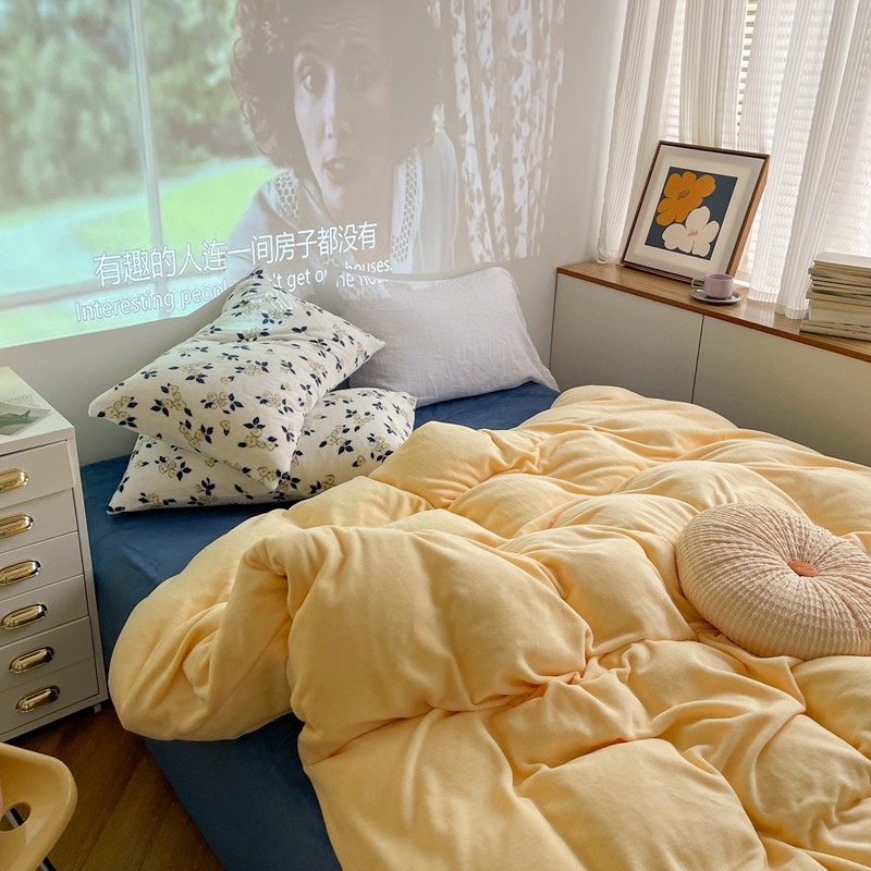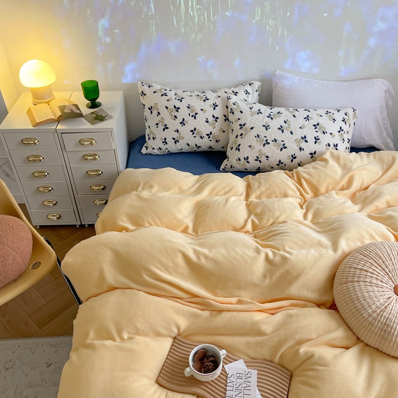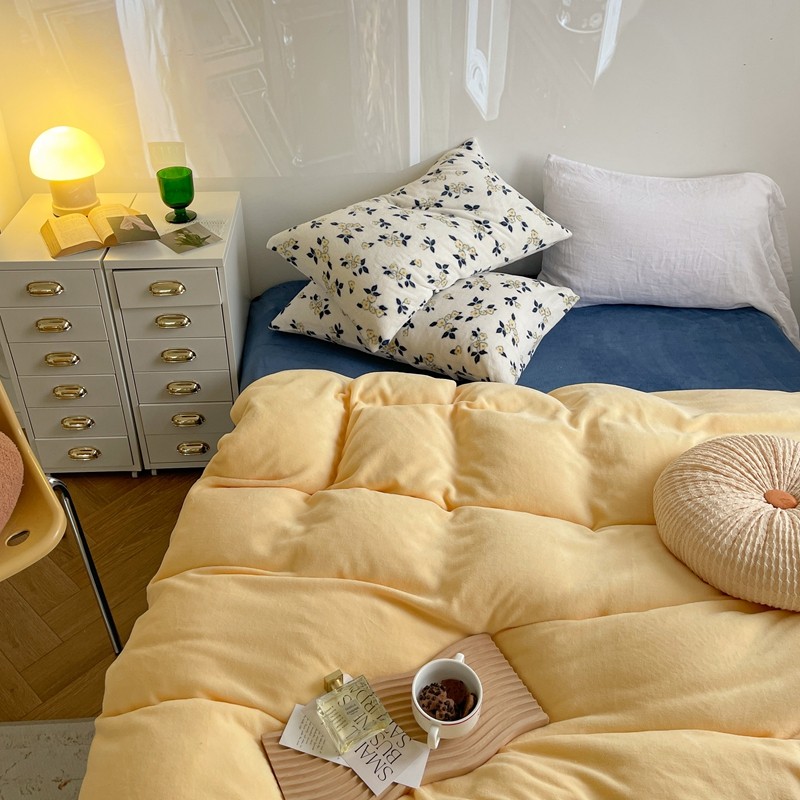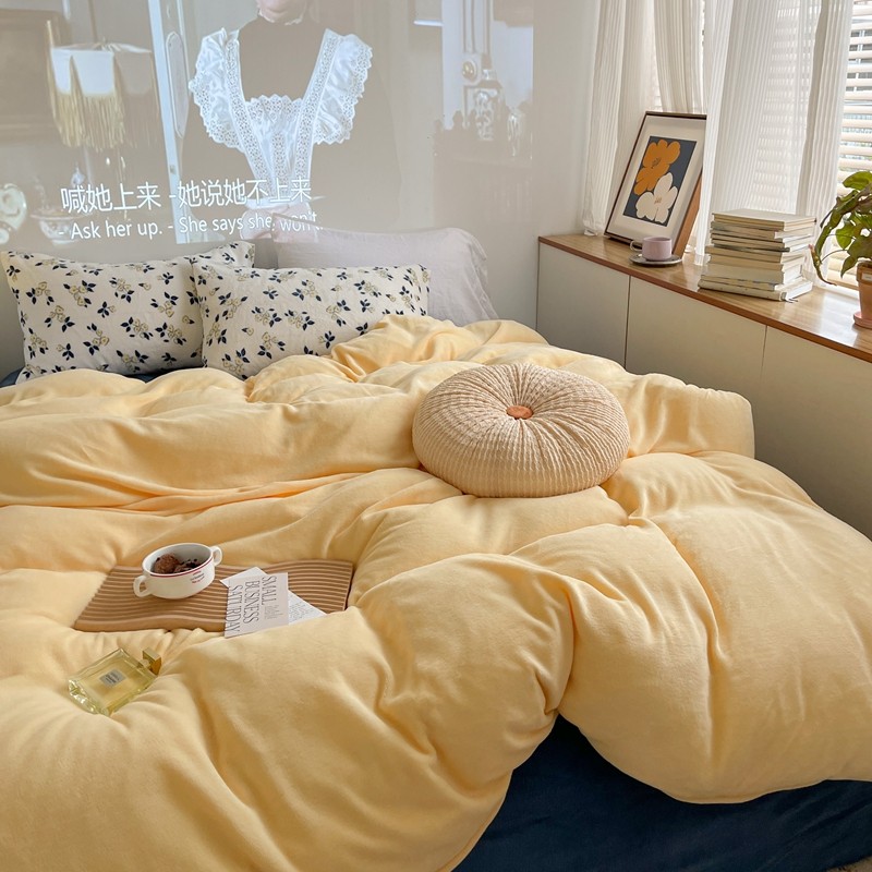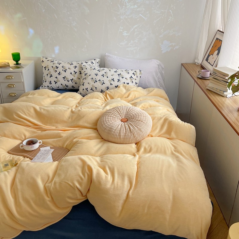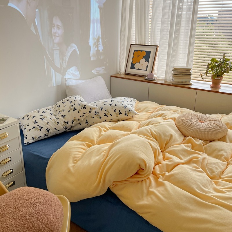 柚子2022新款ins混搭风牛奶绒小碎花套件 蜜柑