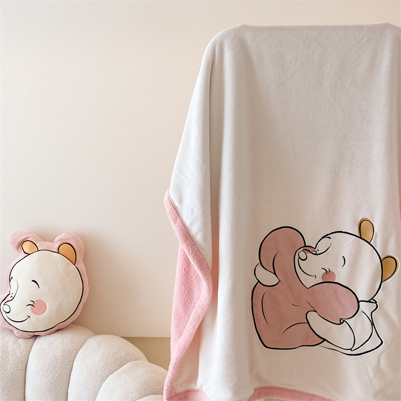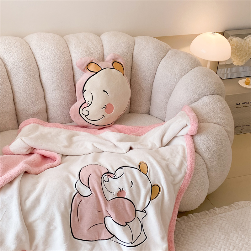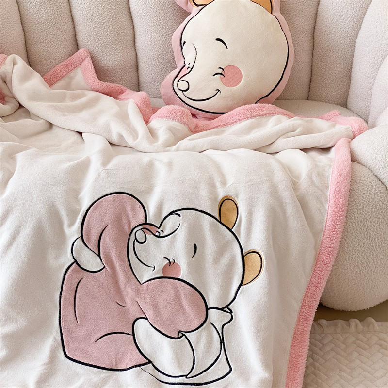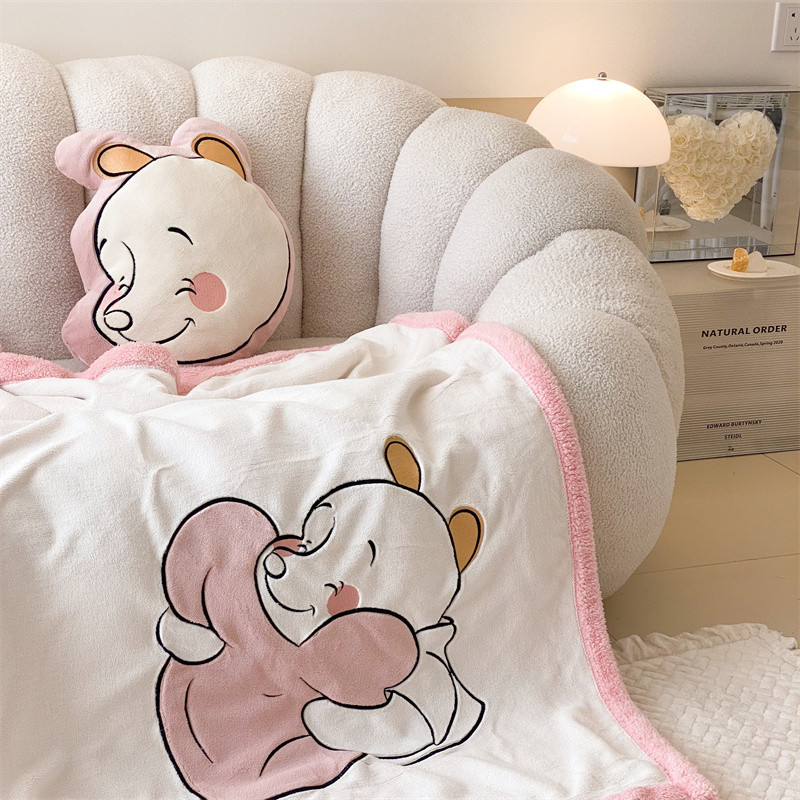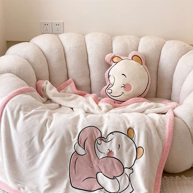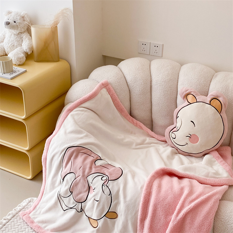 朗莎 2022款迪士尼230g加厚羊羔绒牛奶绒立体贴布绣毛毯 维尼