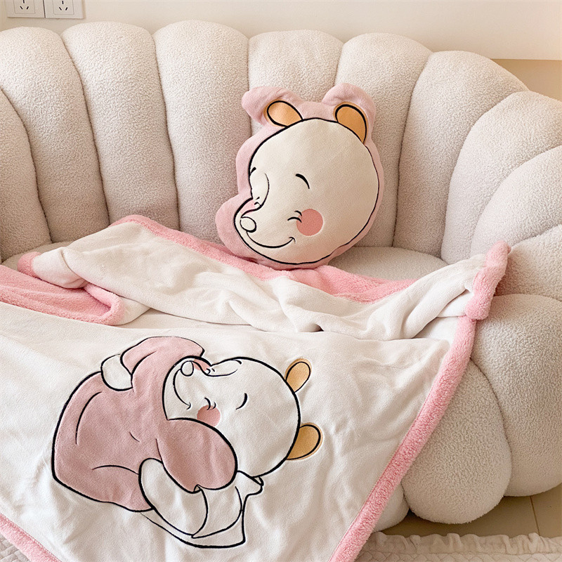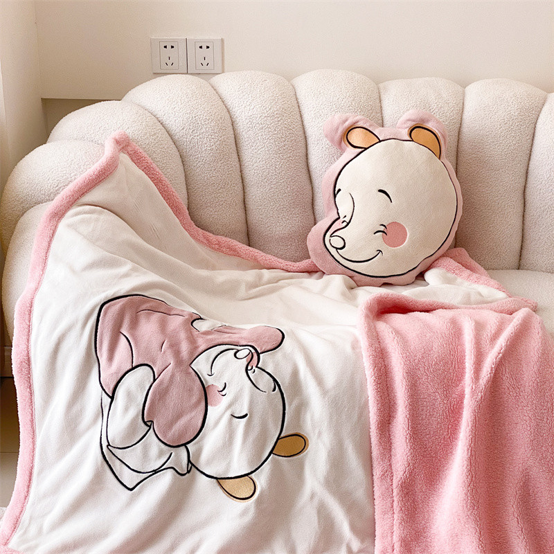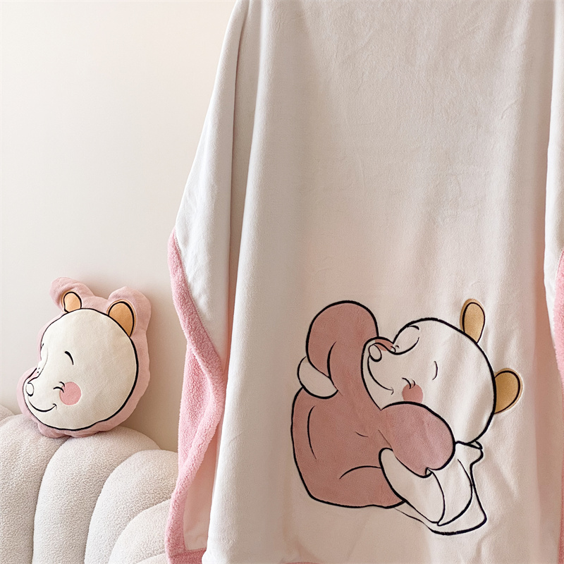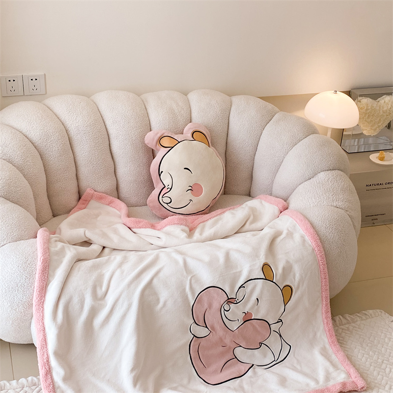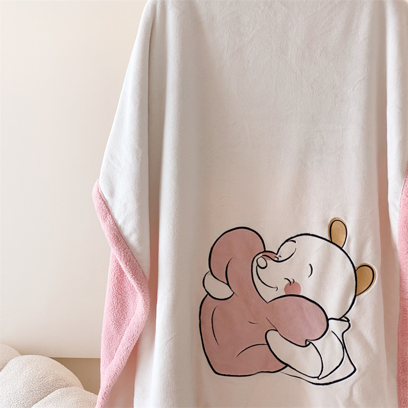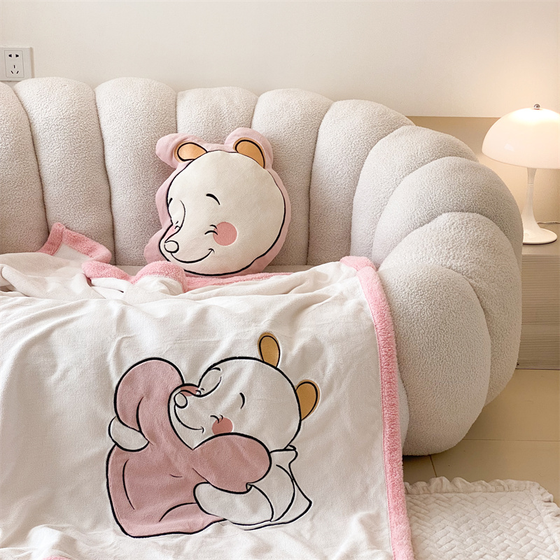 朗莎 2022款迪士尼230g加厚羊羔绒牛奶绒立体贴布绣毛毯 维尼