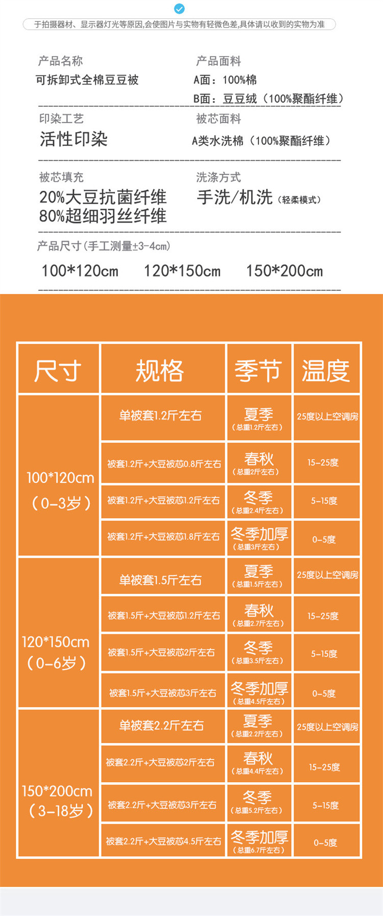 120*150cm春秋单被芯 | ¥30.00 |