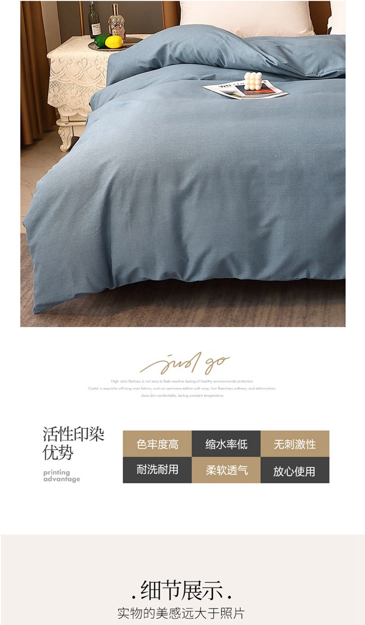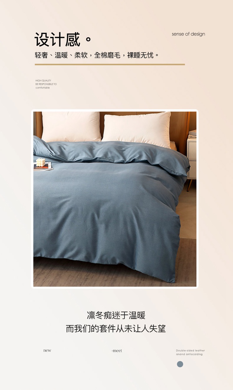 商品名称:晶缦家纺 2022新款加厚全棉纯色生态磨毛多规格单被套 纯依-蓝灰