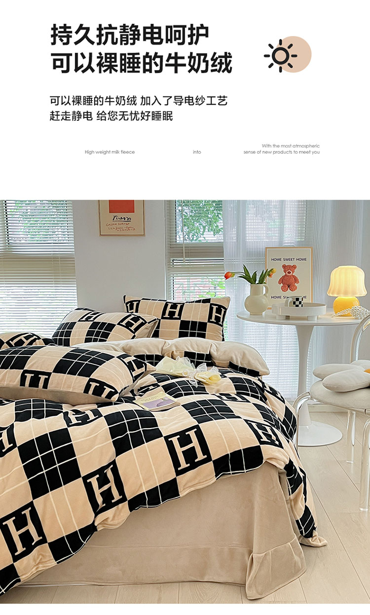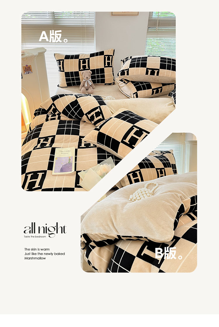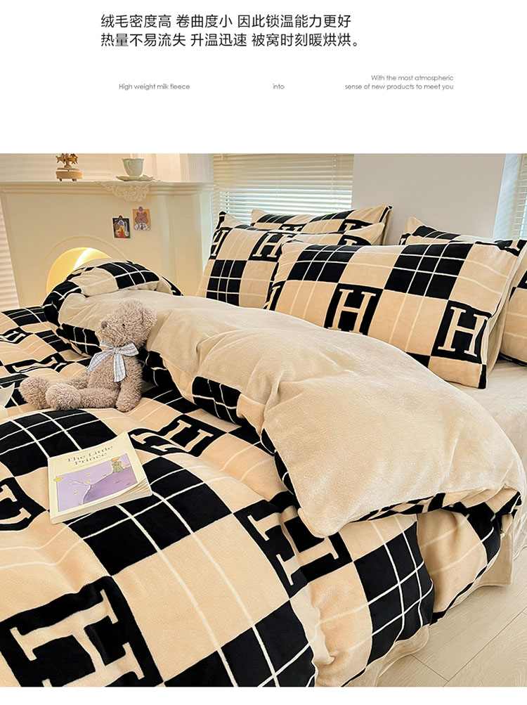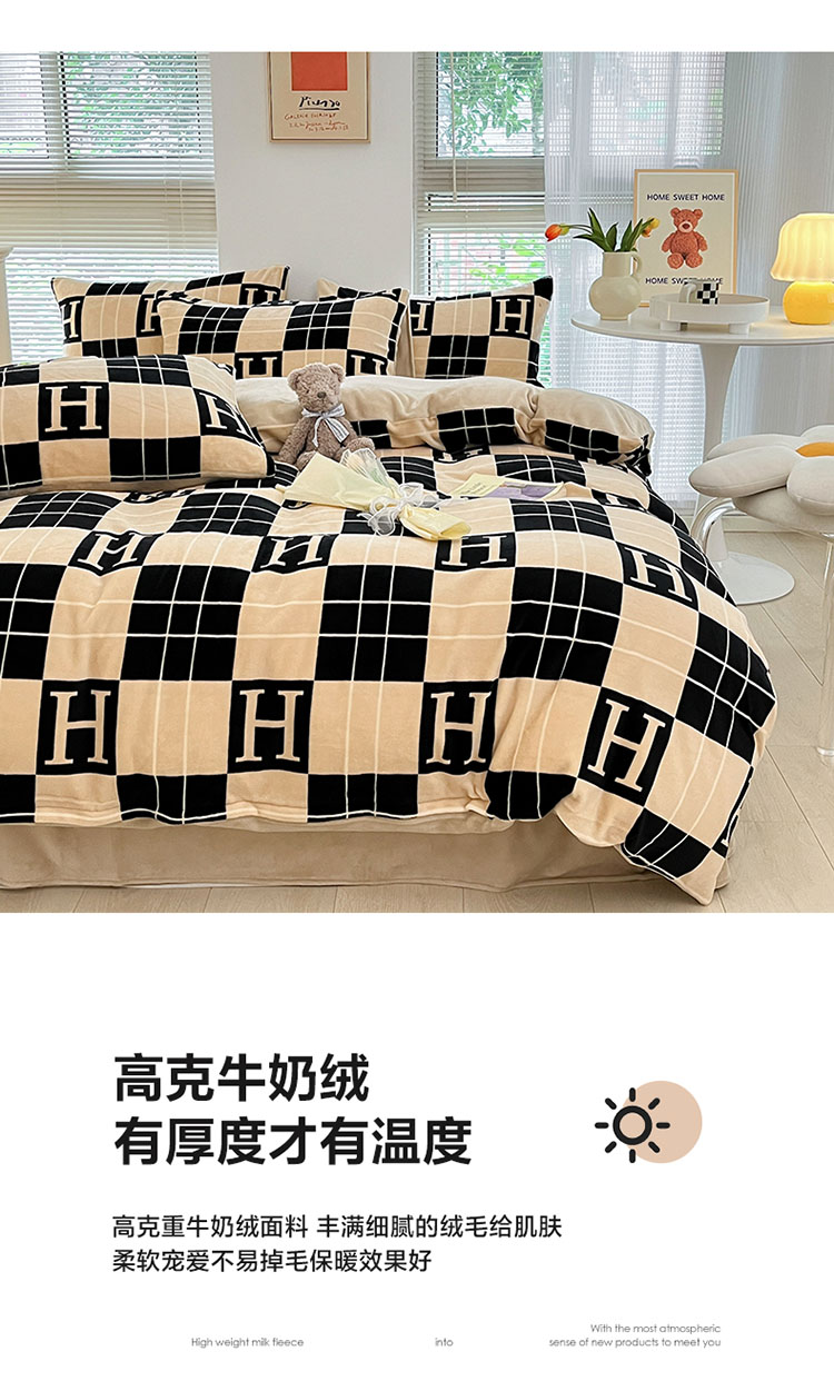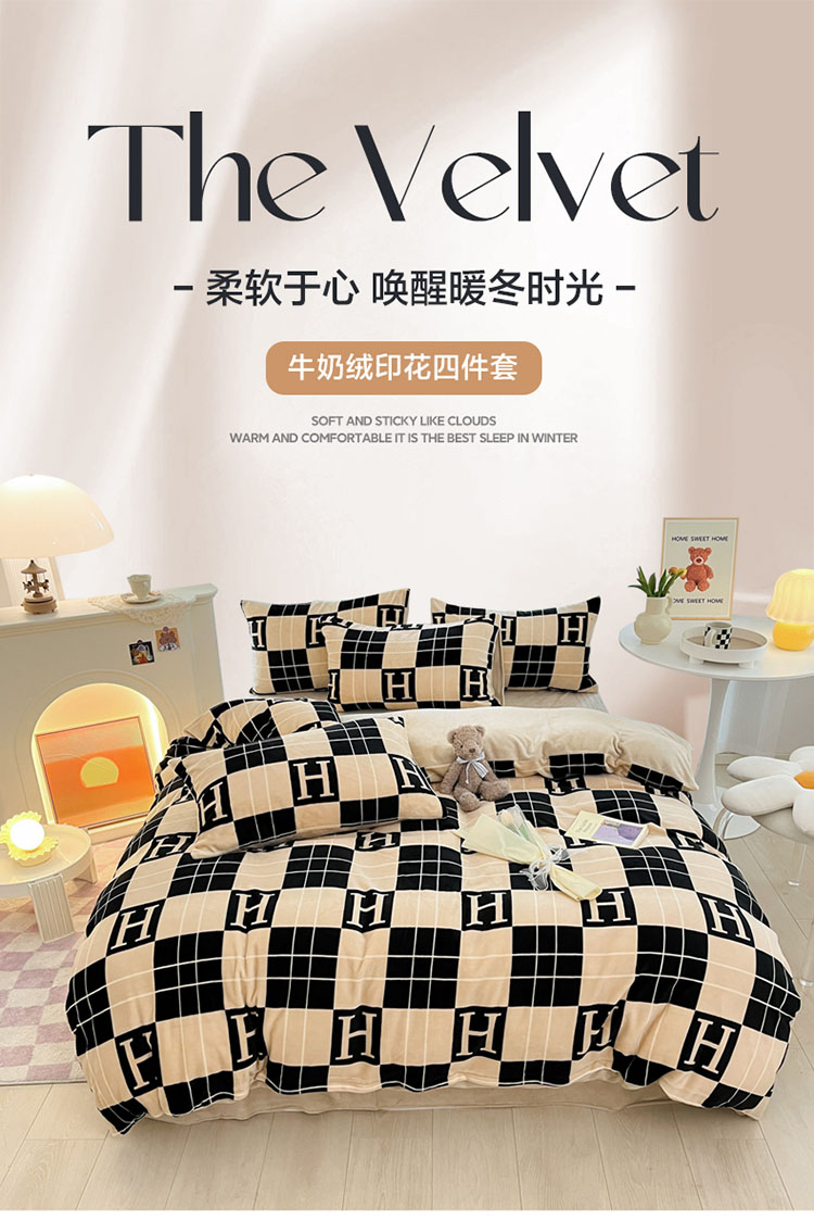 帅露 2022新款牛奶绒印花四件套 曲奇