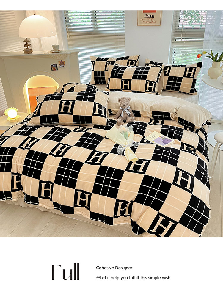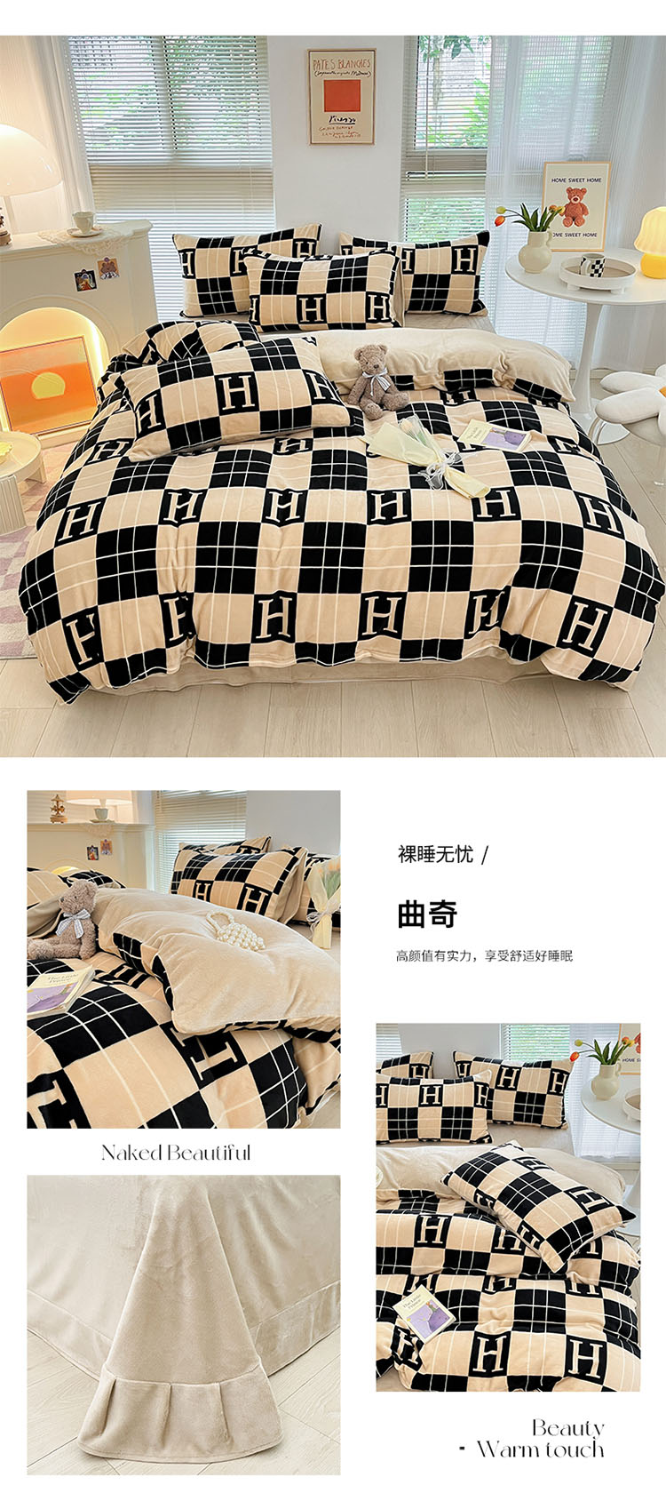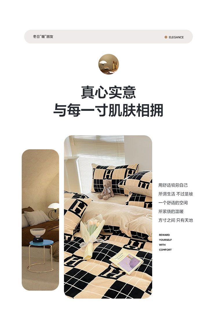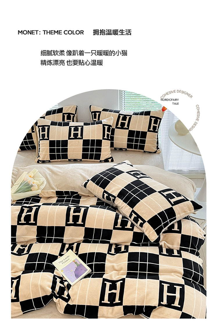 帅露 2022新款牛奶绒印花四件套 曲奇