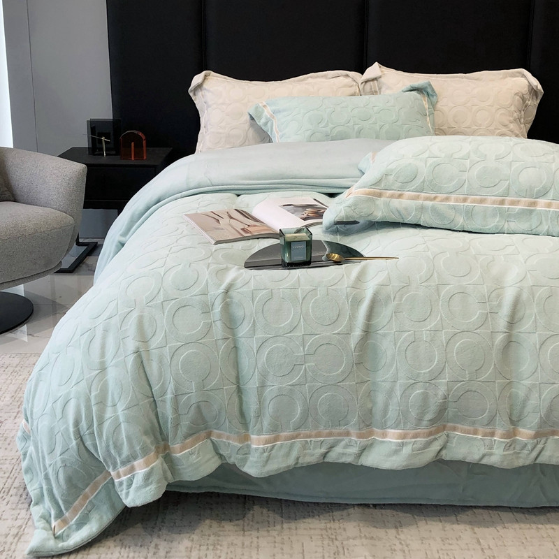 太古汇 2022新款雕花牛奶绒四件套-coco系列 coco-绿