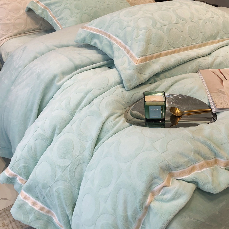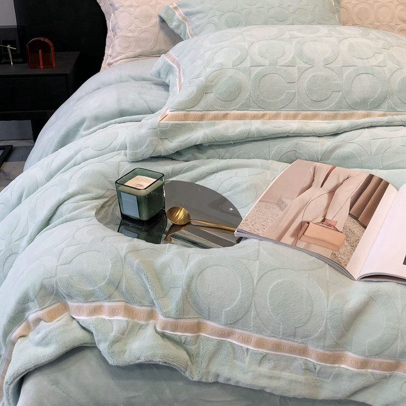 商品名称:太古汇 2022新款雕花牛奶绒四件套-coco系列 coco-绿