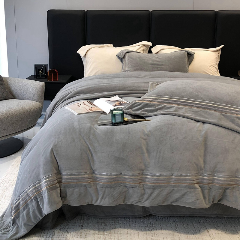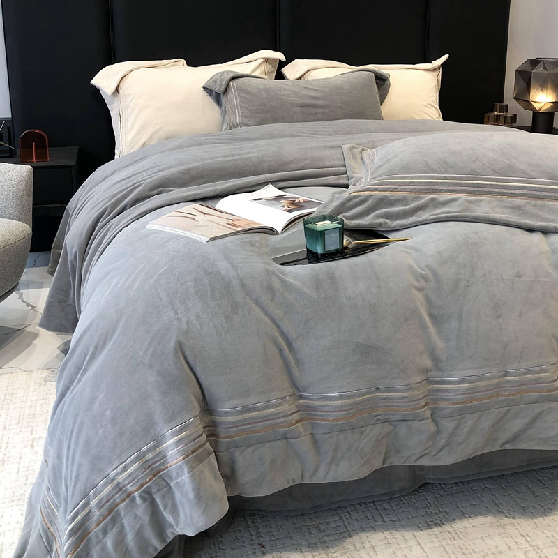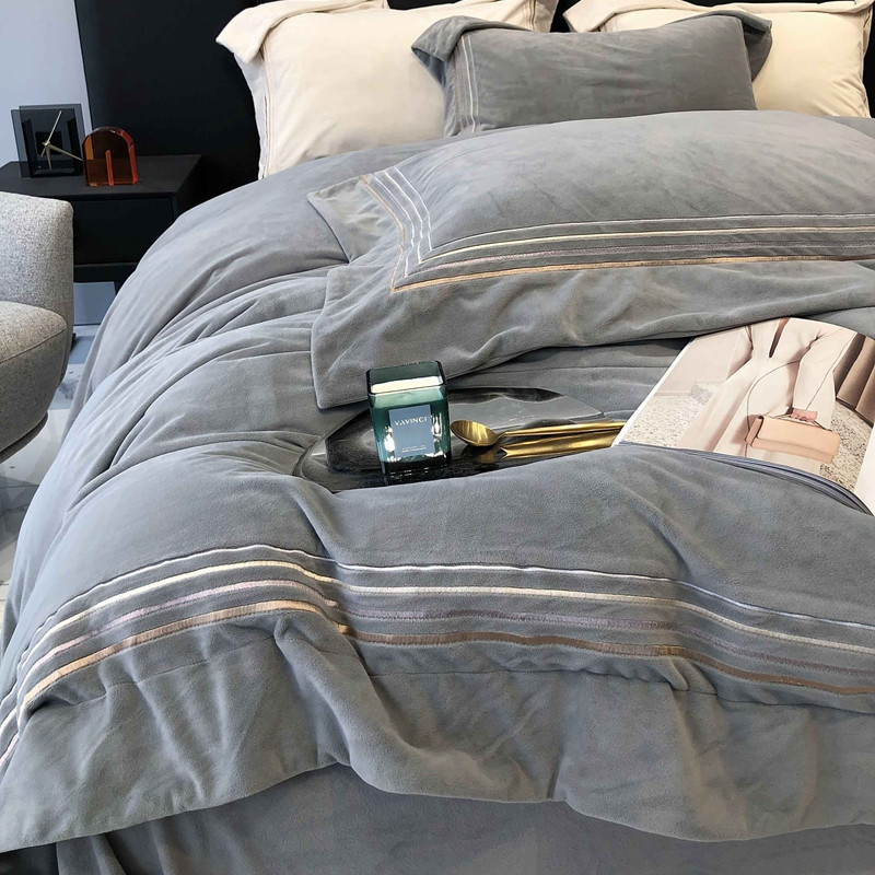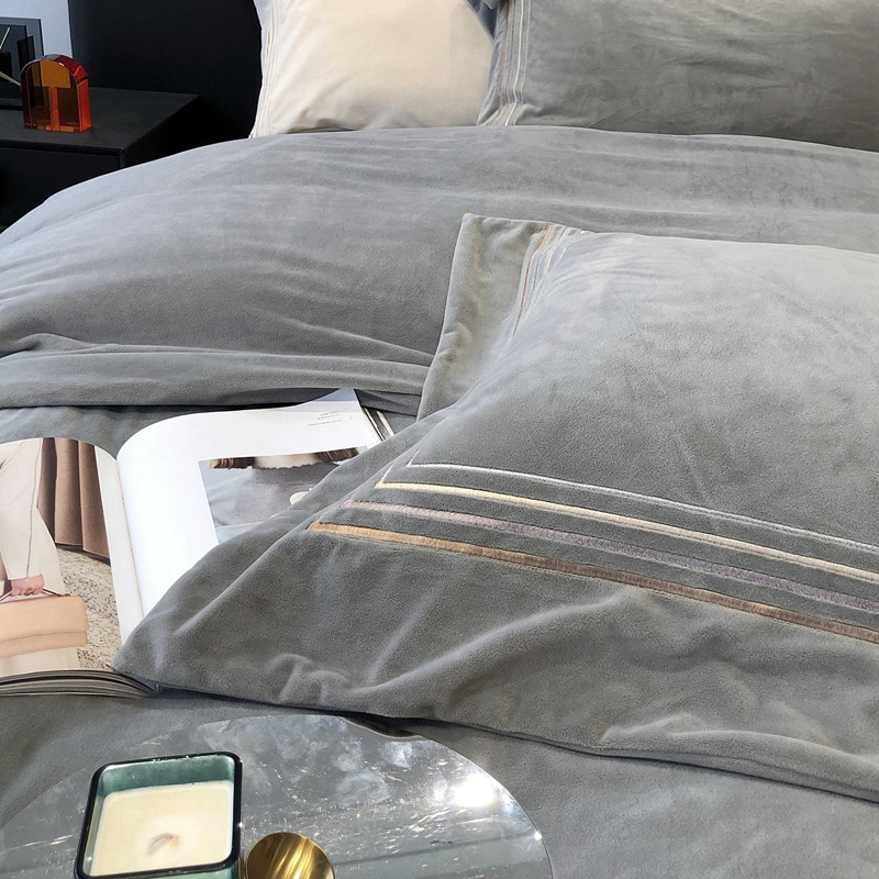 太古汇 2022新款婴儿绒绣花四件套-米兰系列 米兰-典雅灰