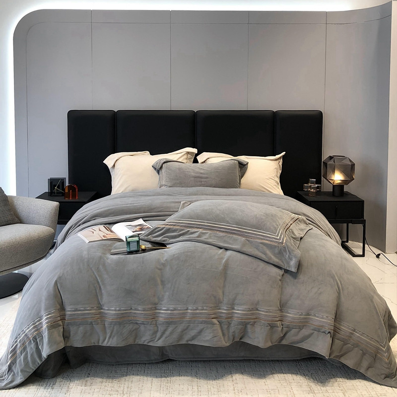 商品名称:太古汇 2022新款婴儿绒绣花四件套-米兰系列 米兰-典雅灰