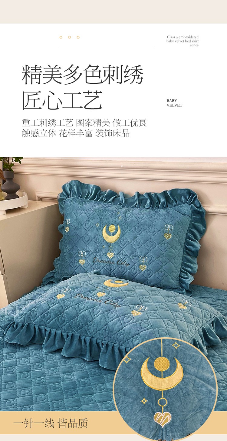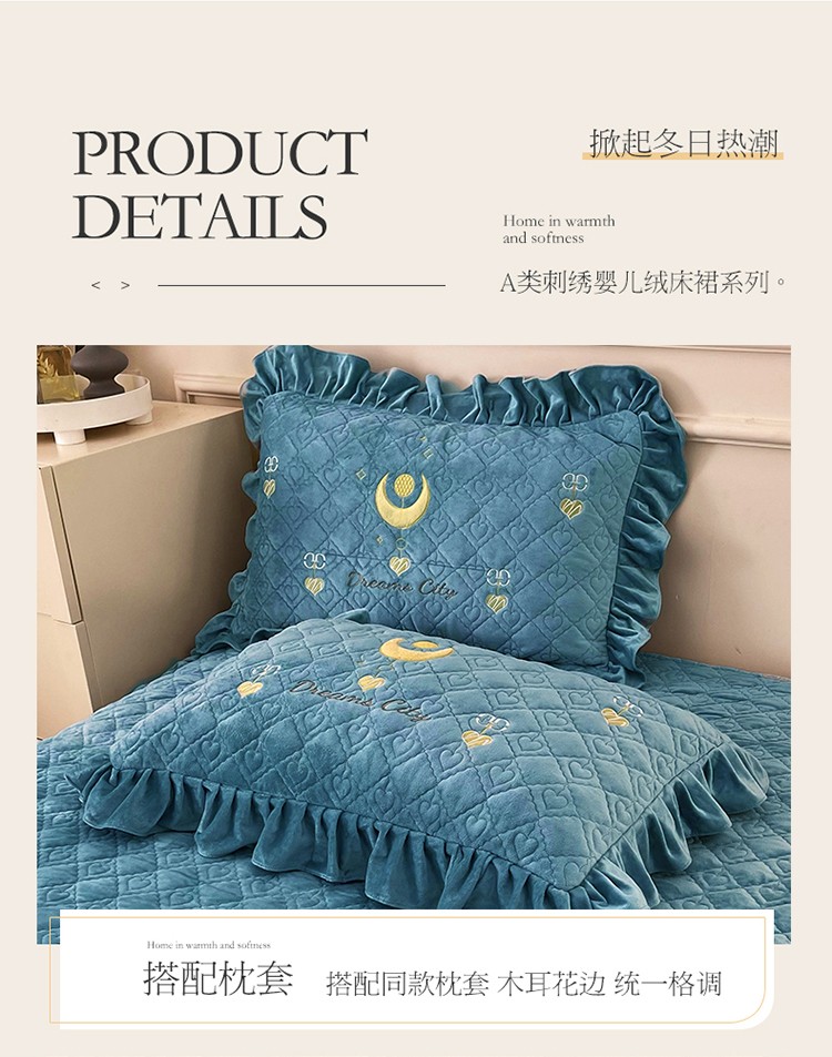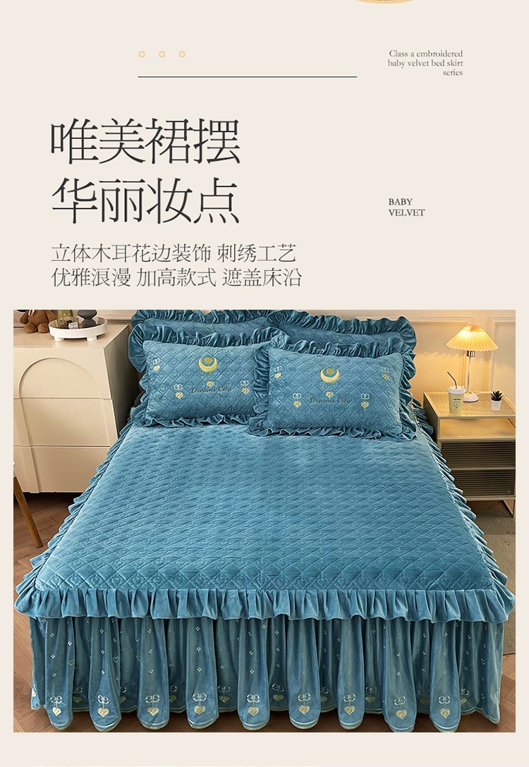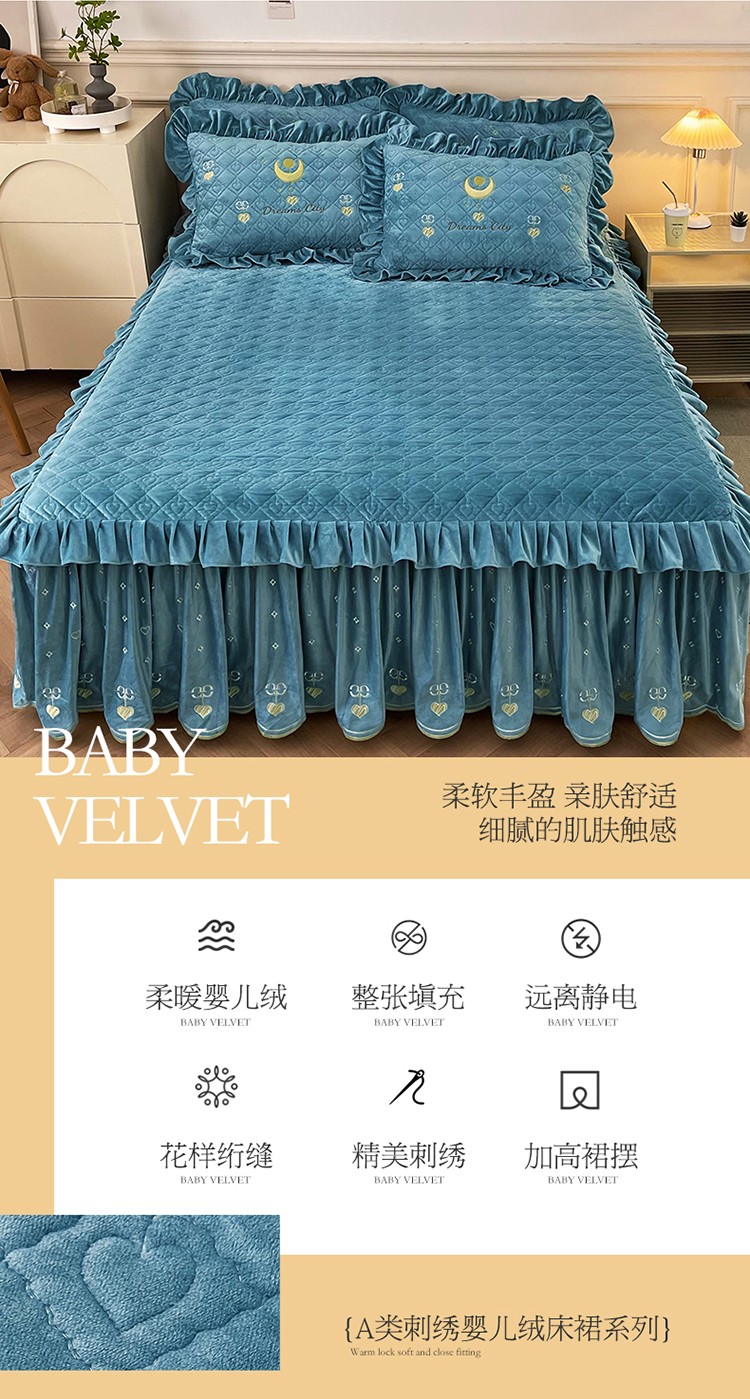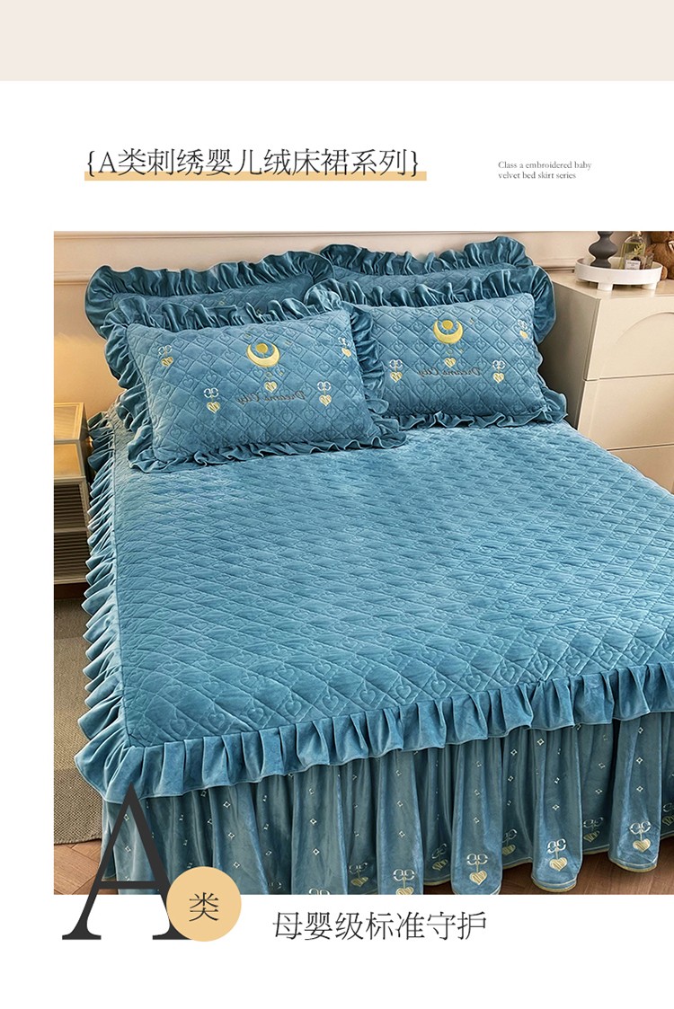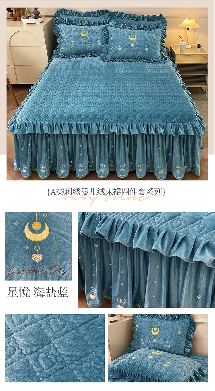 商品名称:宜凡家纺2022新款A类婴儿绒床裙星悦系列三件套星悦-海盐蓝