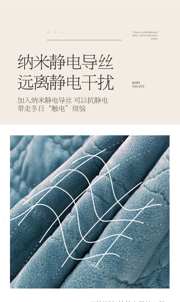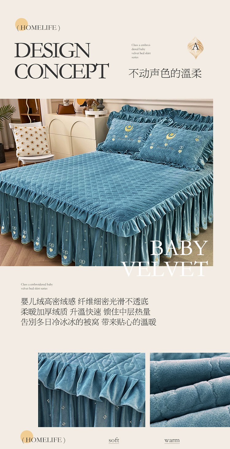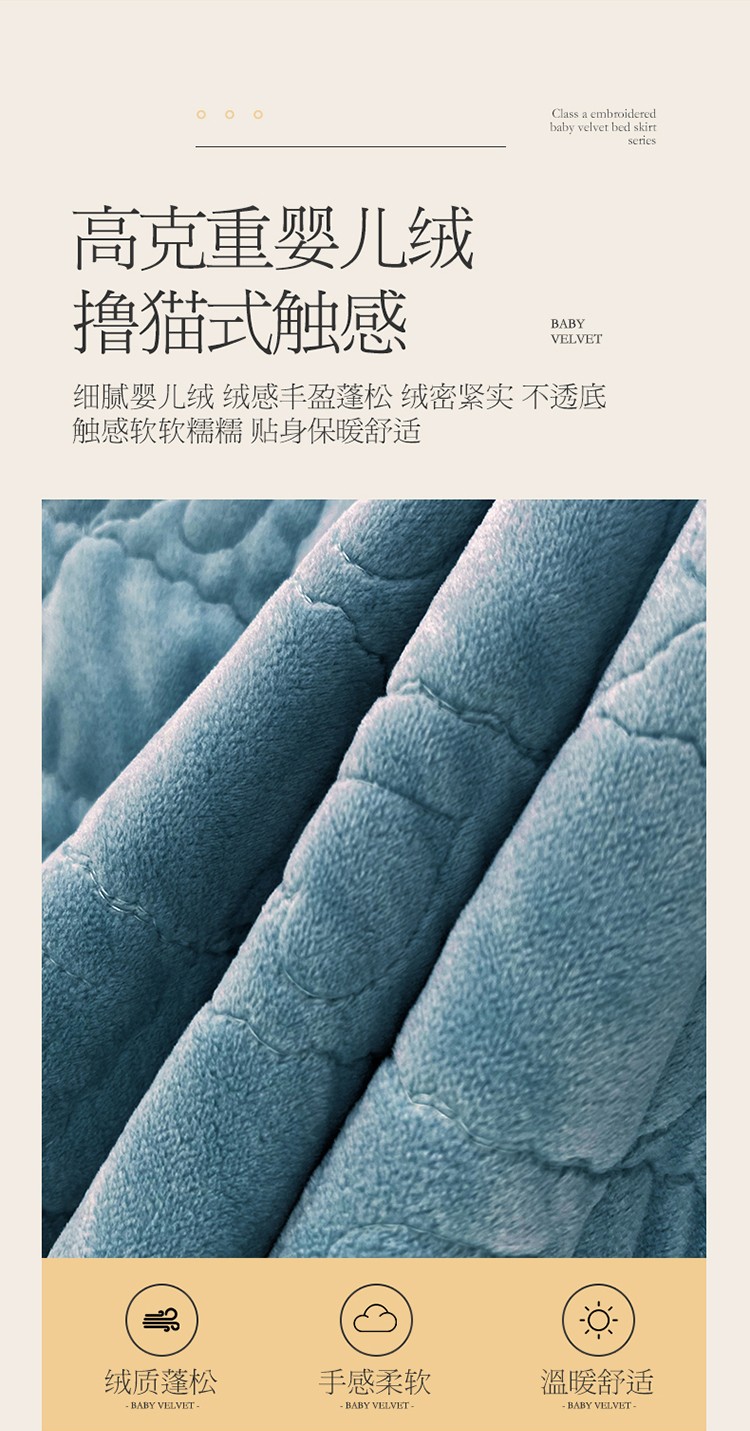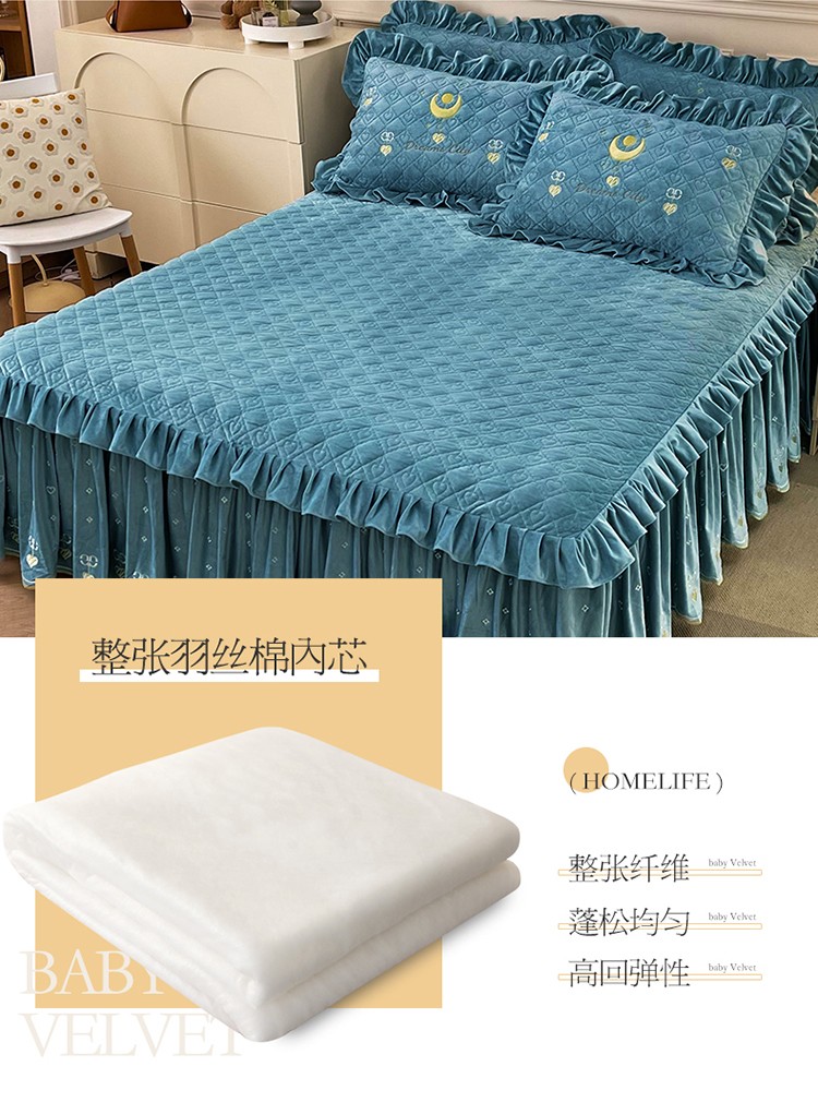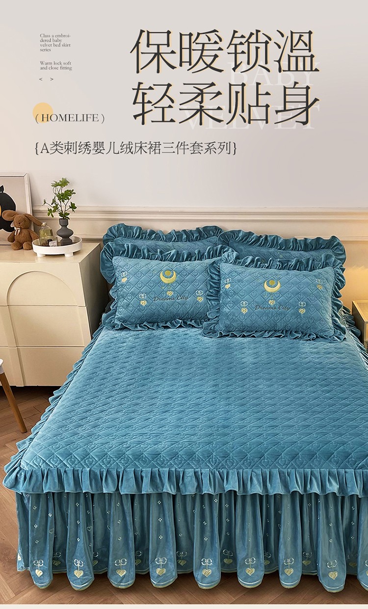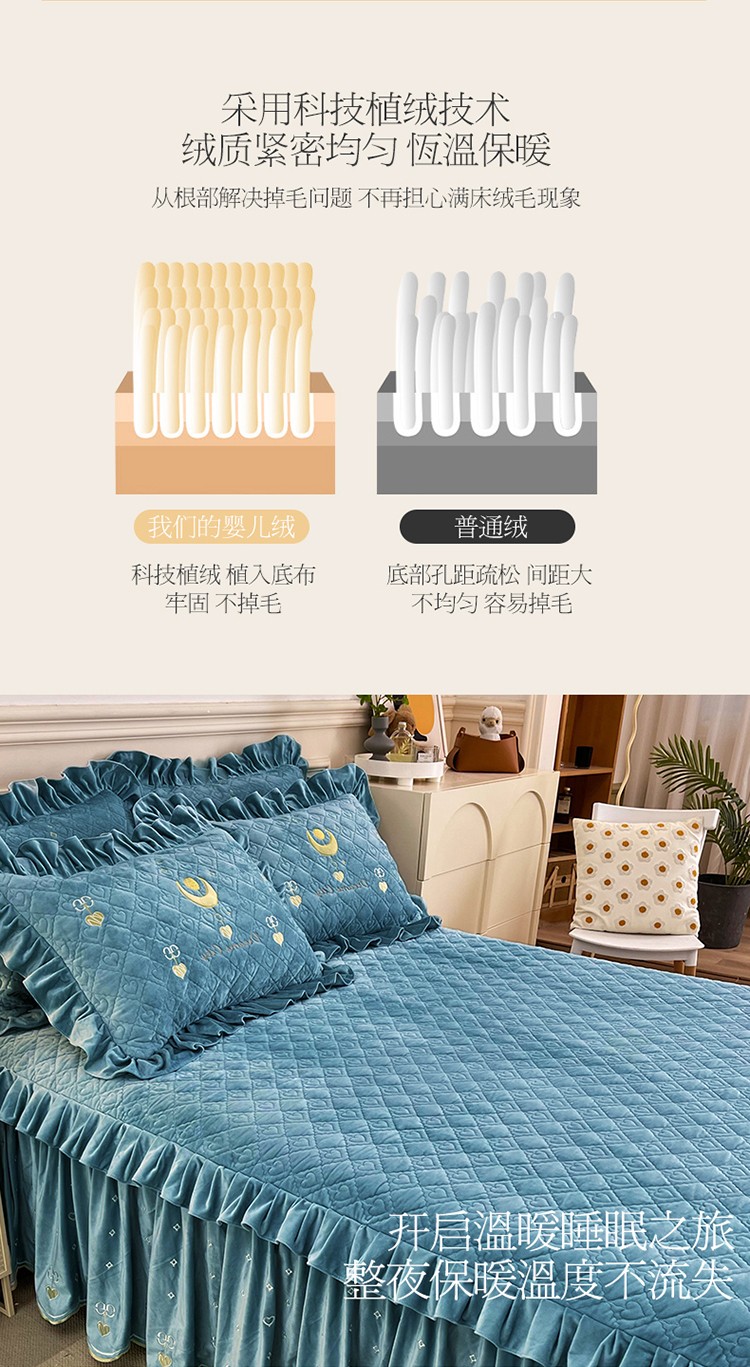 商品名称:宜凡家纺2022新款A类婴儿绒床裙星悦系列三件套星悦-海盐蓝