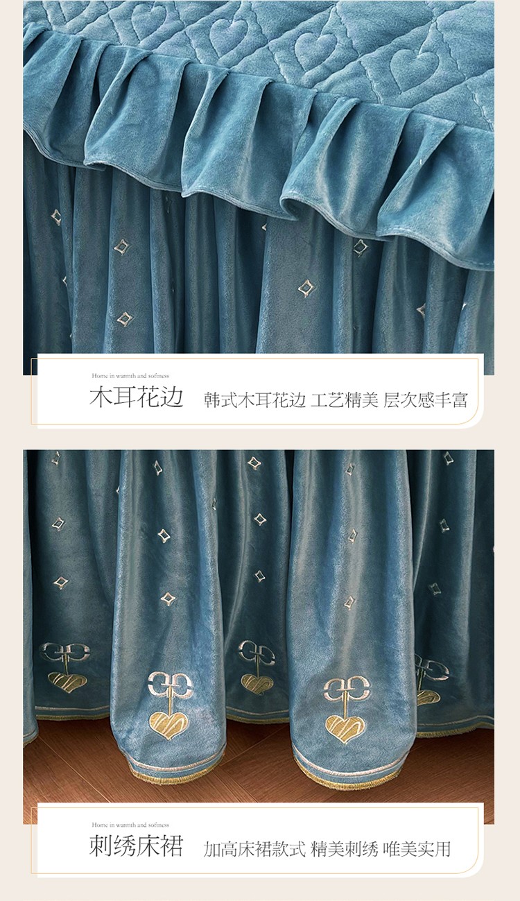 (总)宜凡家纺 2025新款兔绒提花牛奶绒夹棉床裙四件套,爱心 少女粉,爱心 粉紫,爱心 驼色,蝶舞 大红,蝶舞 米色,蝶舞 浅紫,蝶舞 玉色,简爱 苍青,简爱 豆沙紫,简爱 玉色,樱桃 苍青,樱桃 豆沙紫,樱桃 奶油白