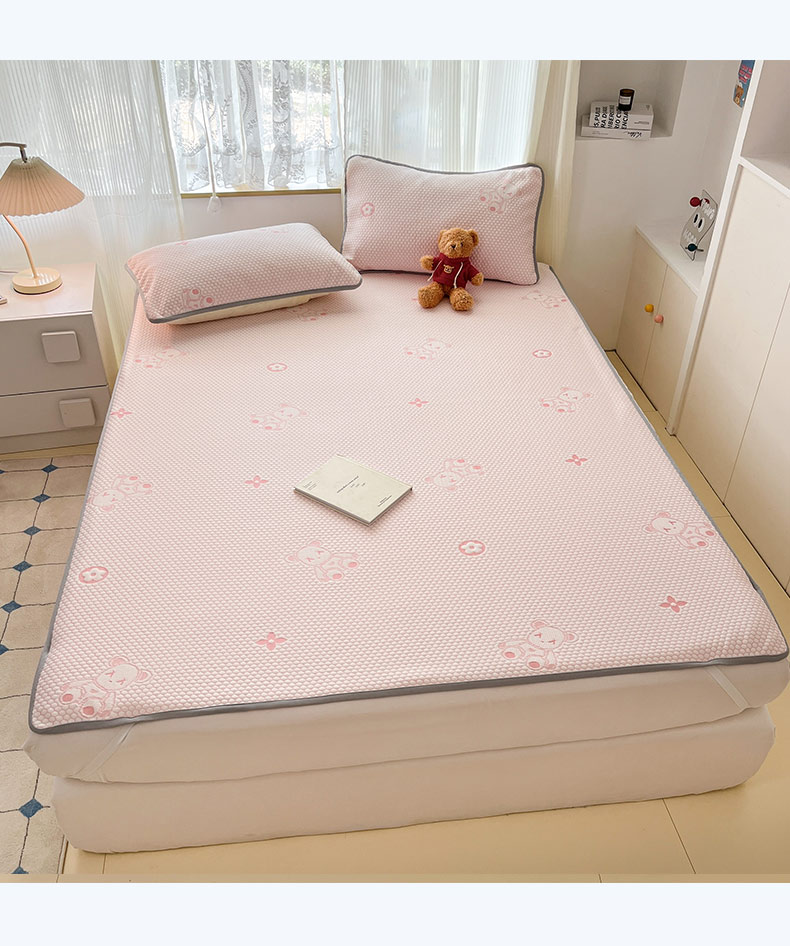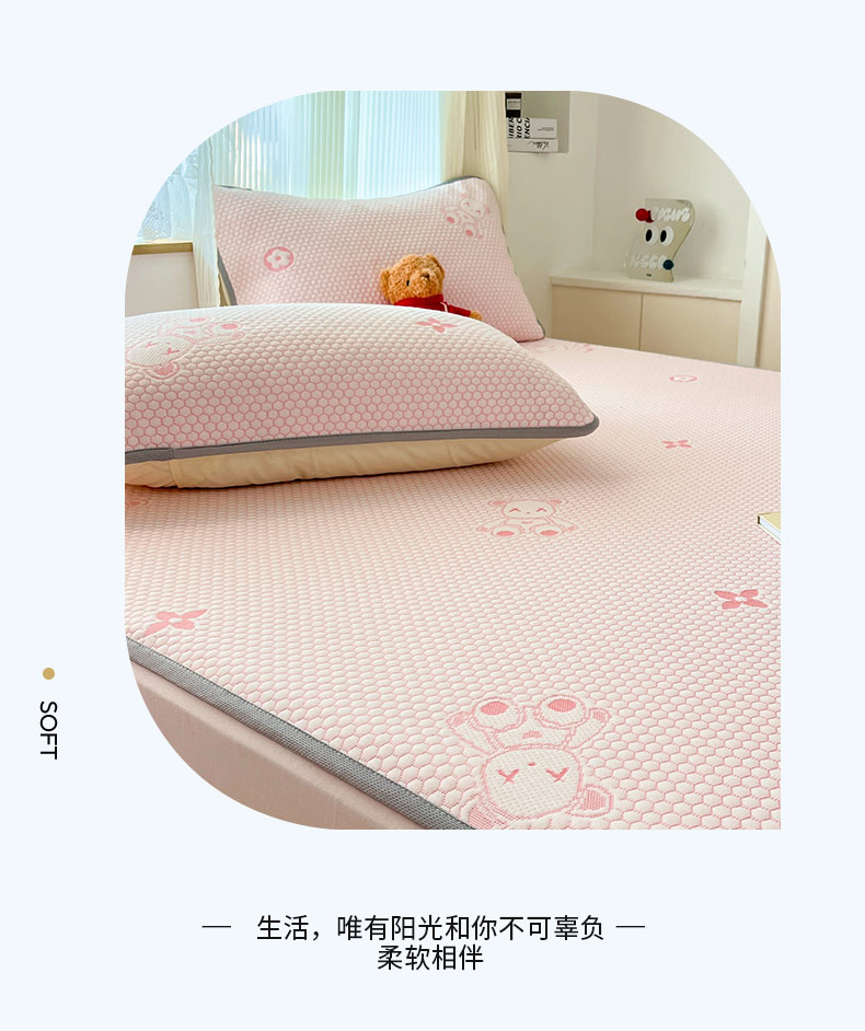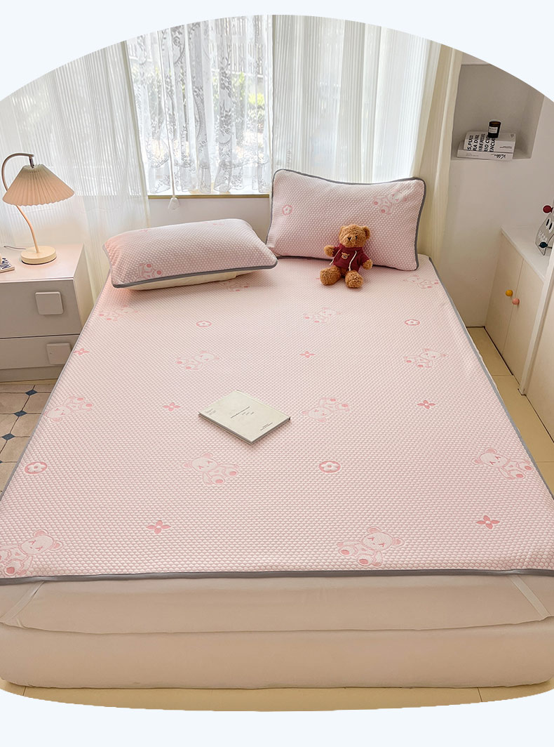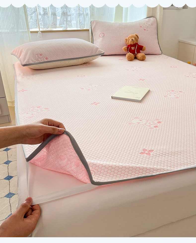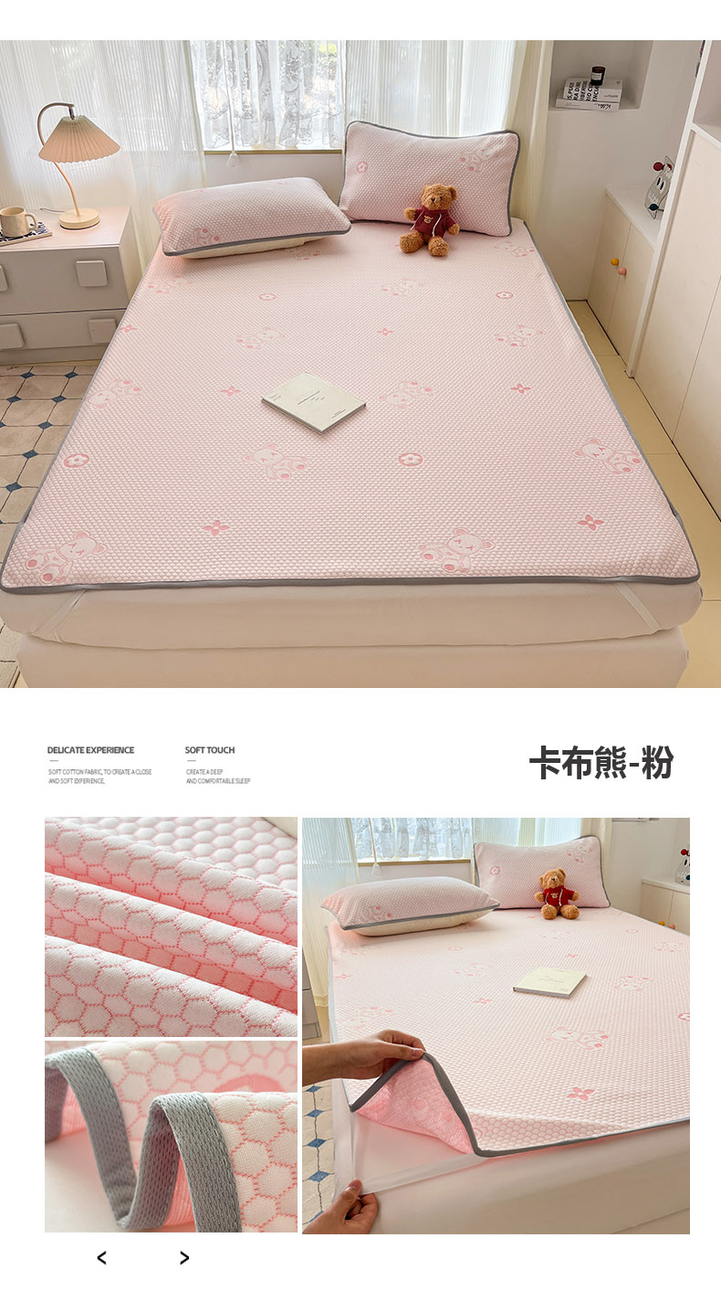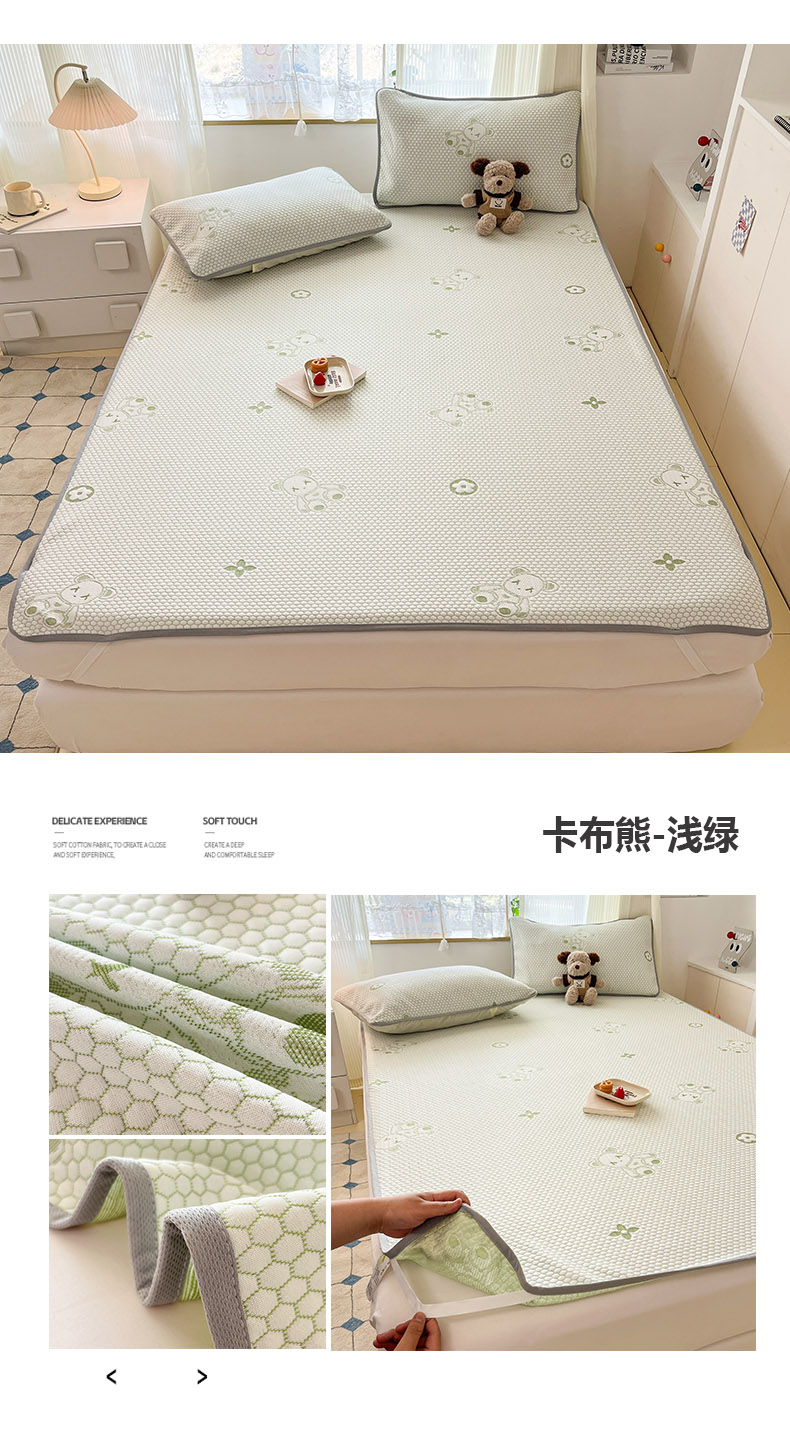 (总)新印象 2025新款凉感3D冰豆豆床裙凉席,纯白,湖蓝,湖绿,嫩绿,浅粉,浅灰