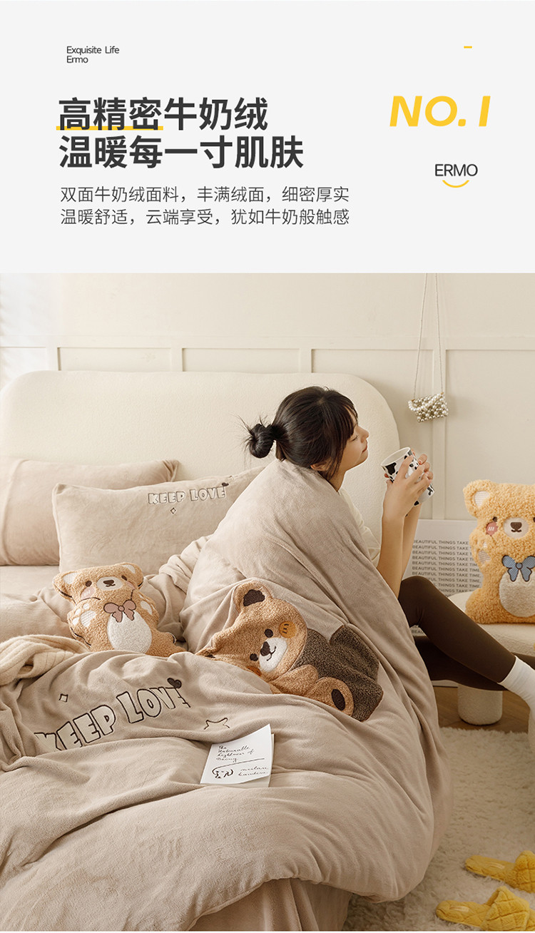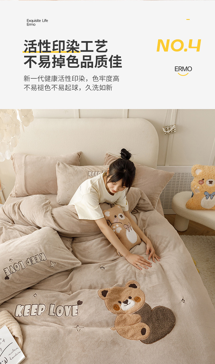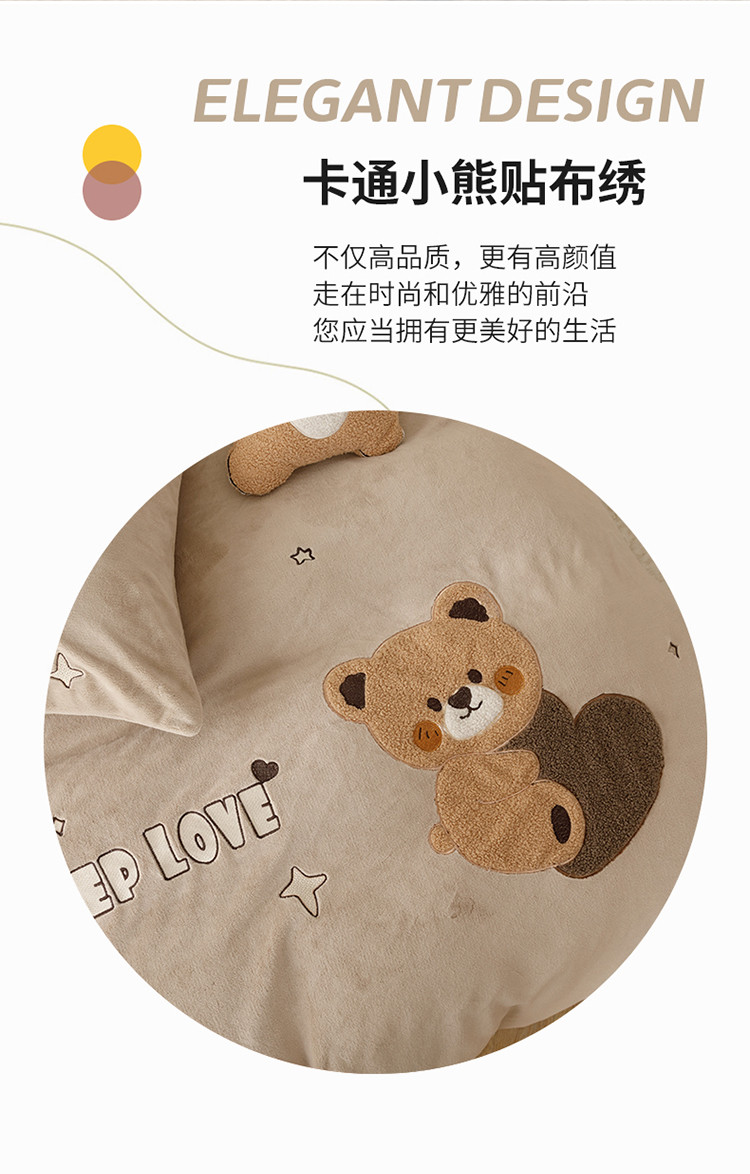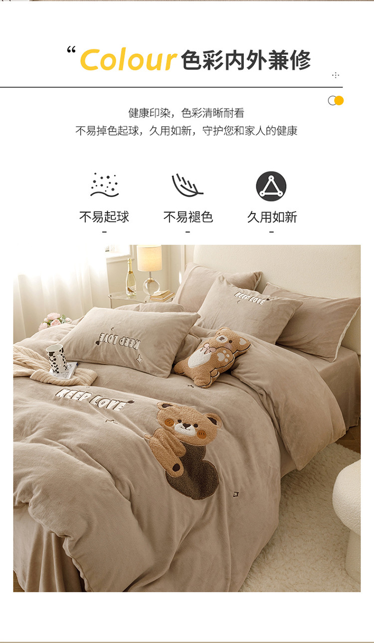 商品名称:铭动 2023新款卡通小熊牛奶绒四件套 爱心熊-咖