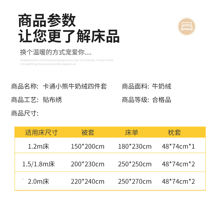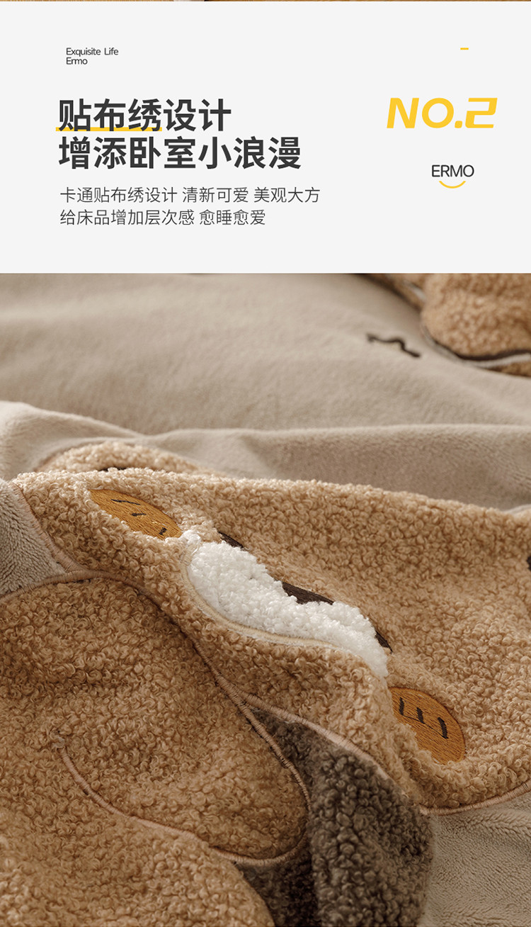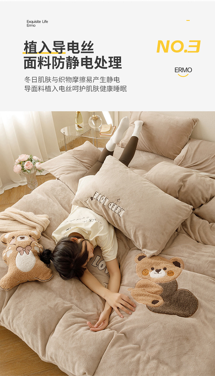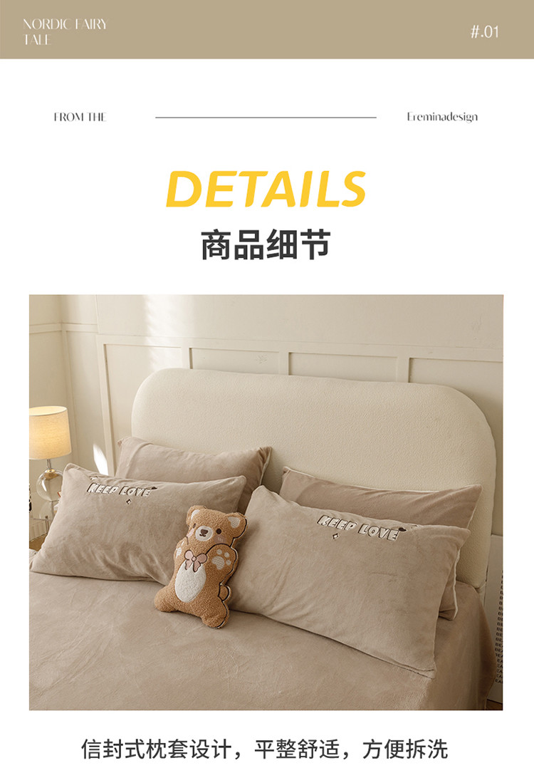 商品名称:铭动 2023新款卡通小熊牛奶绒四件套 爱心熊-咖