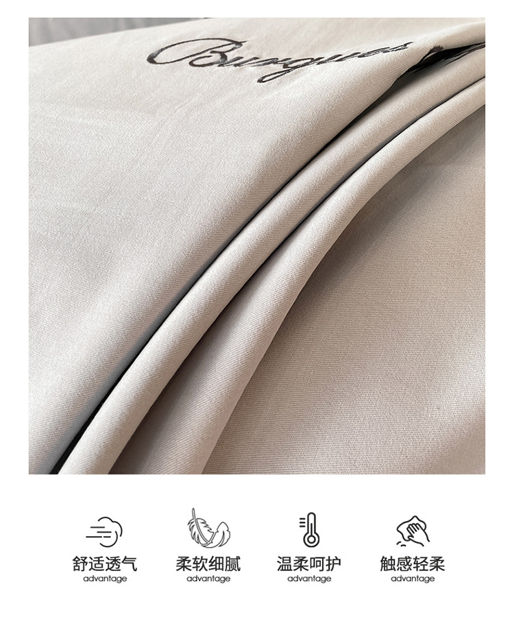 商品名称:金麦 新款高支高密全棉加厚磨毛刺绣四件套—洛克系列 洛可-浅灰