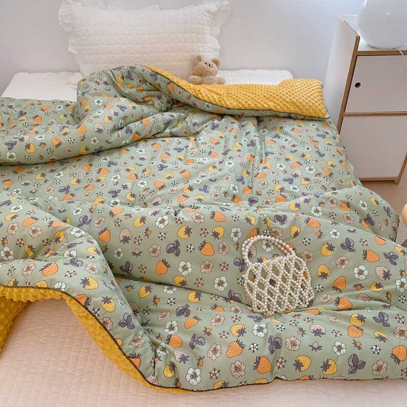 商品名称:星期八 2022新款复古碎花豆豆被冬被春秋被 草莓圣代绿