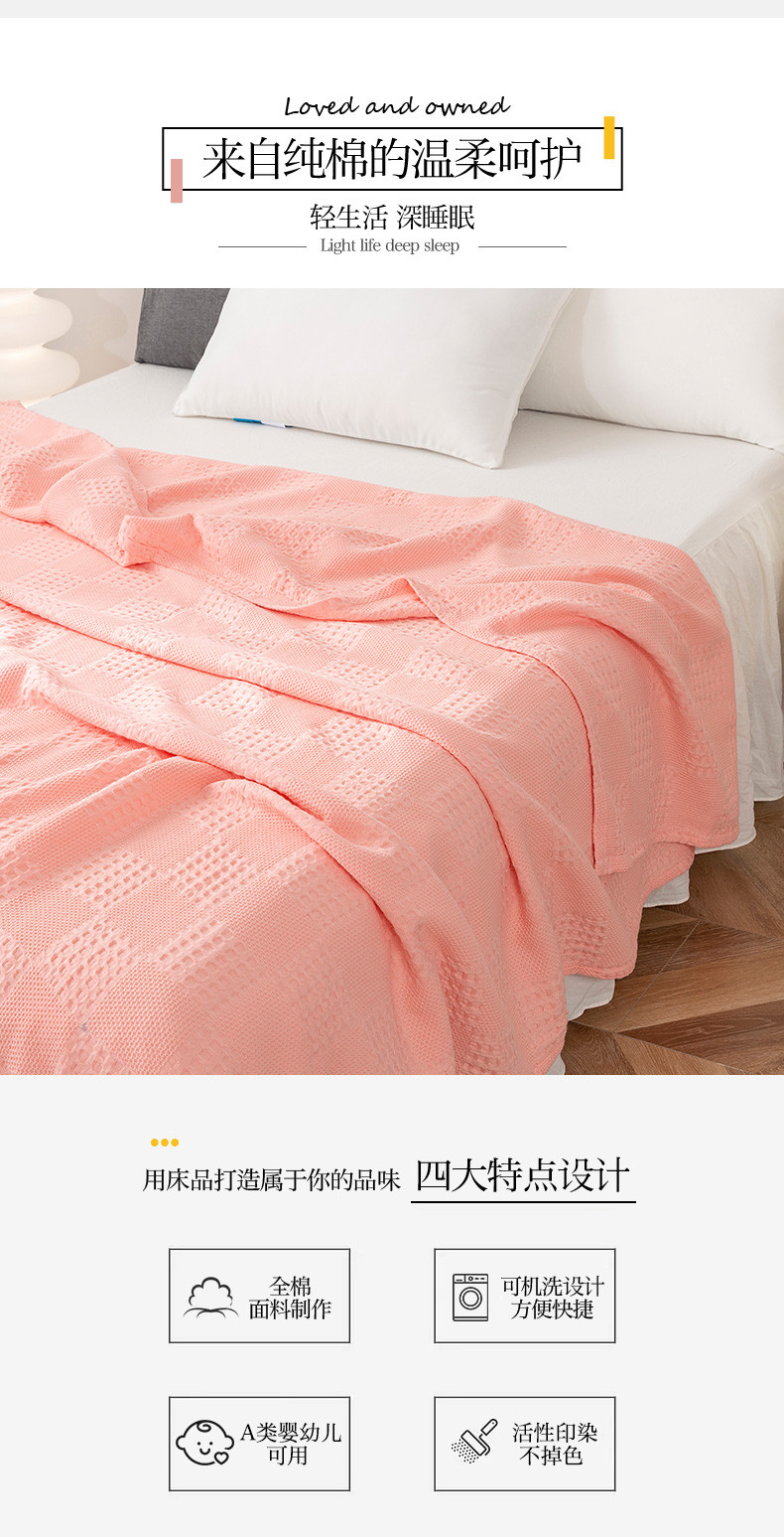 (总)乐家毛巾被 2025春夏新款日式华夫全棉纯棉毛巾被,华夫格-粉,华夫格-灰,华夫格-米,华夫格-深蓝,华夫格-天蓝,华夫格-棕