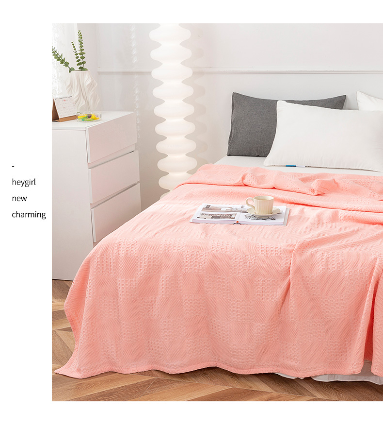 (总)乐家毛巾被(工厂自产自销) 2024新款全棉镂空毯系列,蓝色,浅灰色,深灰色,青色,粉色,黄色