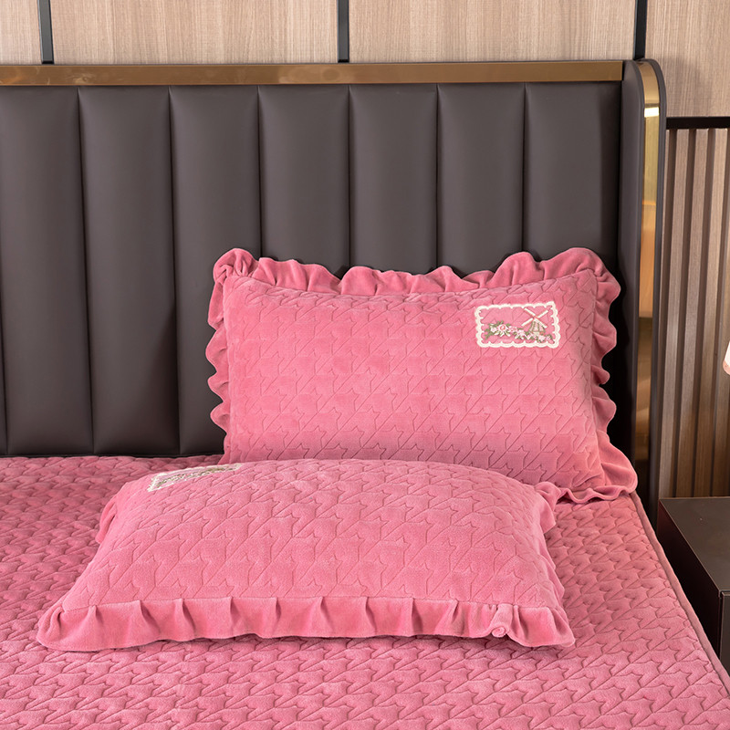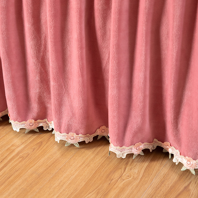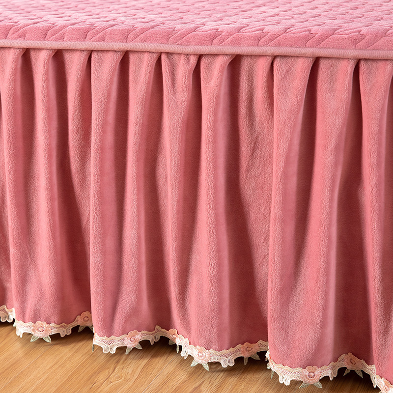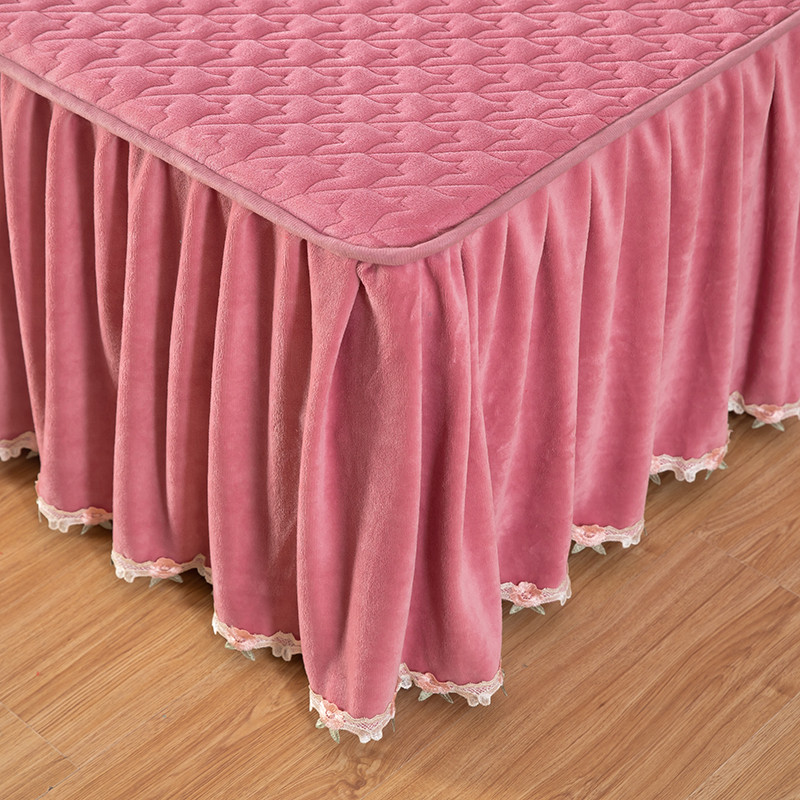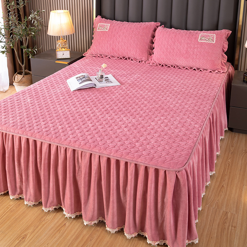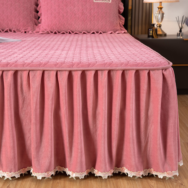木兰花 牛奶绒夹棉纯色床裙水晶法莱绒三件套-国色天香豆沙