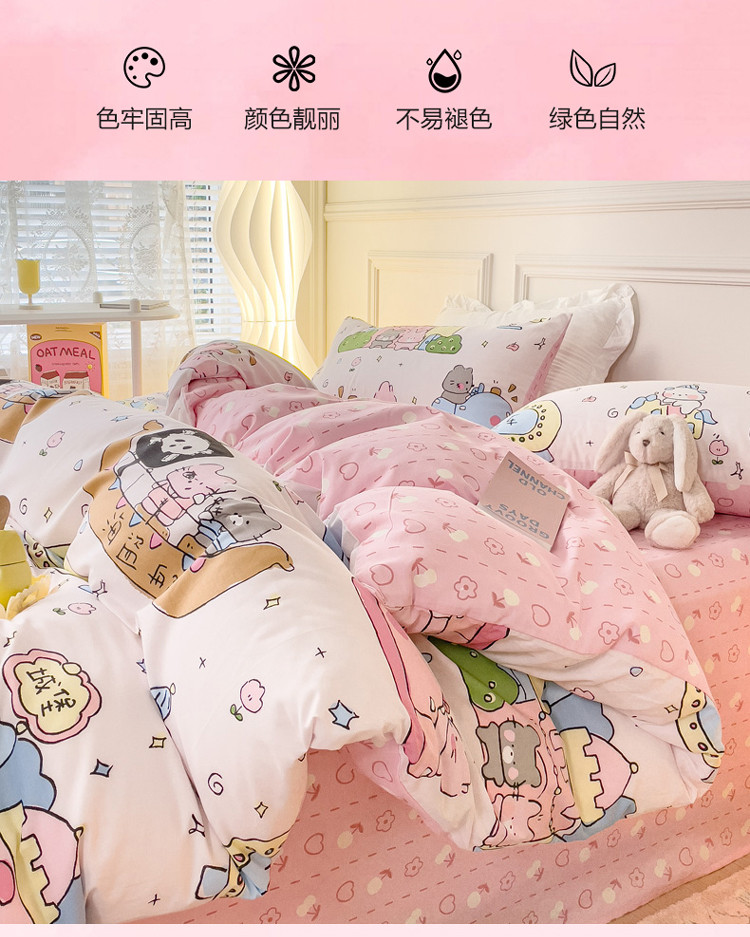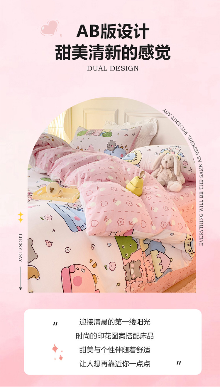(总)感遇家纺 2025新款小清新甜系全棉四件套,百丽兔,波点小女孩,点点小狗,复古樱桃,格子草莓,格子樱桃,花间牧歌,灰条猫咪,奶绿,宁夏,森林小熊猫,甜心波点
