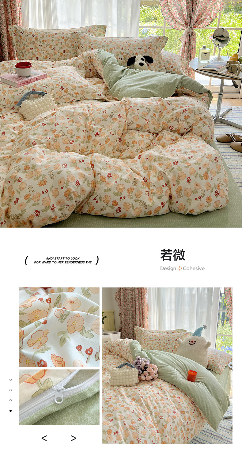 商品名称:总盛馨家纺 2023新款ins北欧风高支高密全棉喷气小清新纯棉四件套