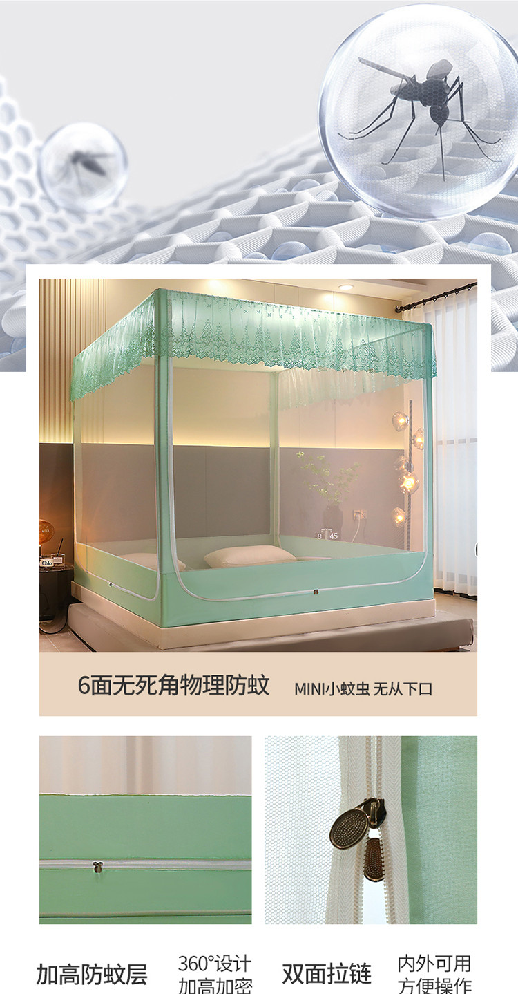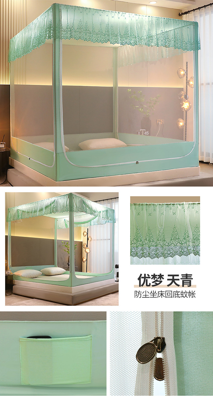 商品名称:千逸虹 2024新款防尘坐床回底蚊帐 优梦-天青
