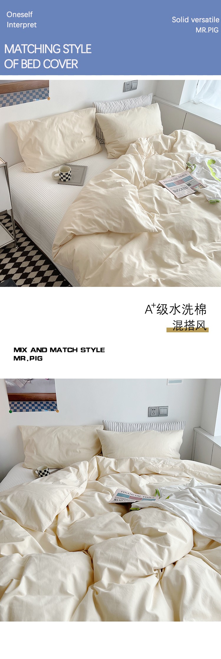 双拼全棉水洗棉纯棉四件套ins简约北欧纯色床笠款套件,双拼白+浅蓝,双拼白+薇薇紫,双拼海蓝+浅蓝,双拼琥珀+鹅黄,双拼焦糖+奶茶,双拼螺旋藻绿+鹅黄,双拼奶茶+鹅黄,双拼牛油果+鹅黄,双拼浅蓝+鹅黄,双拼树莓红+杏仁白,双拼水绿+螺旋藻绿,双拼豌豆青+杏仁白,双拼杏仁白+螺旋藻绿,薇薇紫+杏仁白,浅灰+杏仁白,双拼藏青+浅灰,双拼花青灰+浅灰,双拼霁色+浅灰