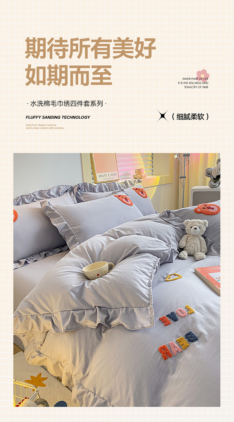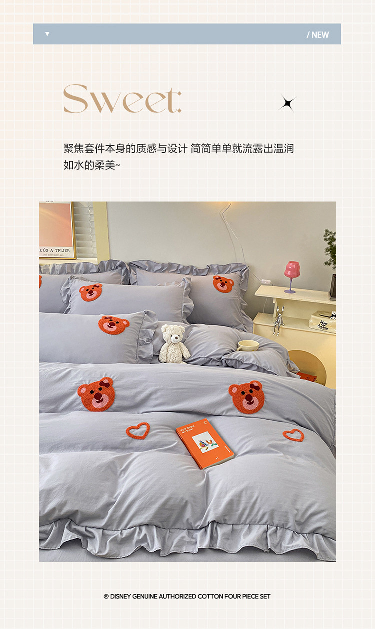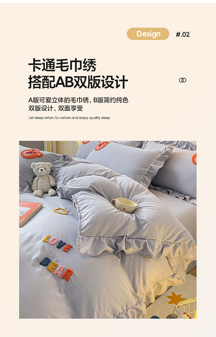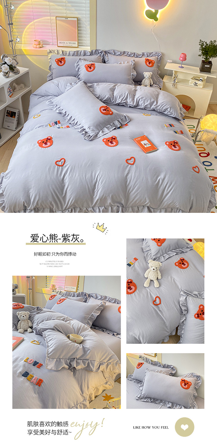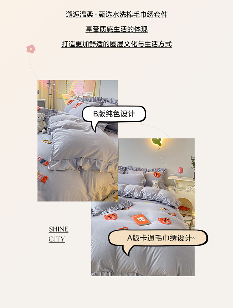 商品名称:AB家纺 2023新款韩版水洗棉毛巾绣四件套-爱心熊 爱心熊-紫灰