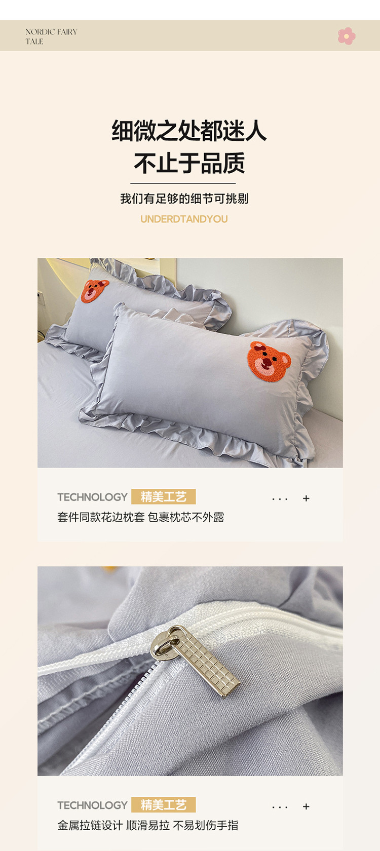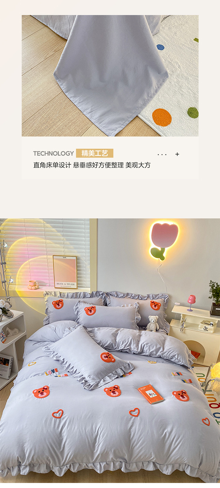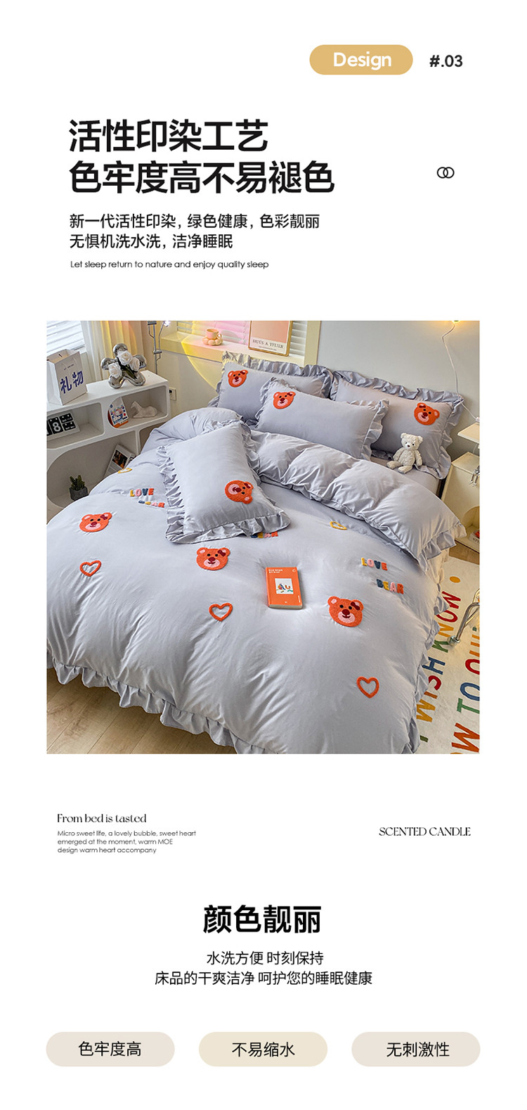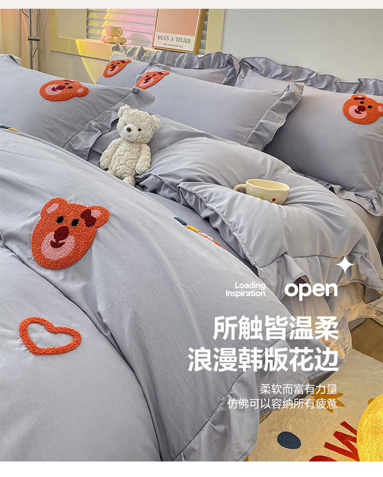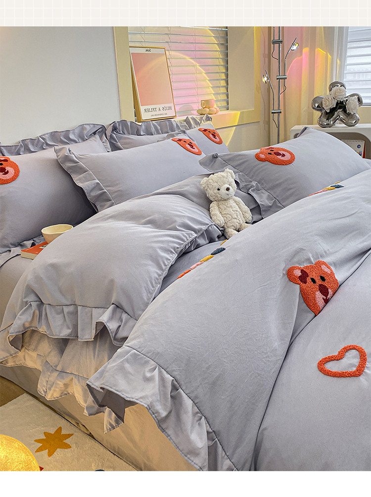 商品名称:AB家纺 2023新款韩版水洗棉毛巾绣四件套-爱心熊 爱心熊-紫灰