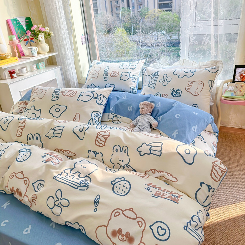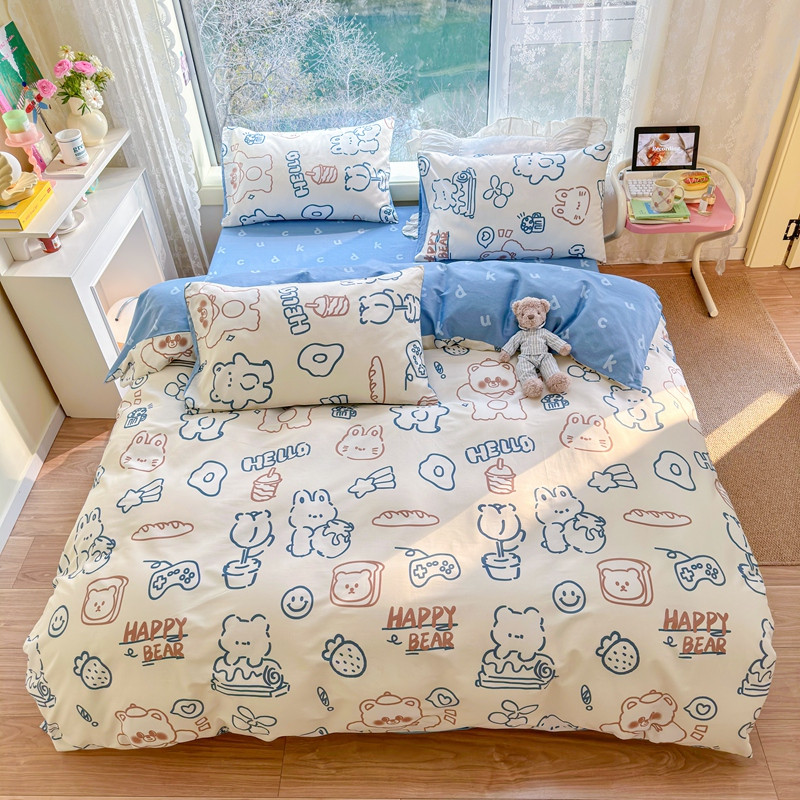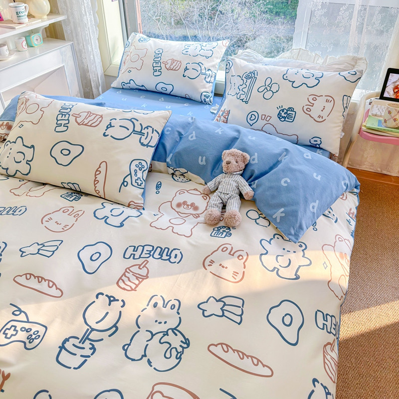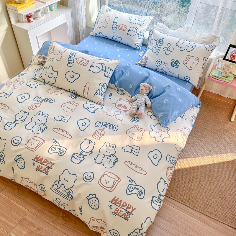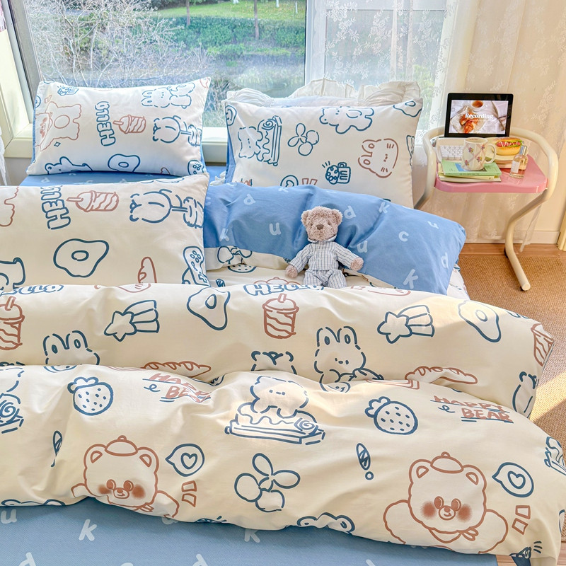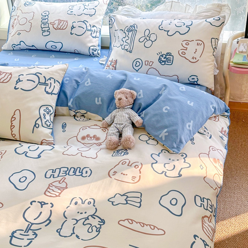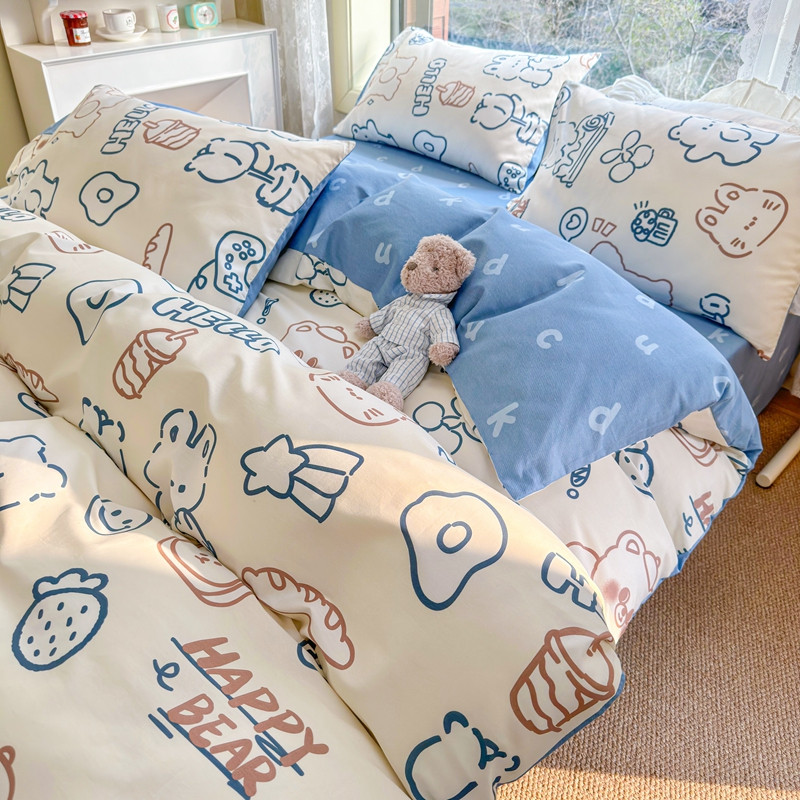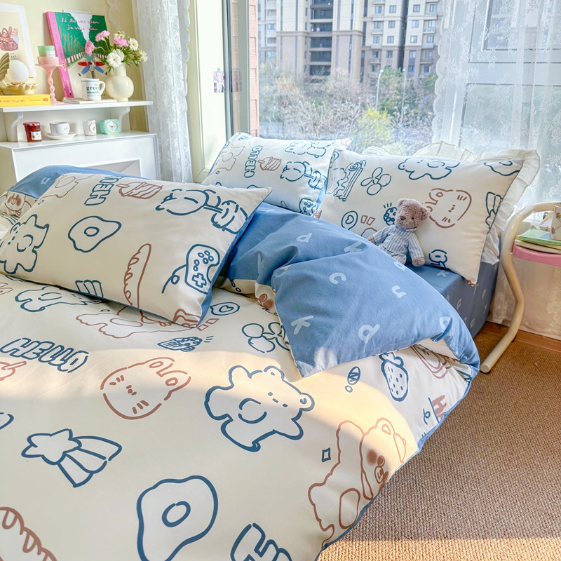 商品名称:沐辰 2023新款13372全棉印花四件套-萌趣系列 涂鸦小熊