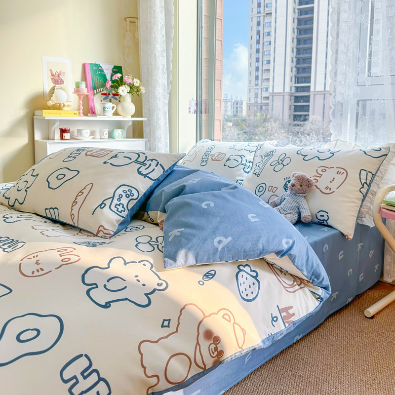 沐辰 2023新款13372全棉印花四件套-萌趣系列 涂鸦小熊