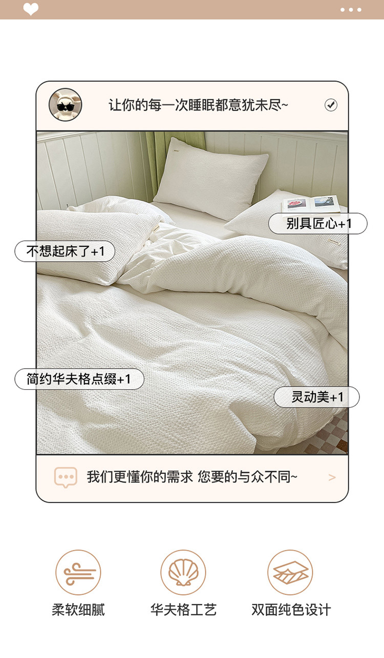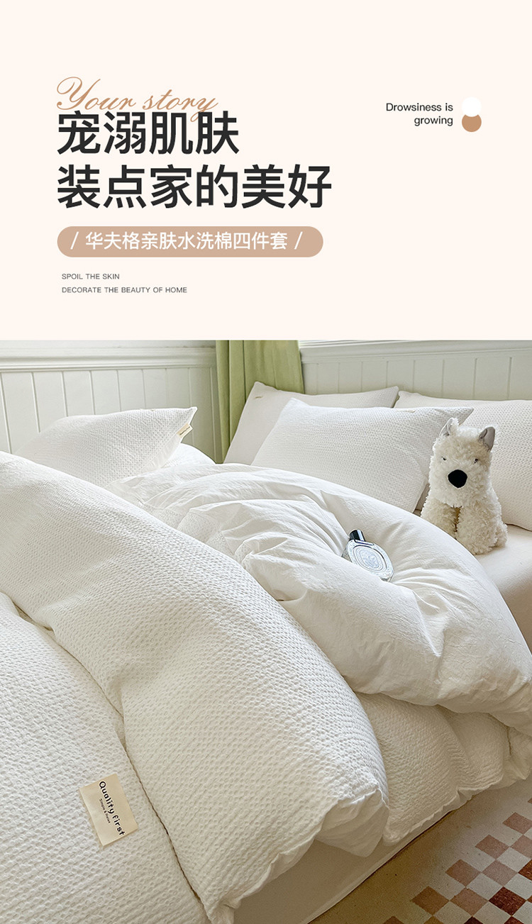 当前位置: 91家纺网 > 商品网购 > 床品套件 > 四件套 > 水洗棉四件套 > 丽美人 2023新款华夫格亲肤水洗棉四件套 华夫格-本白