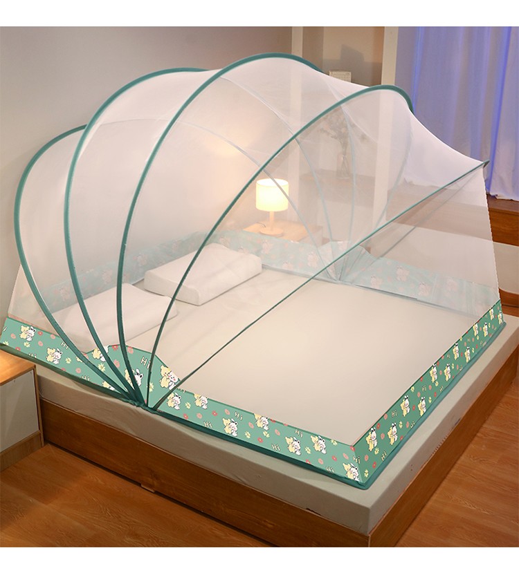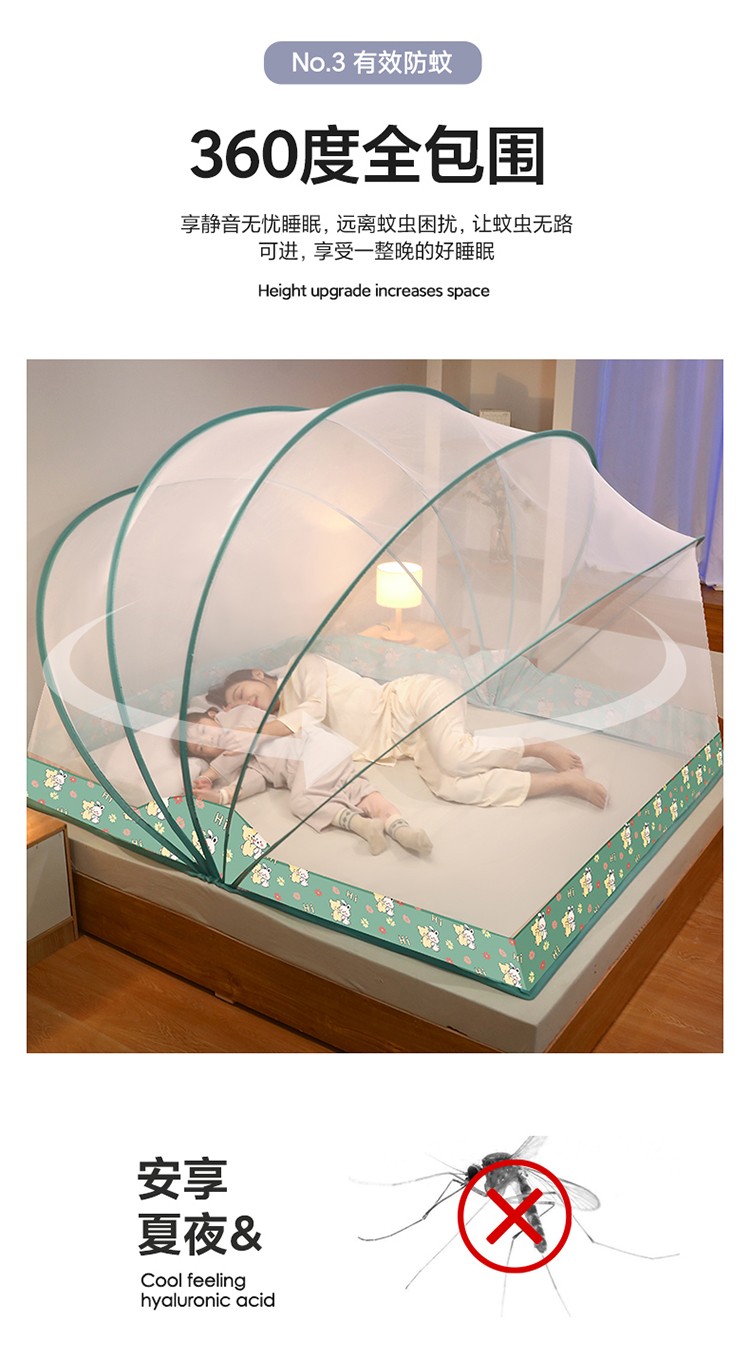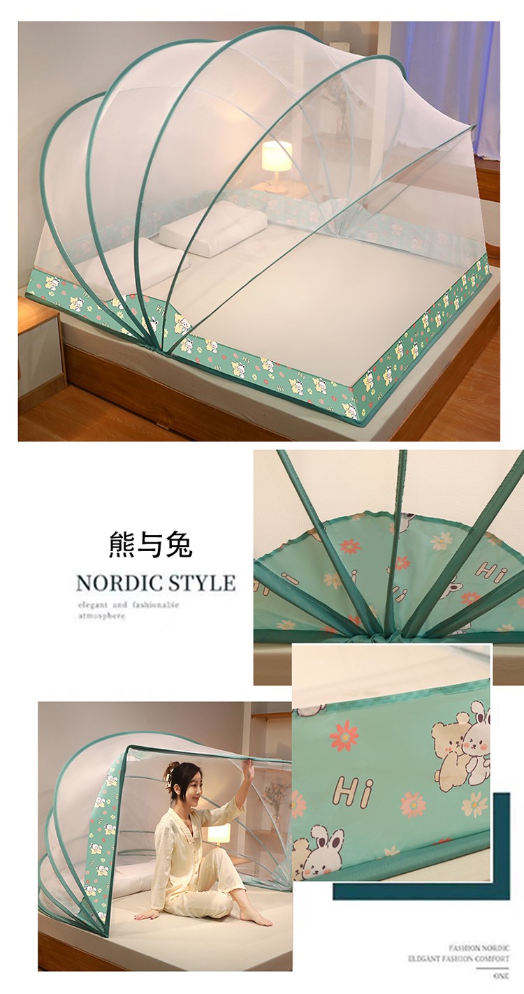 爱妮灵家纺 2023新款免安装折叠七股钢丝折叠加高印花蚊帐 熊与兔
