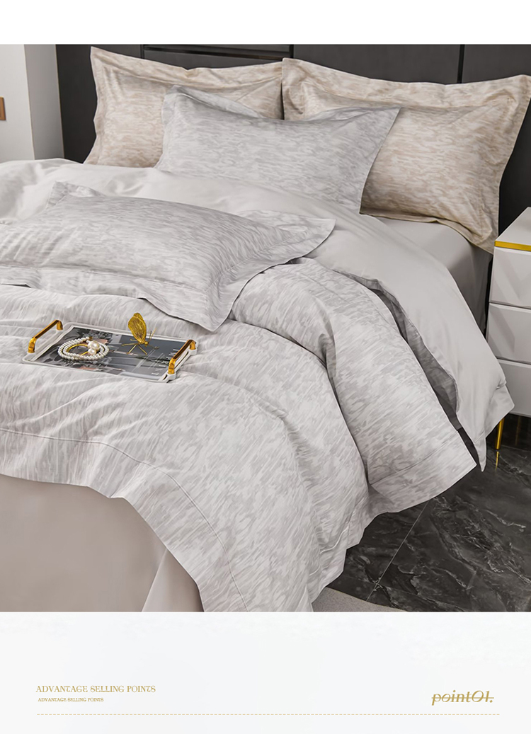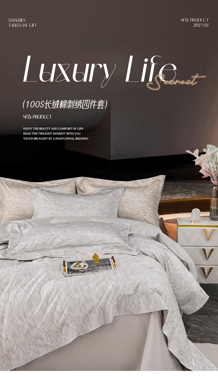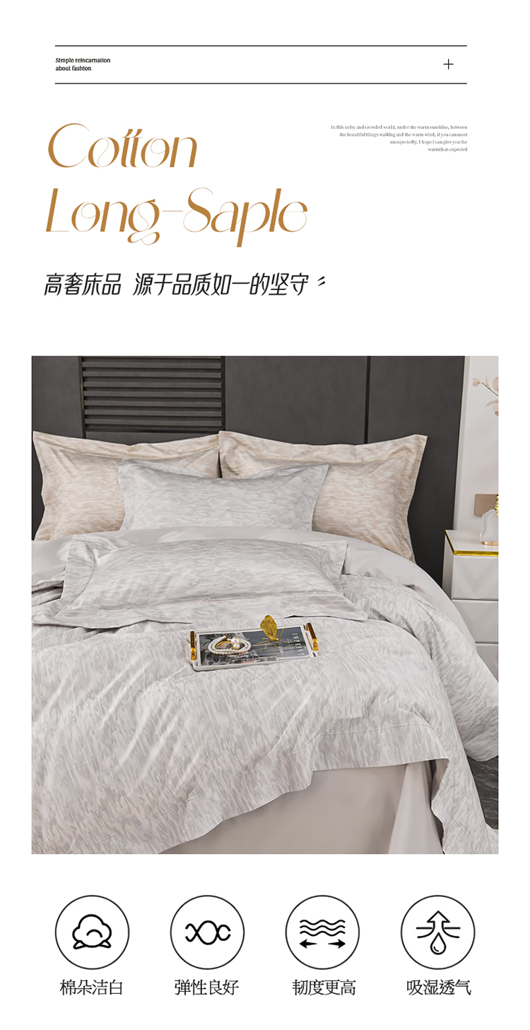 名品优仓 2023新款高支高密长绒棉刺绣款四件套-简忆 简忆-薄雾灰