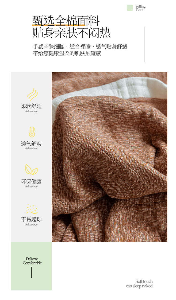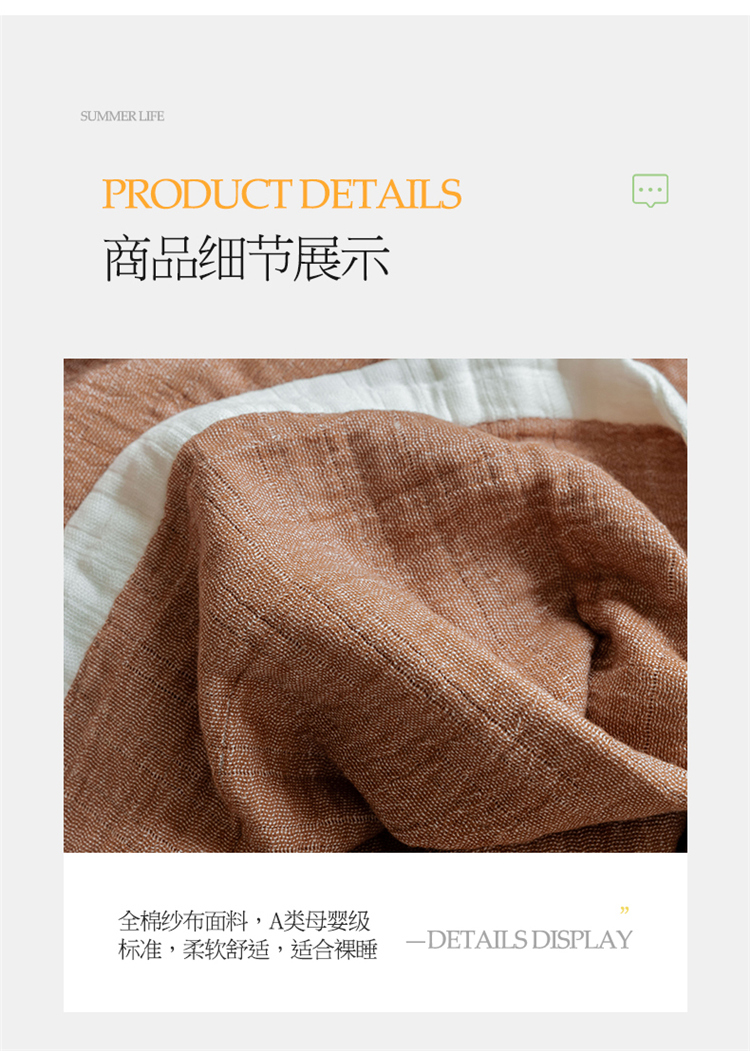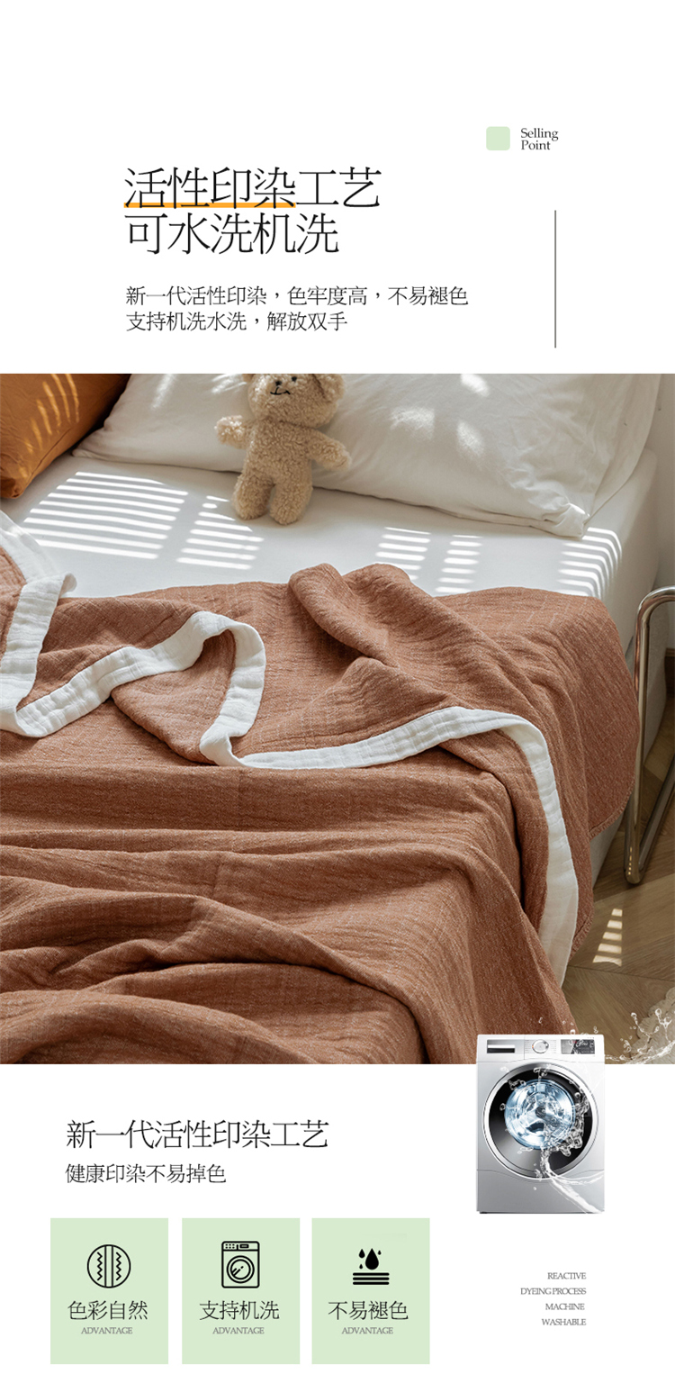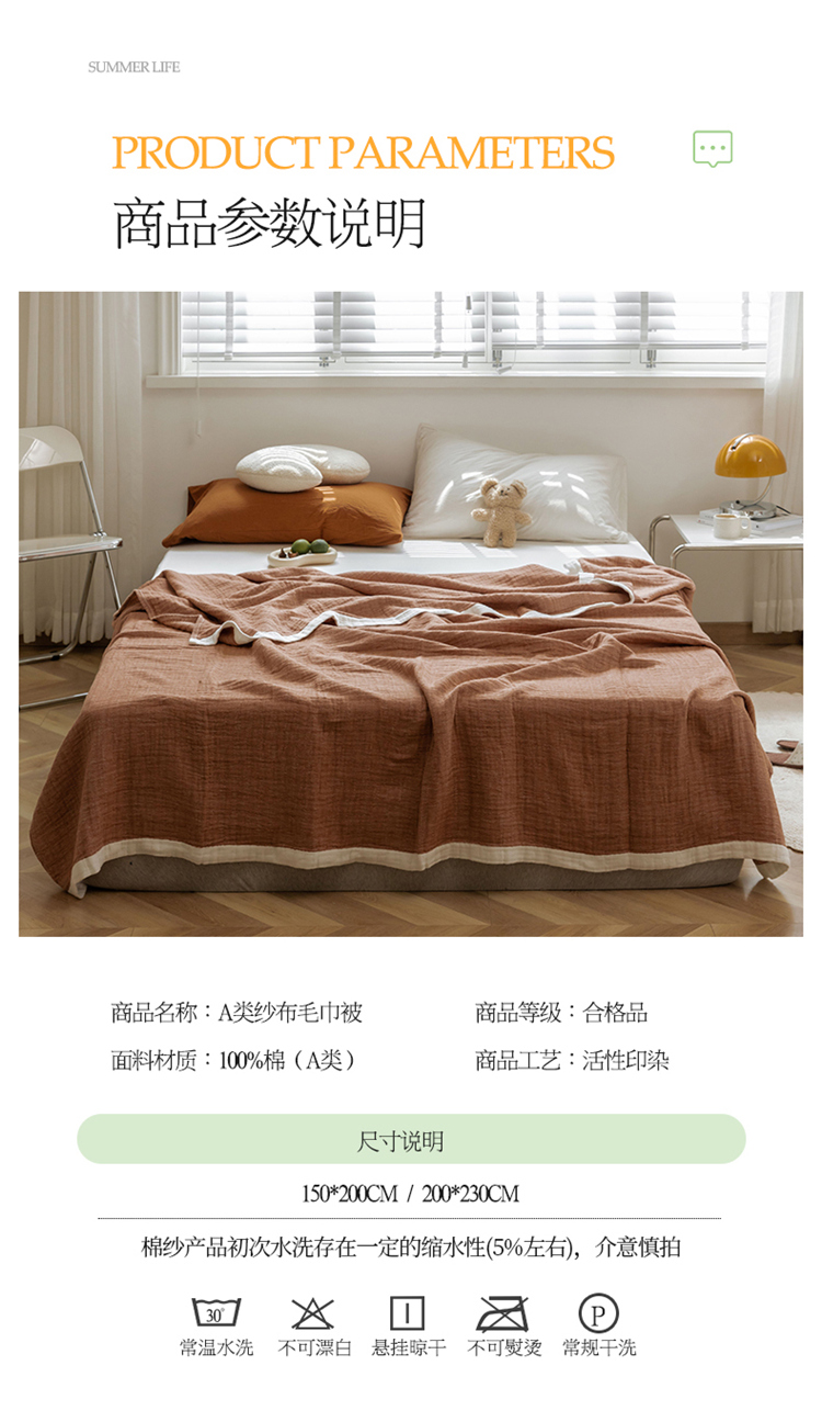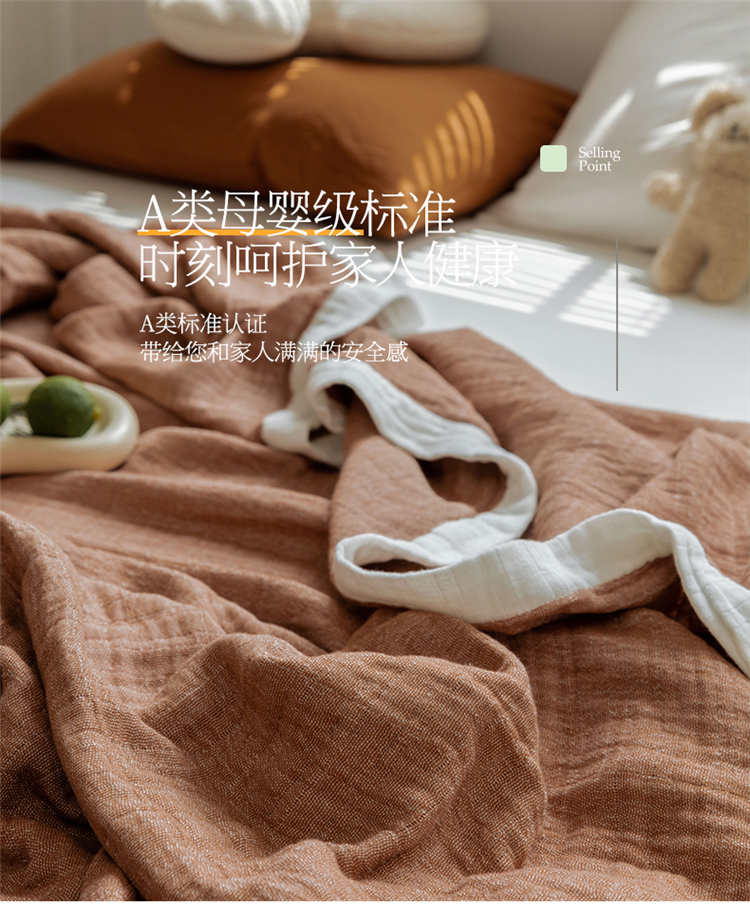 商品名称:雯雨家纺2023新款A类全棉纱布毛巾被 浅咖