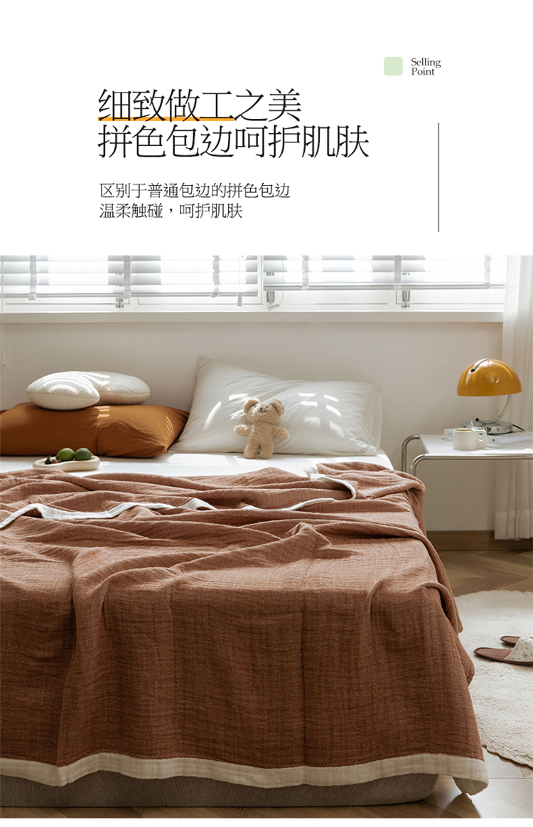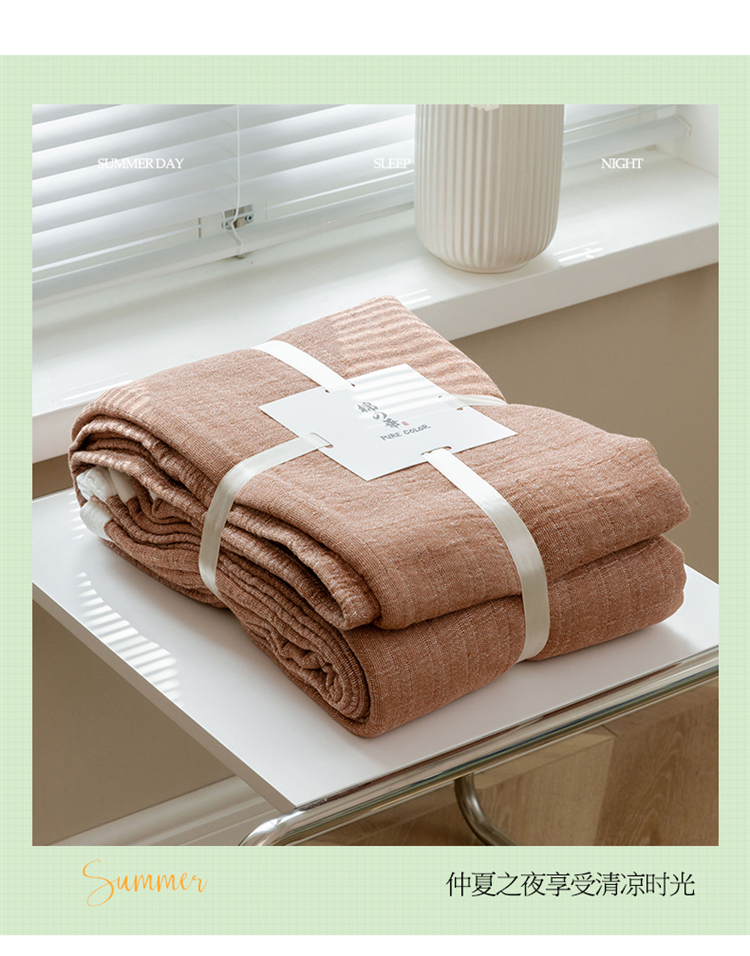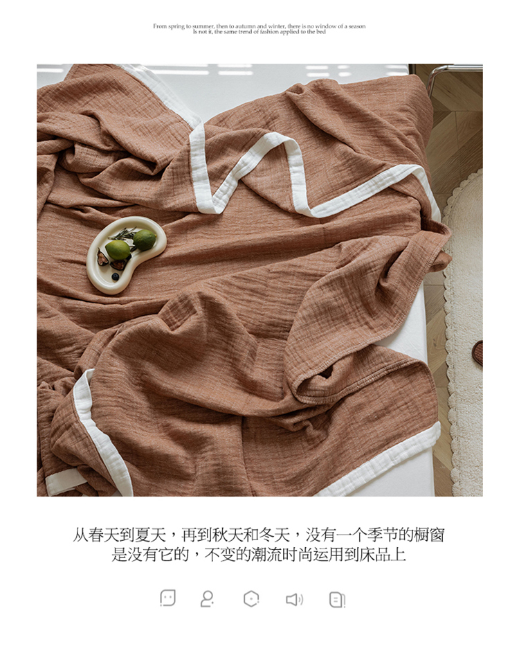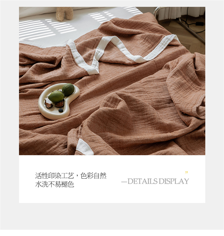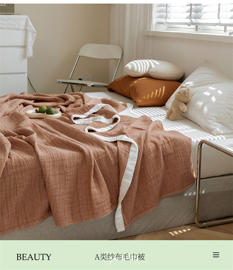 雯雨家纺2023新款A类全棉纱布毛巾被 浅咖