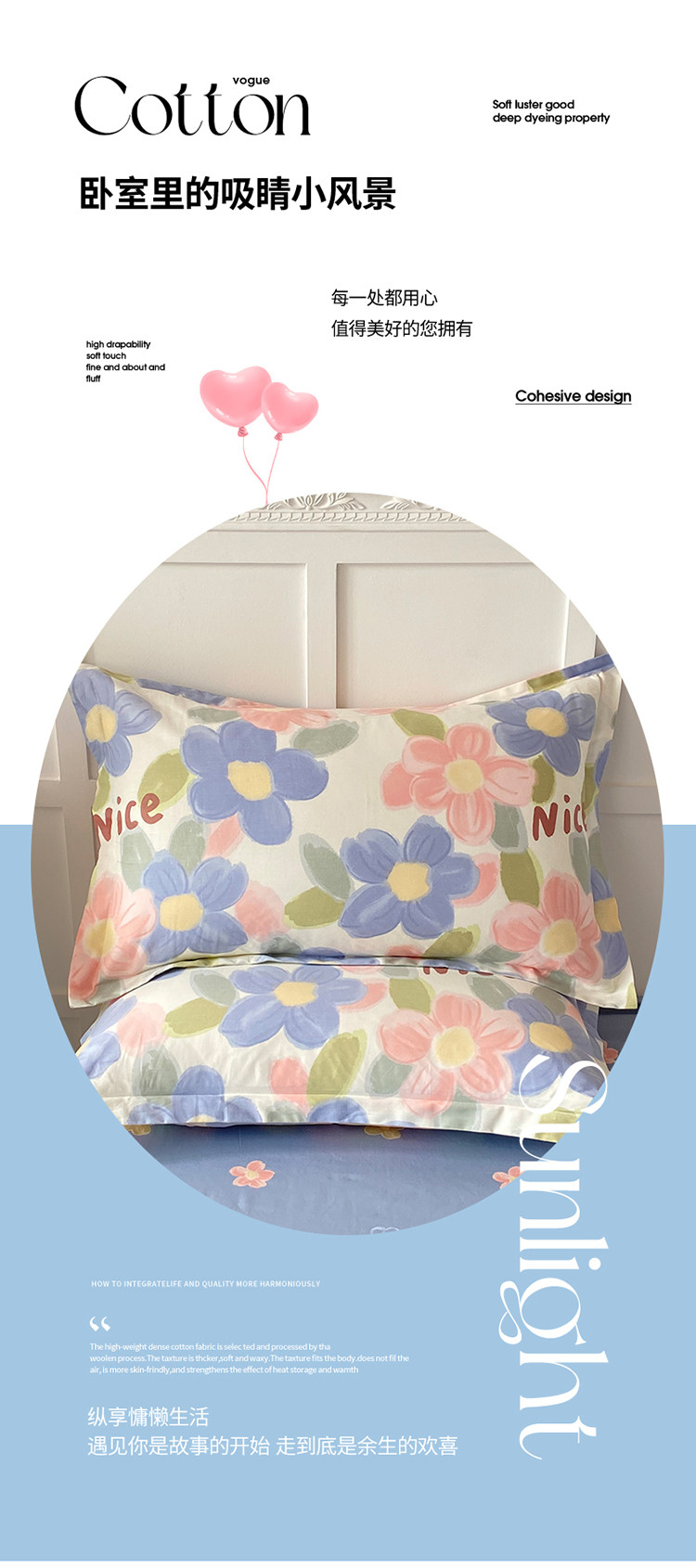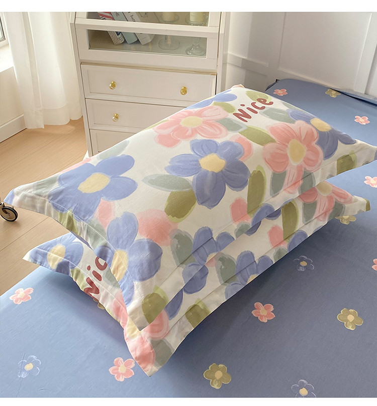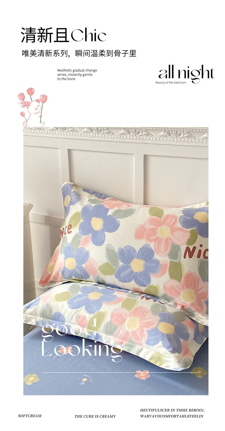 帛织澜 2025新款全棉喷气12868系列纯棉枕套 蓝海晨光