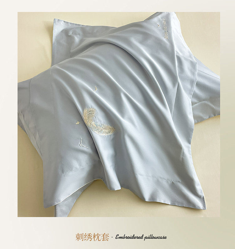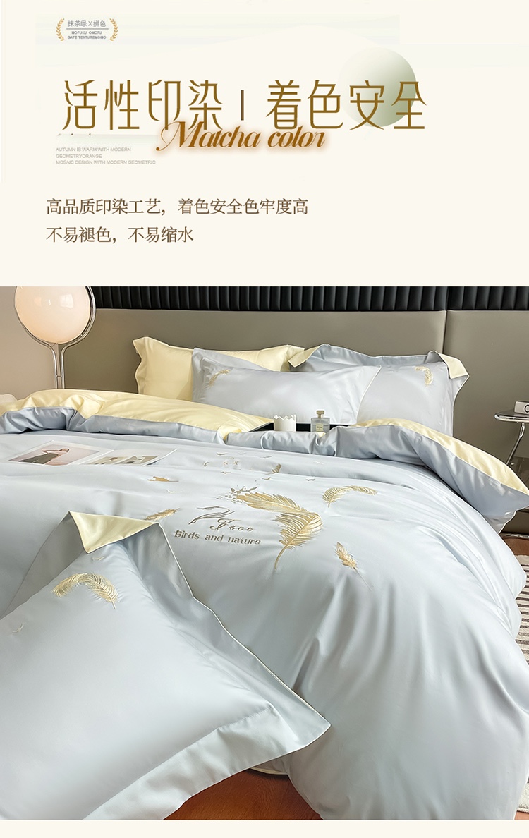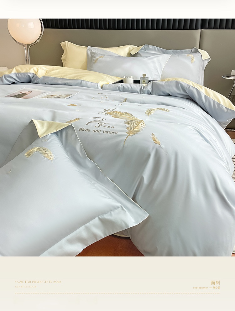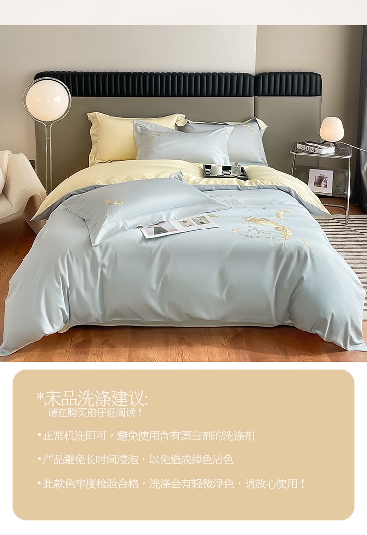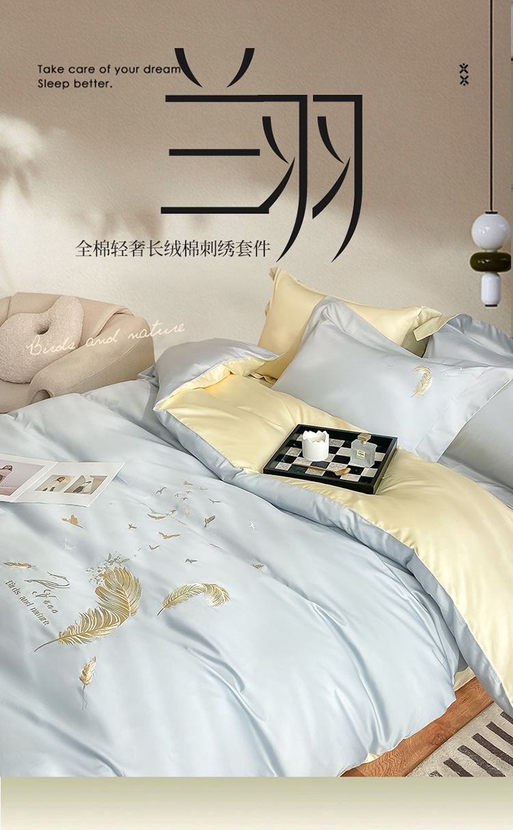 蓝米卡夫 2024全棉高级感长绒棉刺绣兰羽系列-单被套 兰羽-海澜奶黄