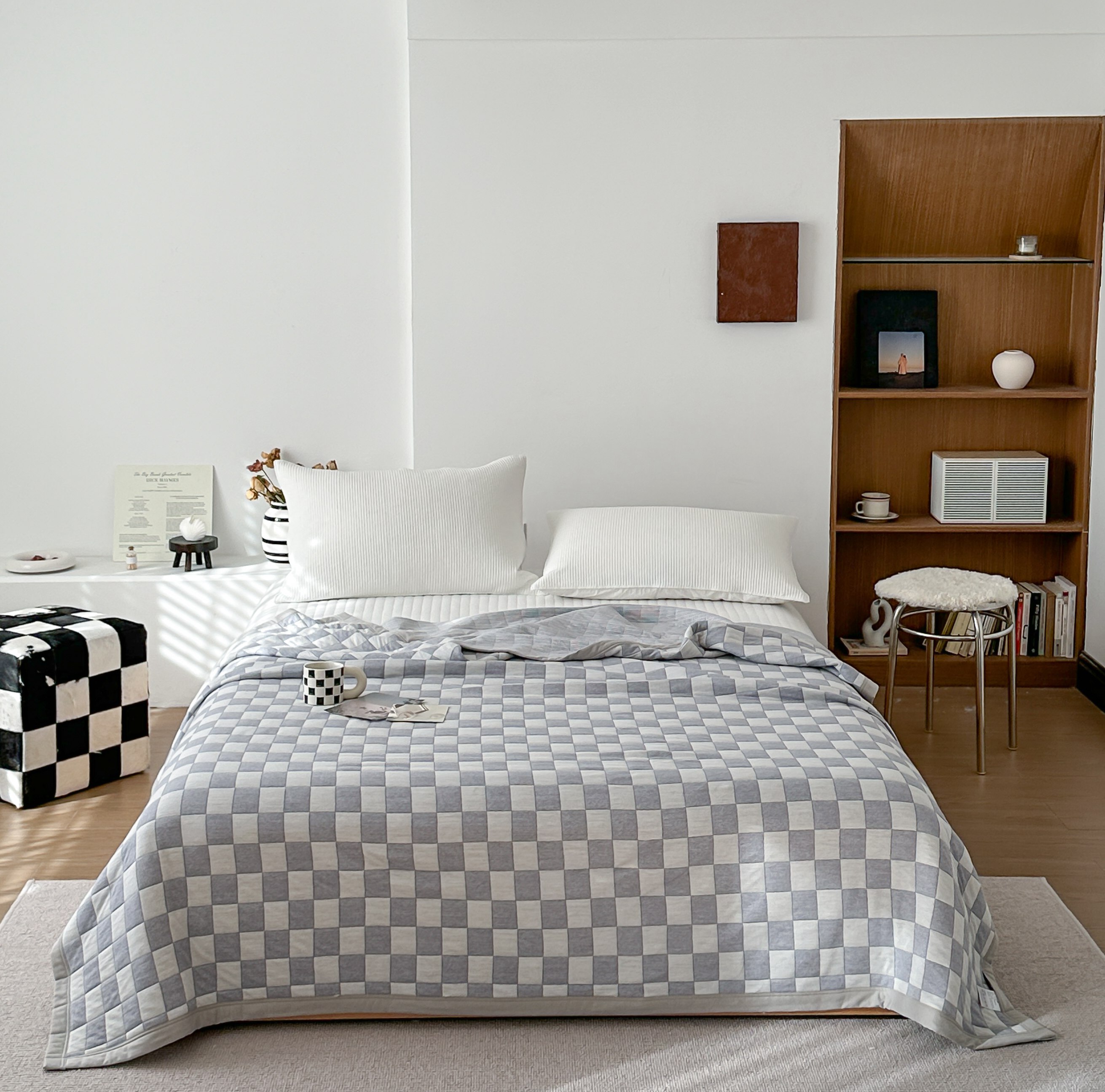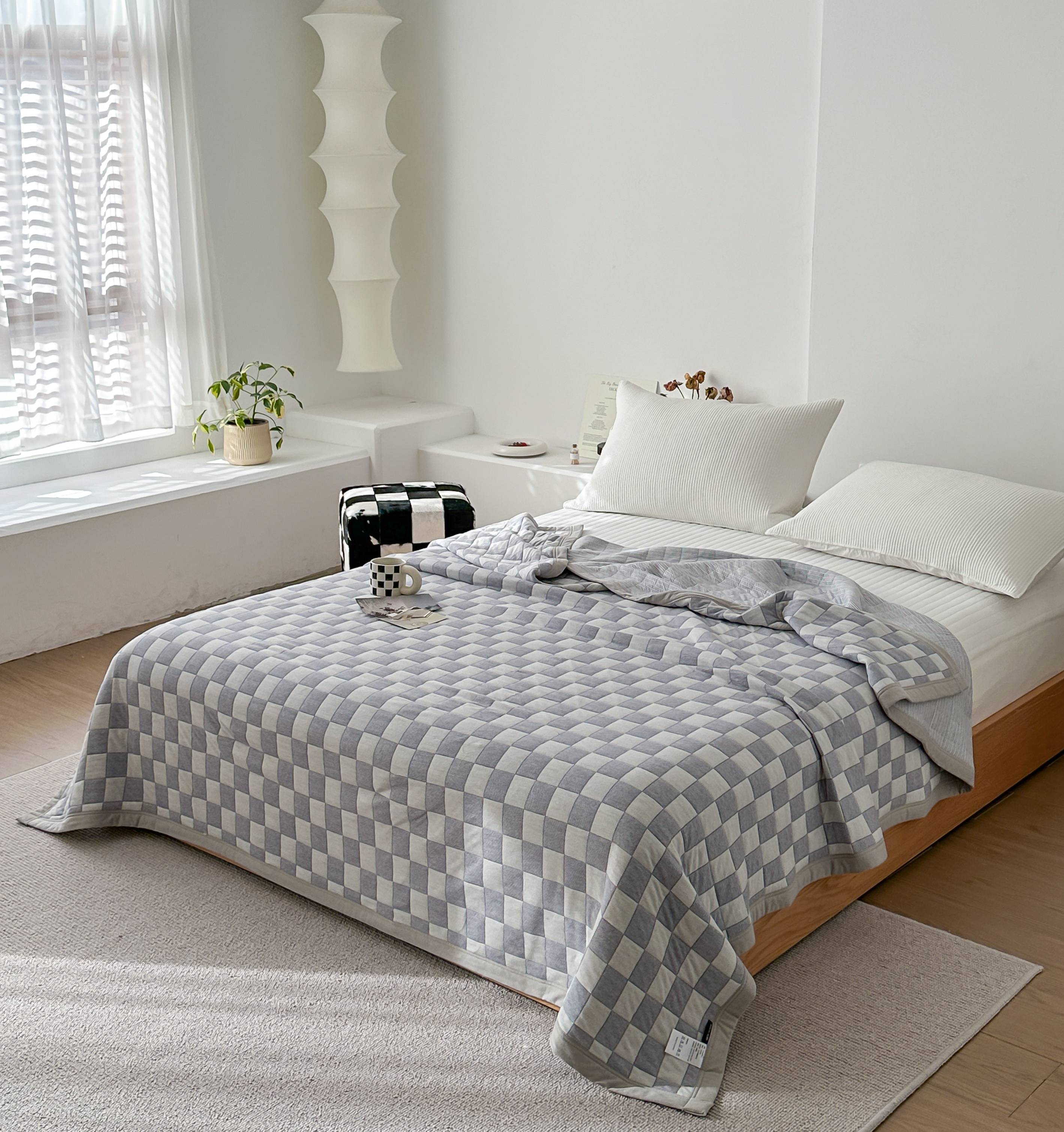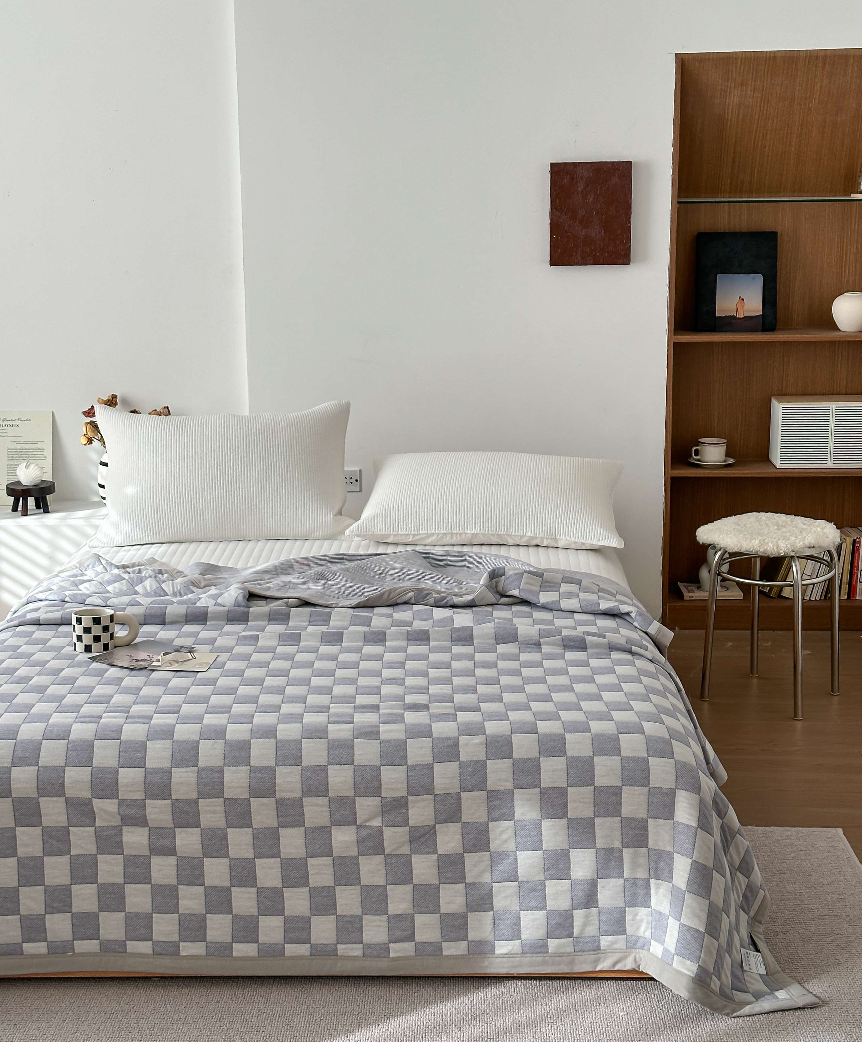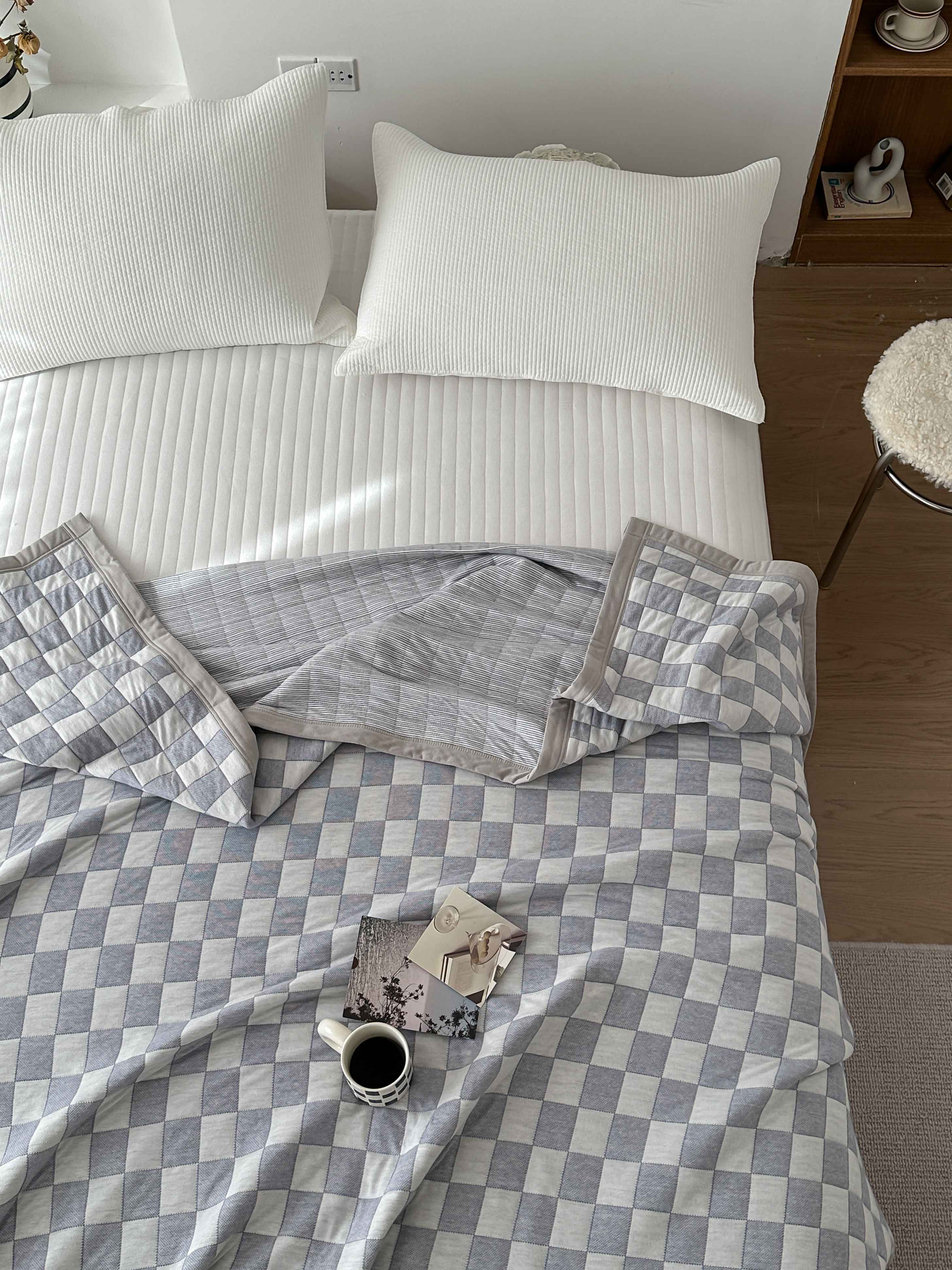 爱丽丝 2023新款全棉针织棉棋盘格夏被 棋盘格(灰)
