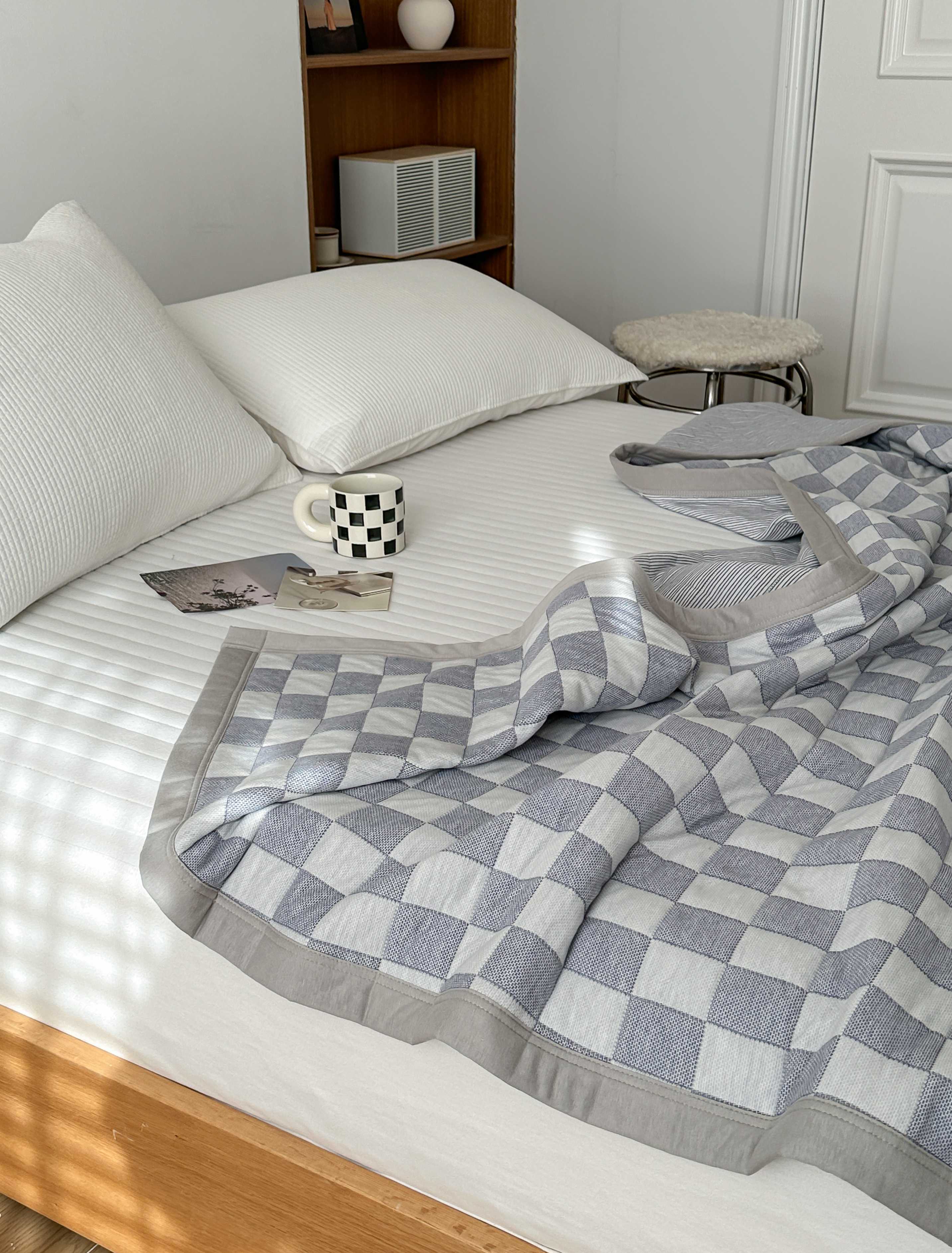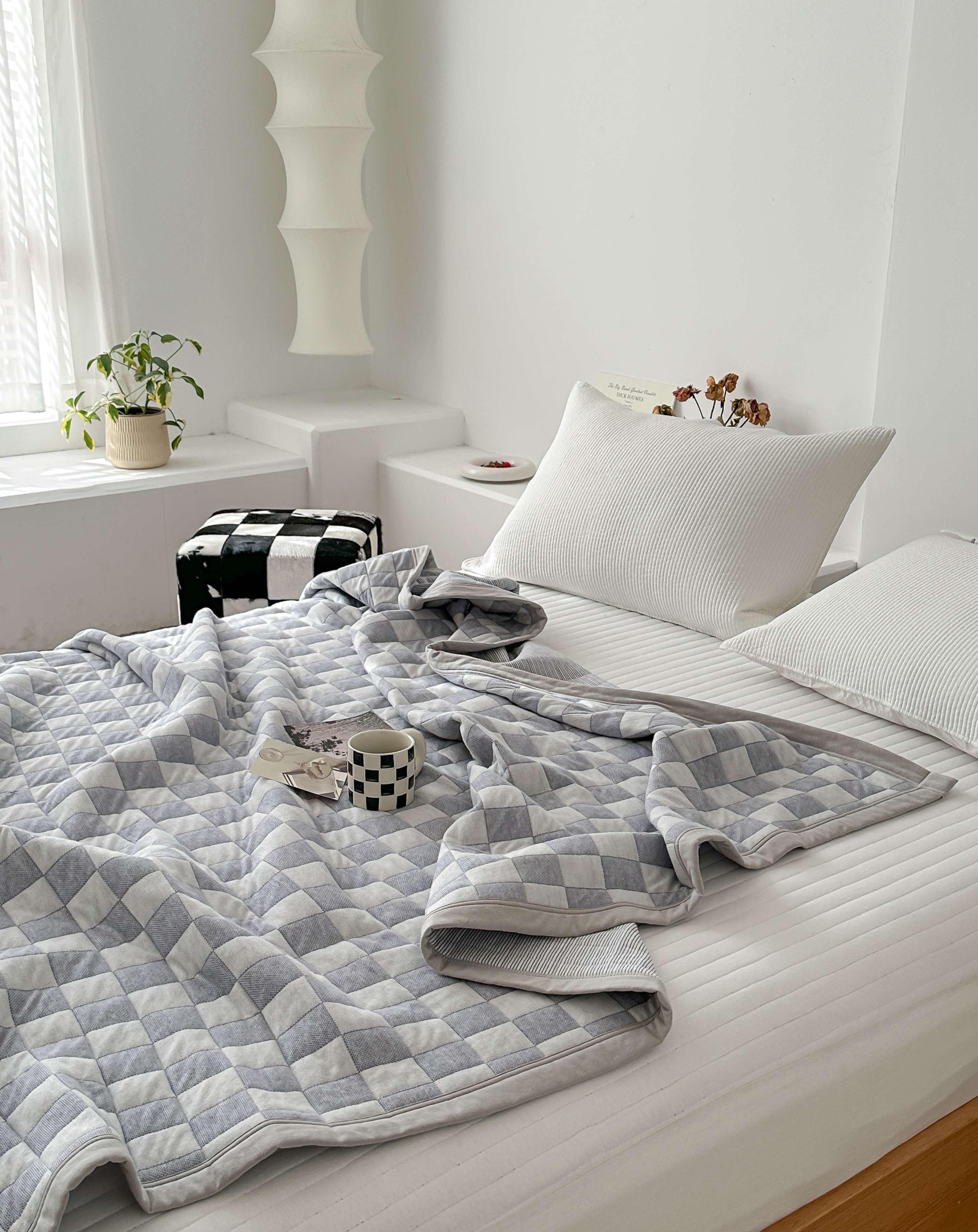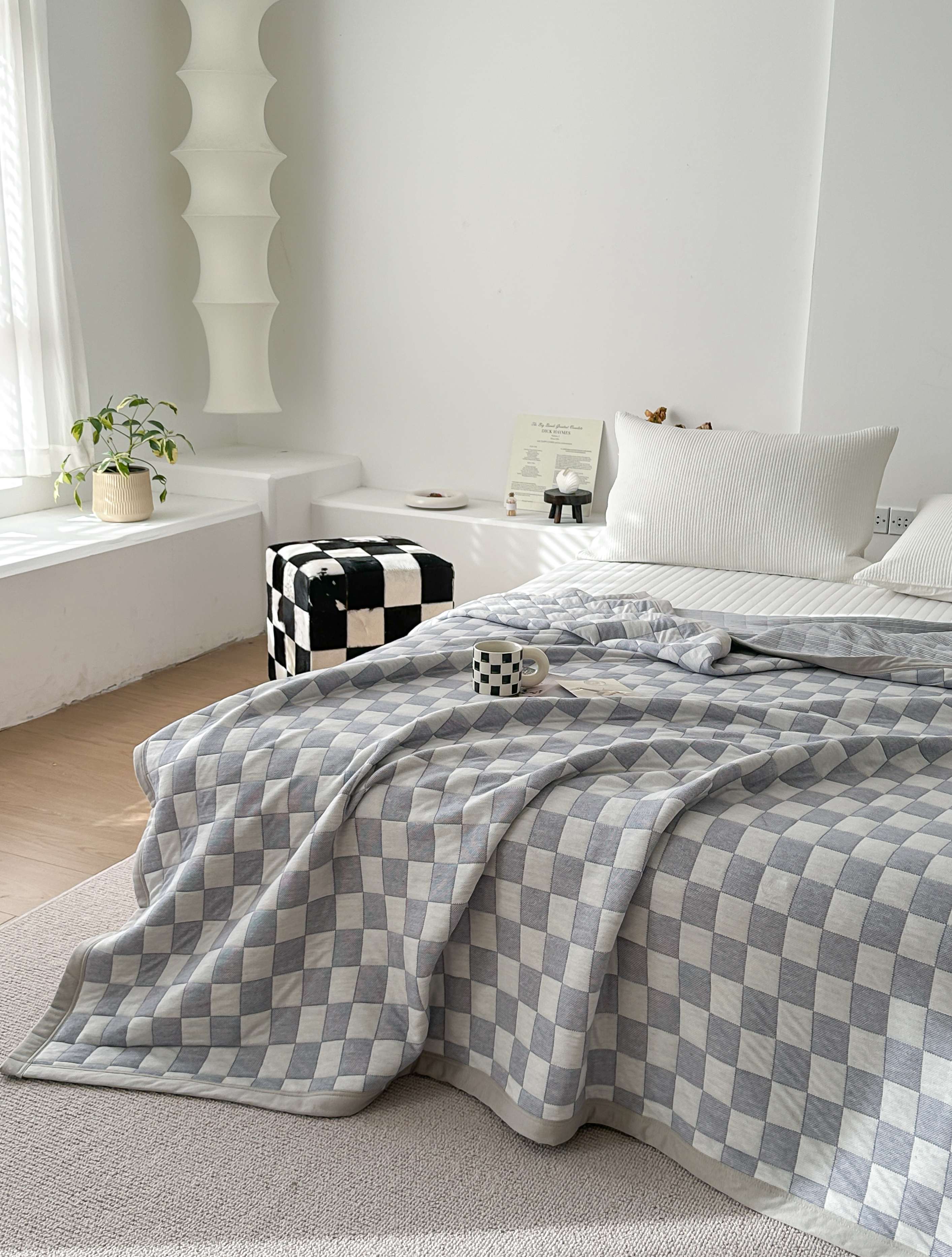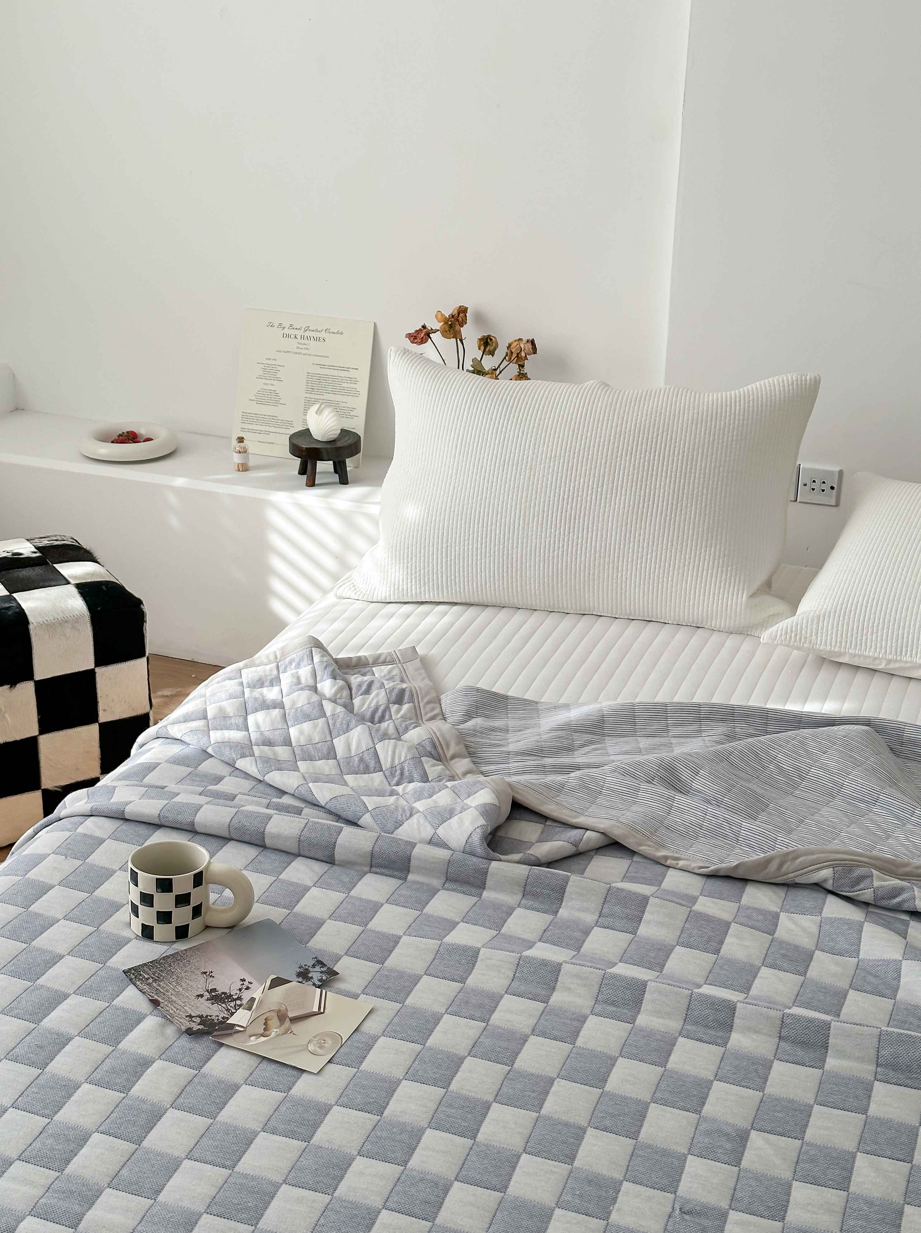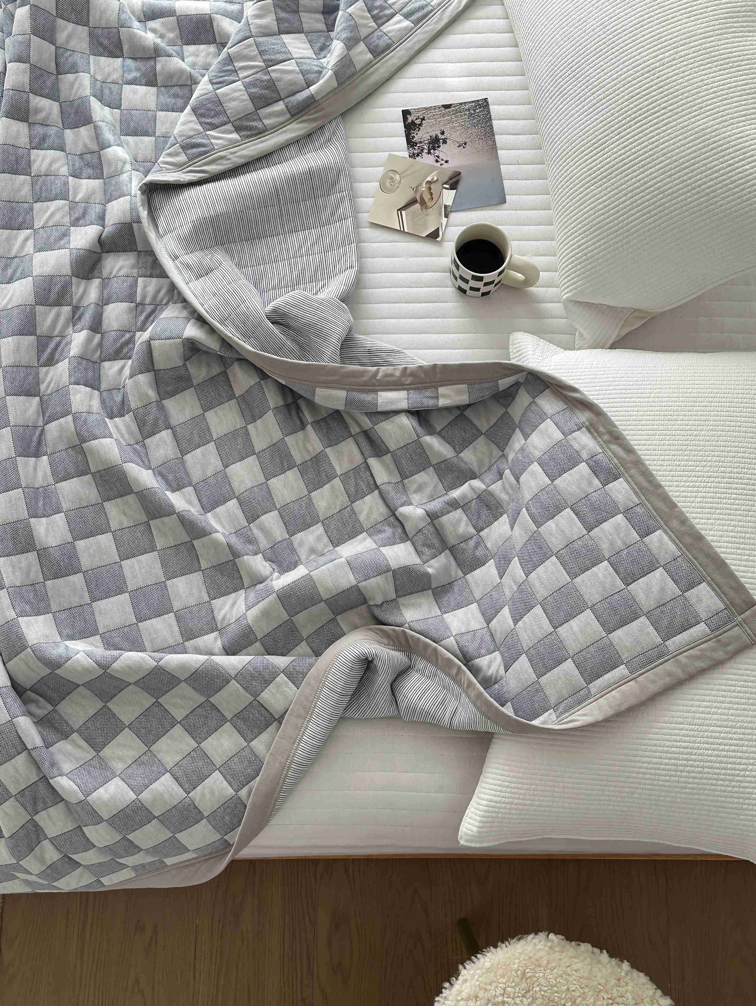 爱丽丝 2023新款全棉针织棉棋盘格夏被 棋盘格(灰)