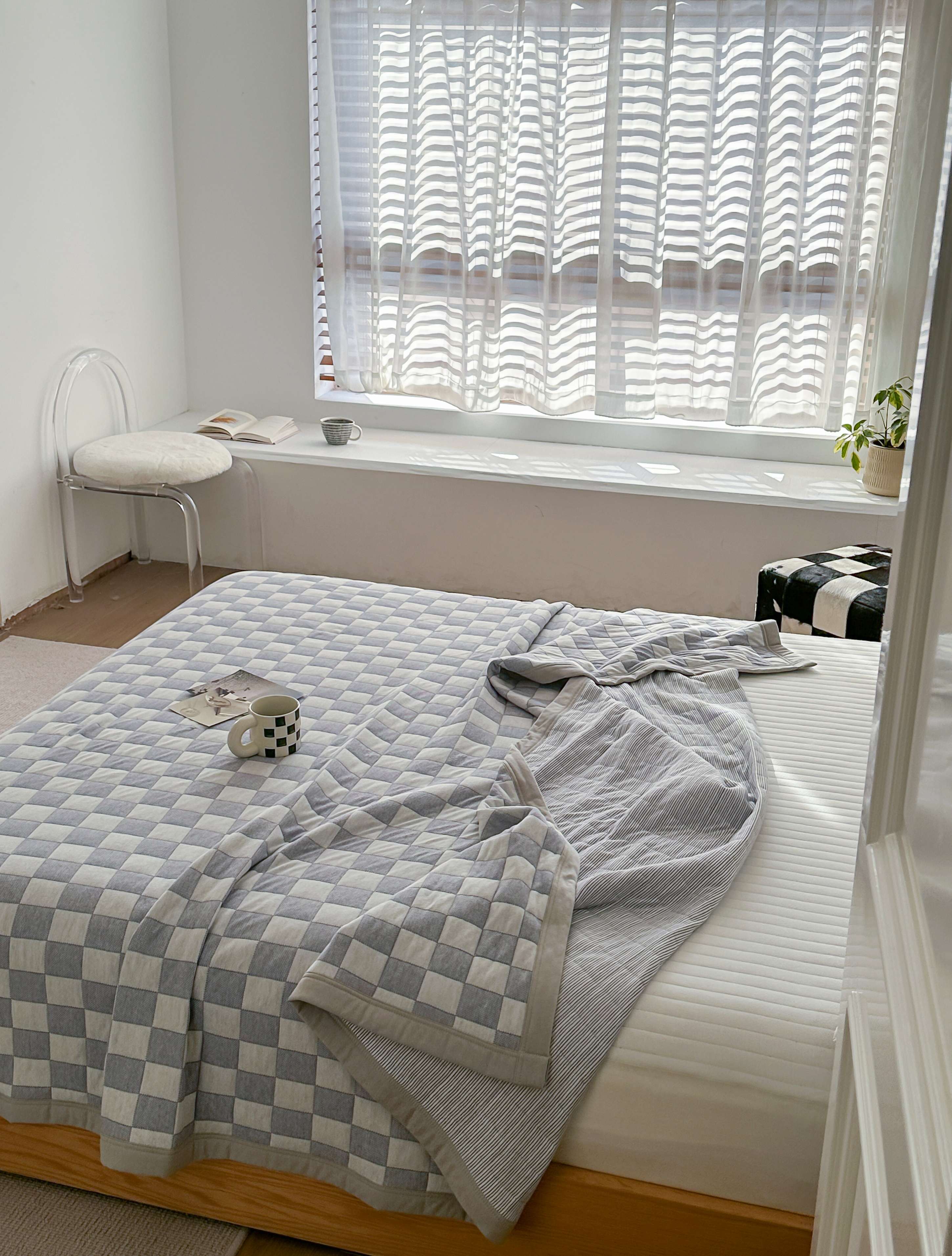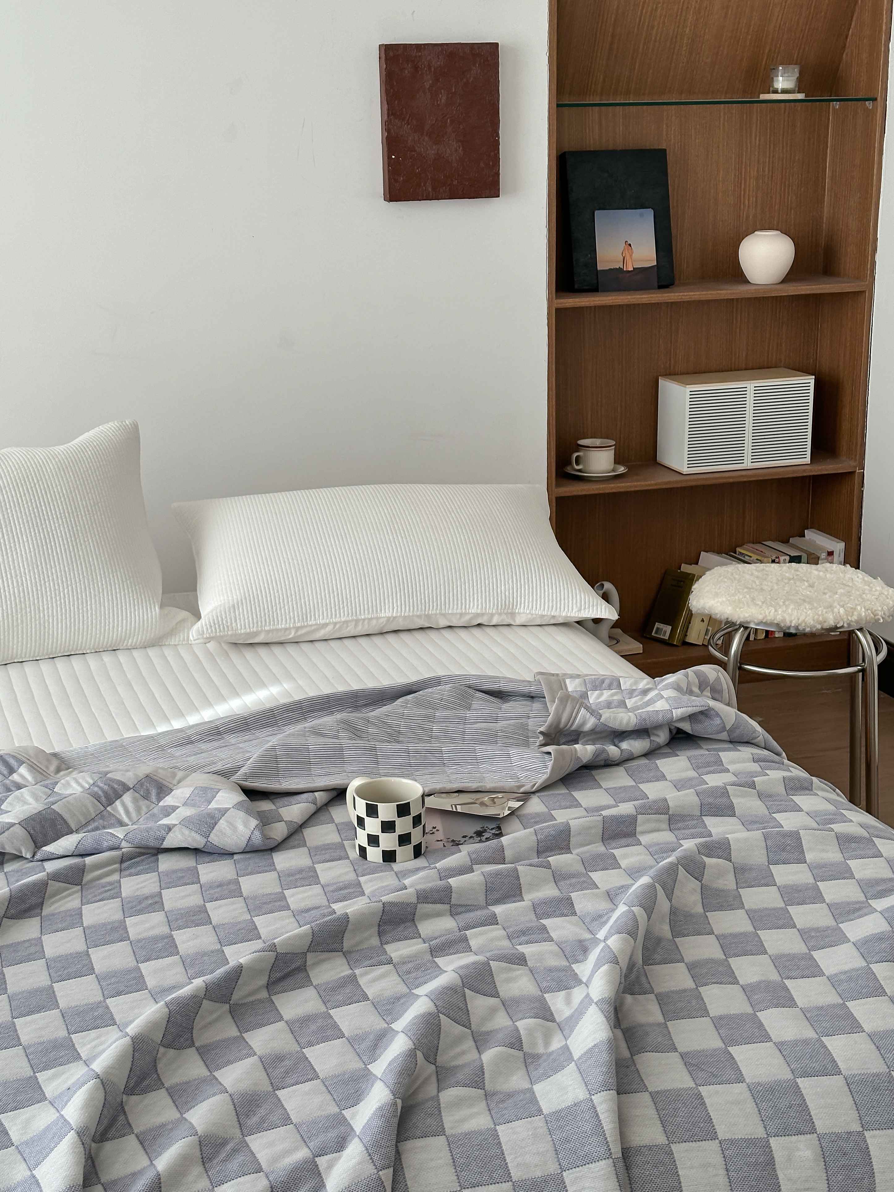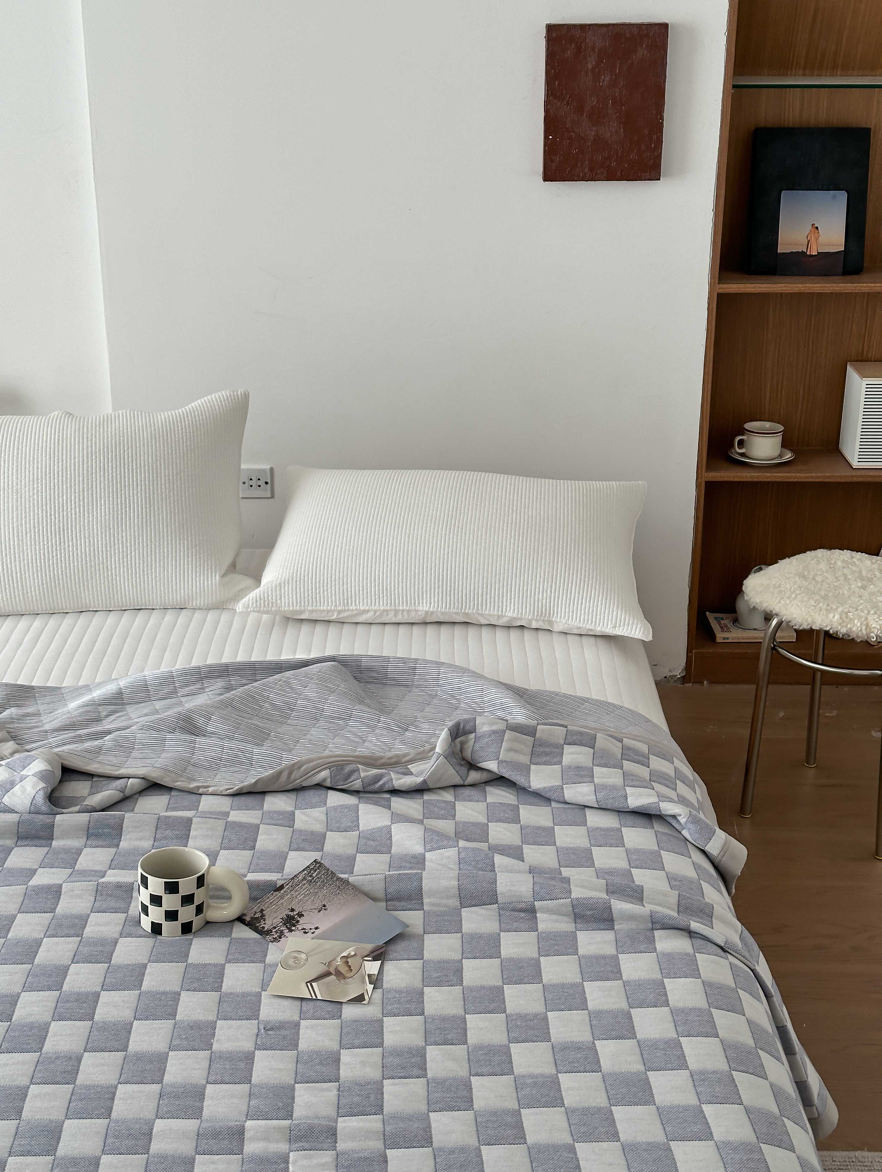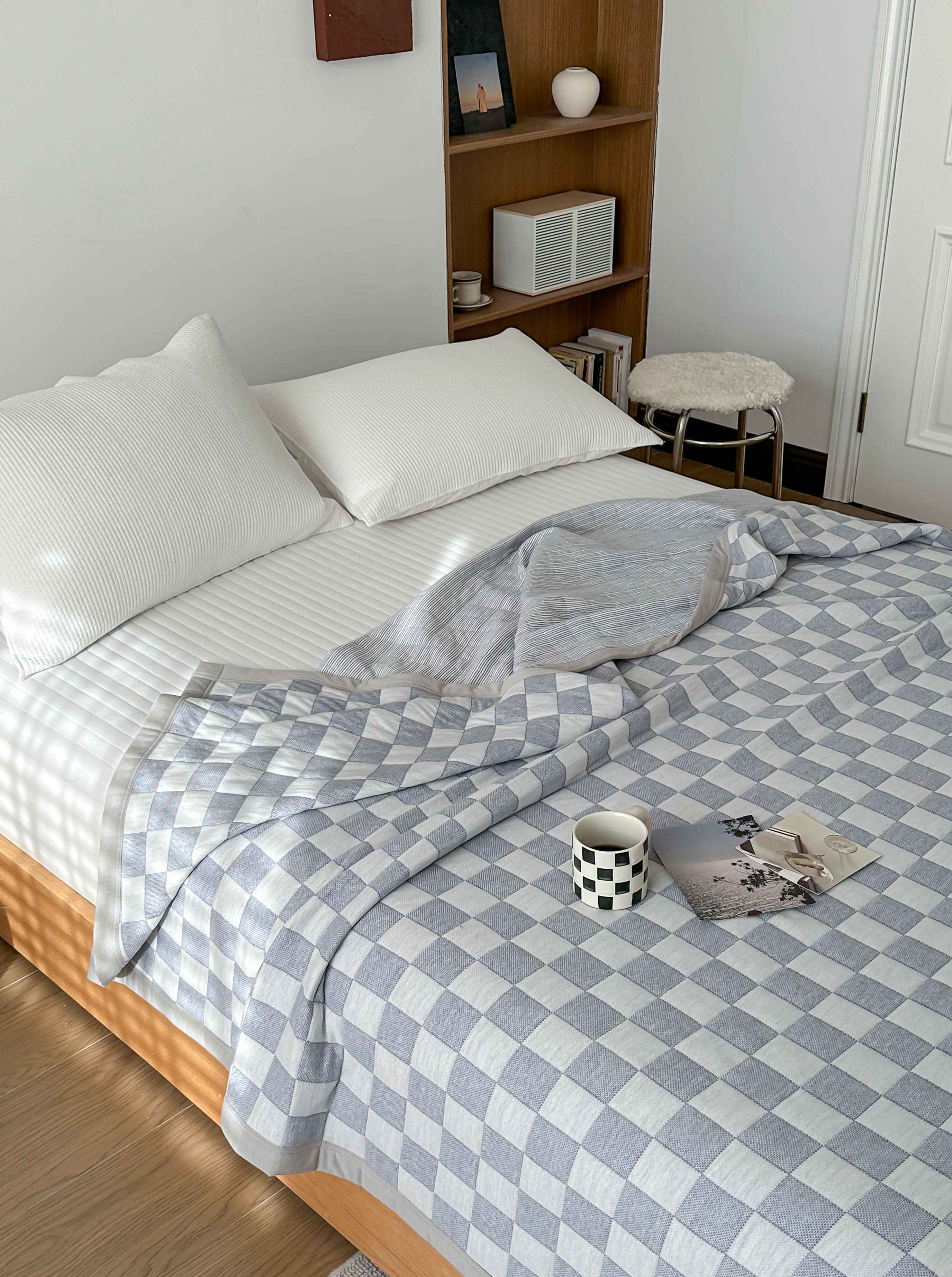 爱丽丝 2023新款全棉针织棉棋盘格夏被 棋盘格(灰)