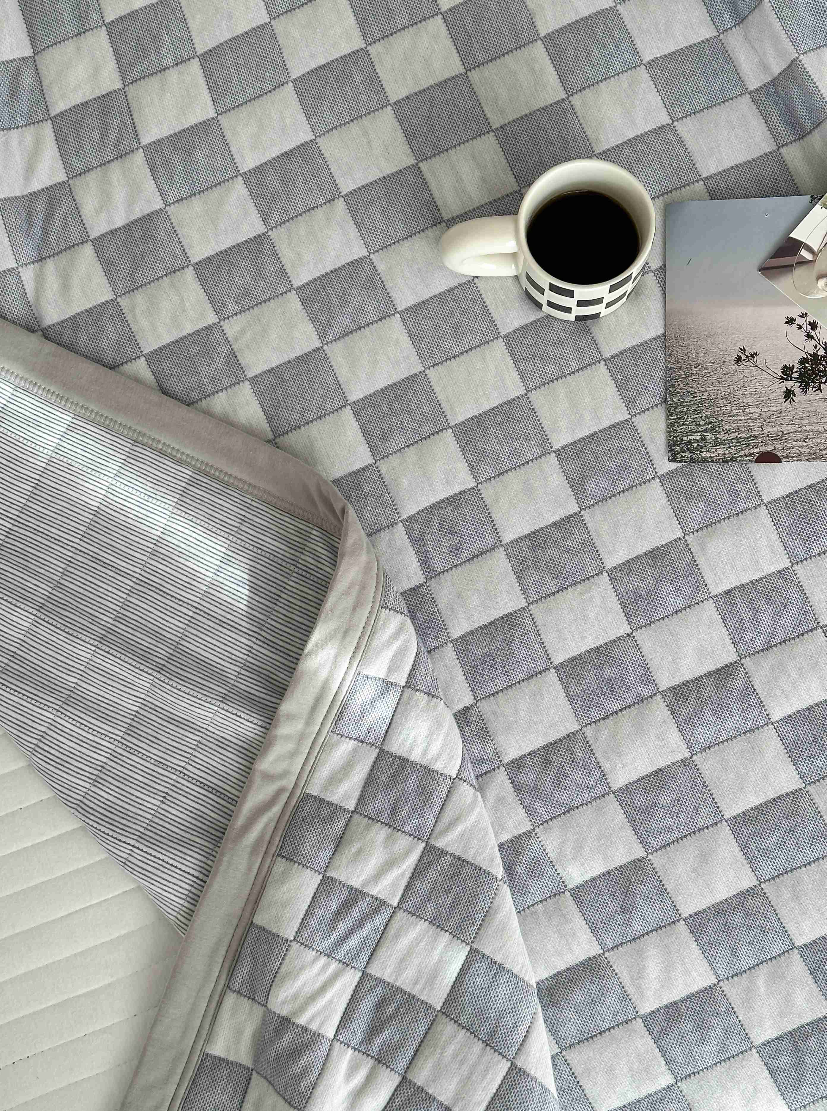 商品名称:爱丽丝 2023新款全棉针织棉棋盘格夏被 棋盘格(灰)