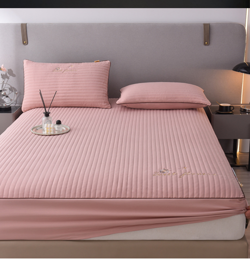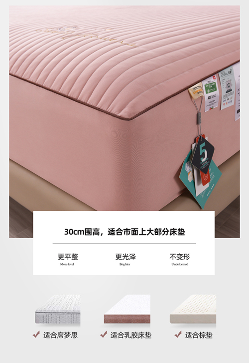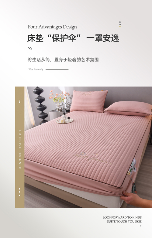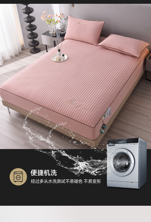 (总)好眠好梦家纺 2025新款全棉50S抗菌防螨夹棉防水床笠-无限之光系列,白色,粉色,卡其,深灰,天蓝,烟灰
