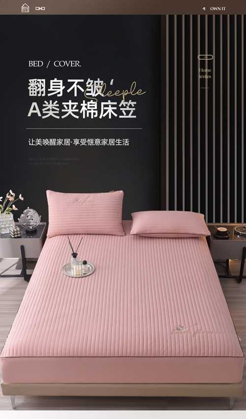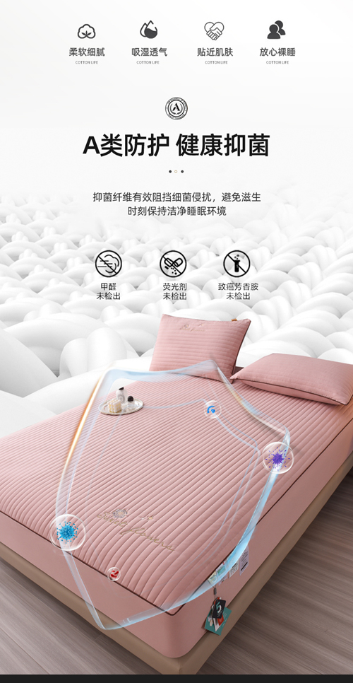 (总)好眠好梦家纺 2025新款全棉50S夹棉抗菌防螨床笠-棉生活系列,白色,粉色,卡其,深灰,天蓝,烟灰