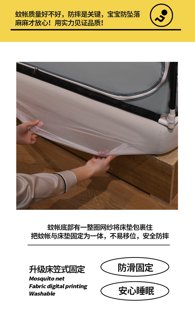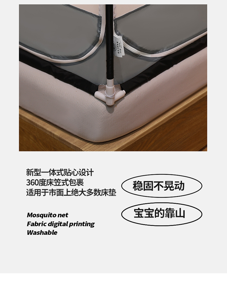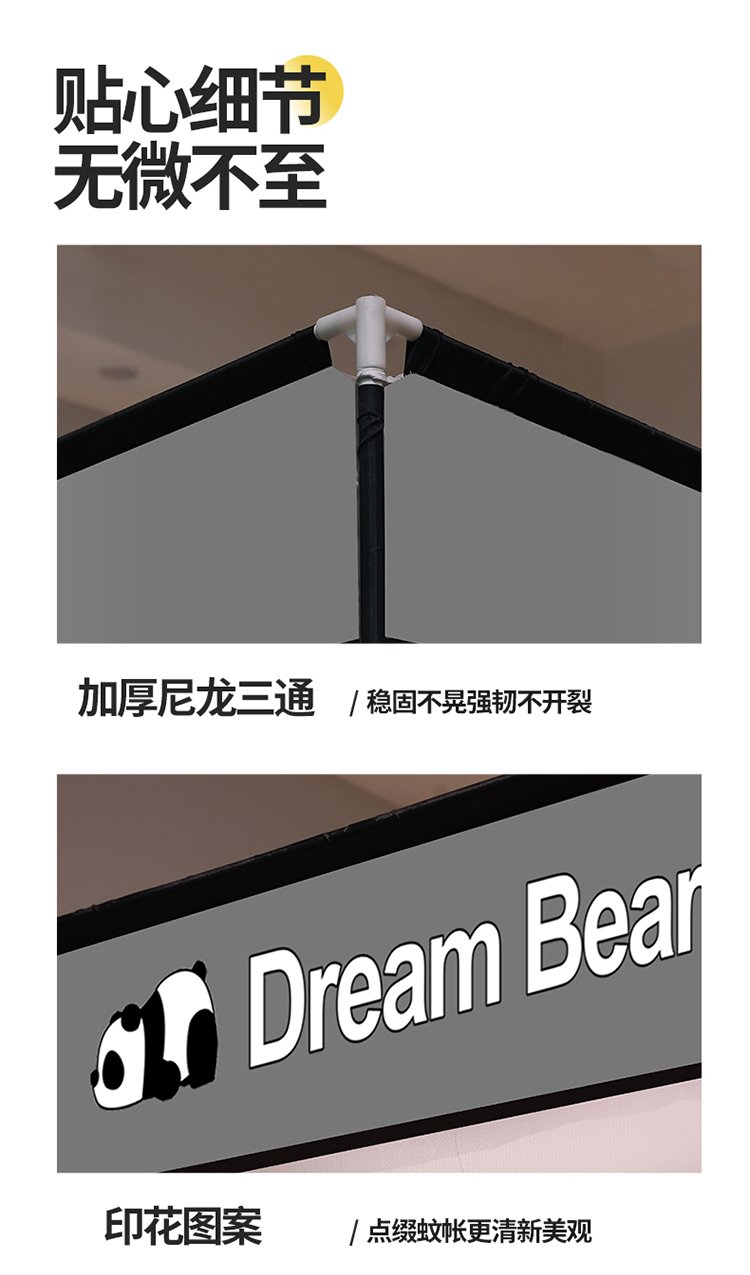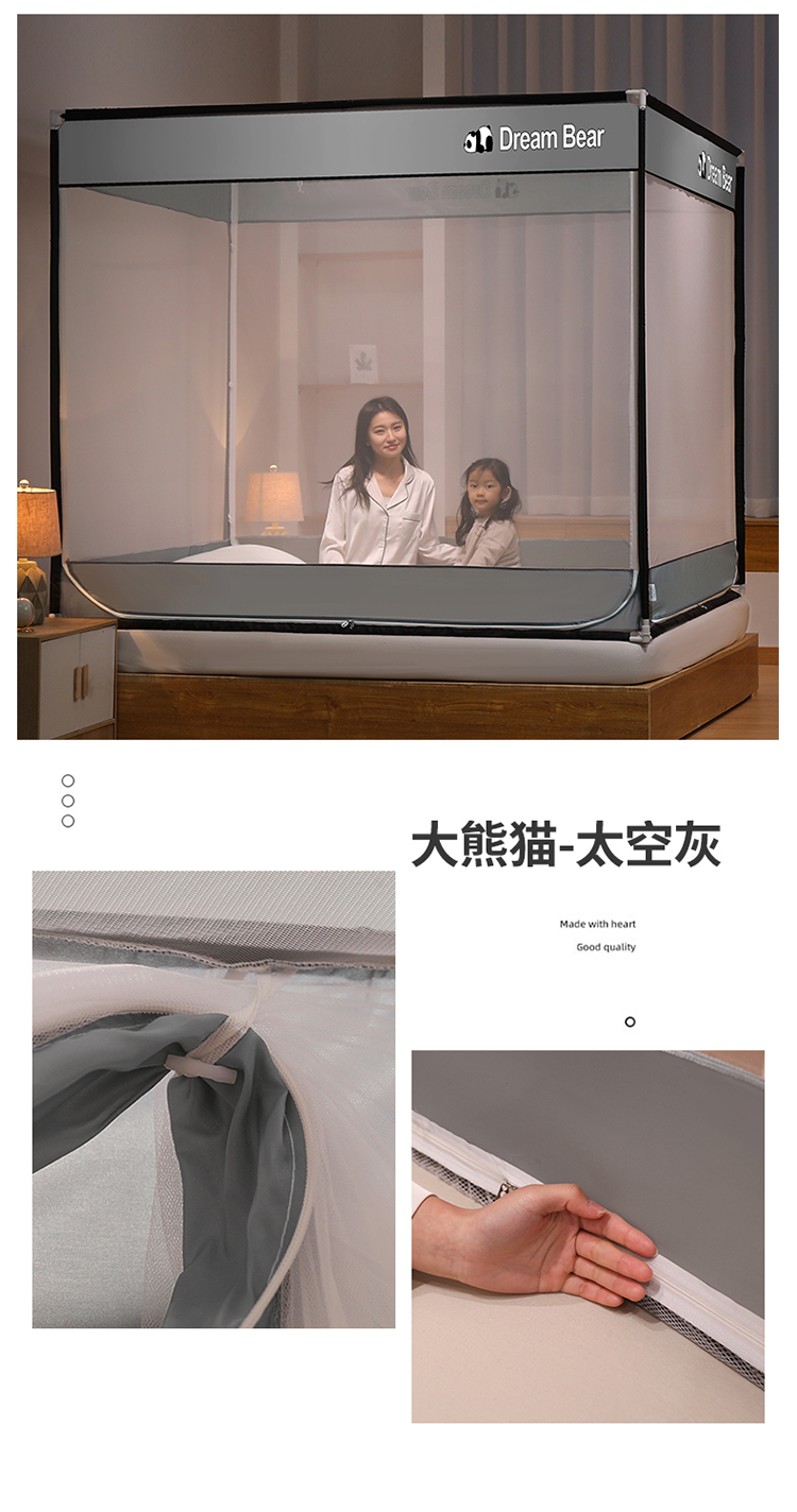 商品名称:宅部落2023年床笠款防摔坐立蚊帐 大熊猫-太空灰