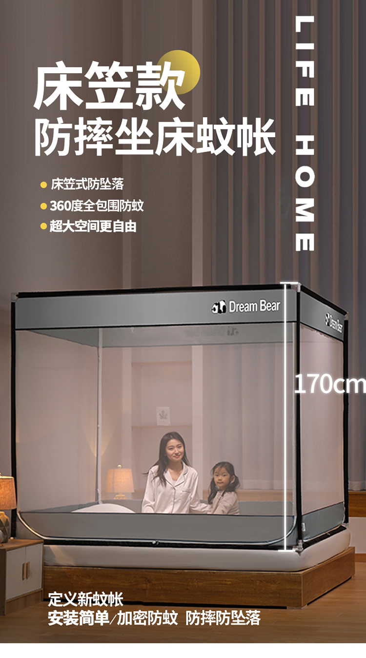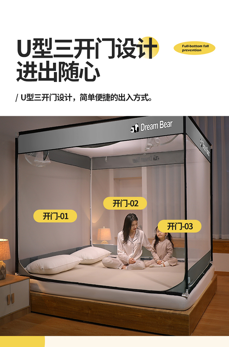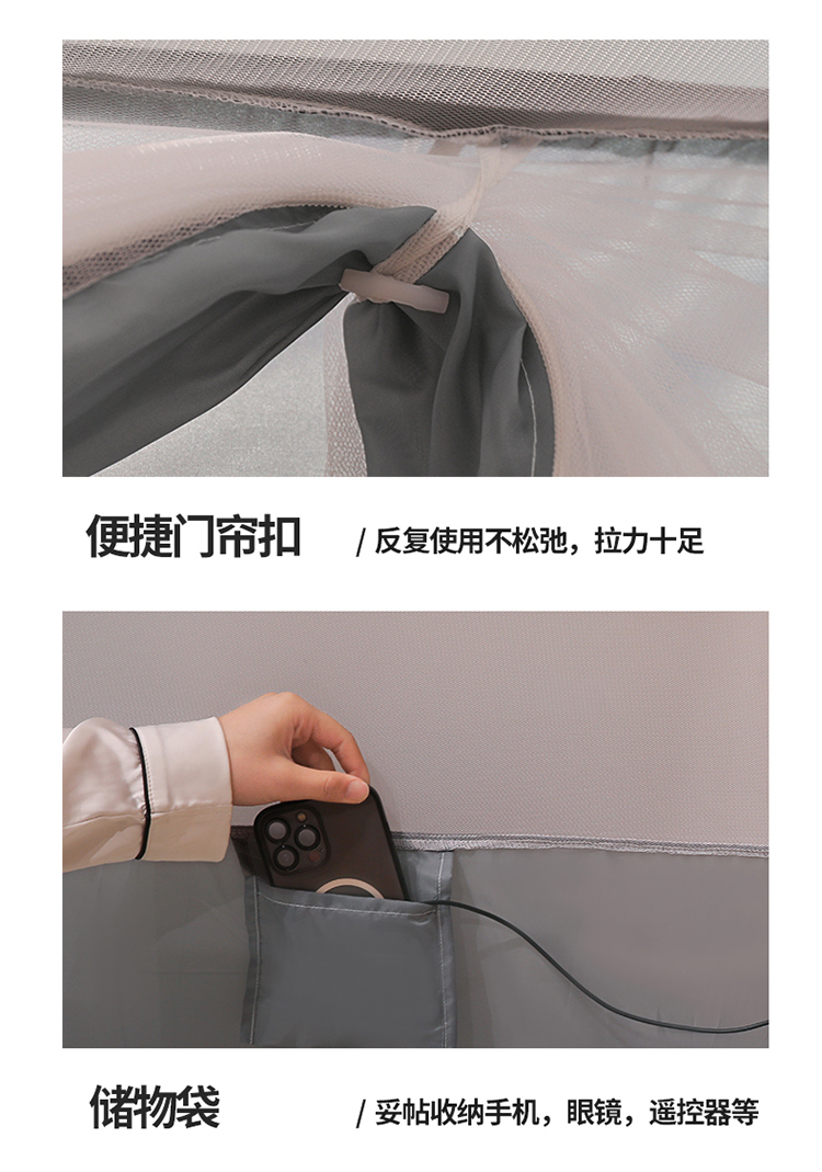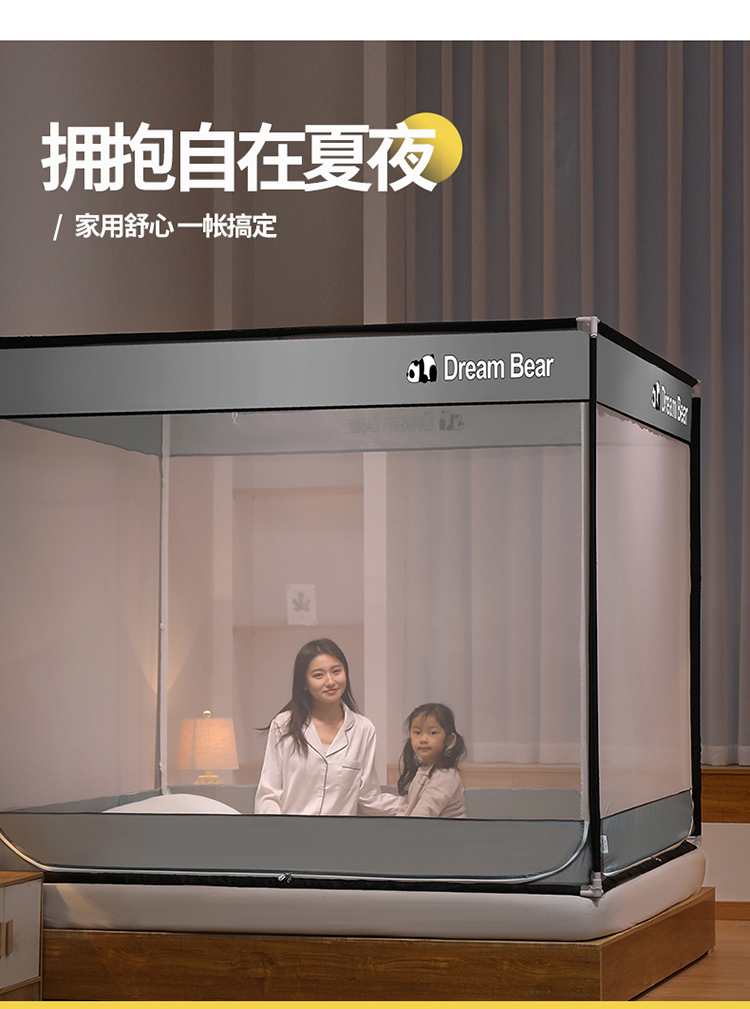 宅部落2023年床笠款防摔坐立蚊帐 大熊猫-太空灰