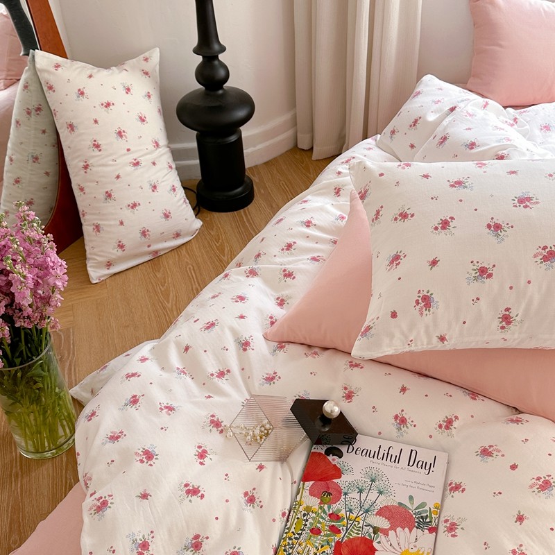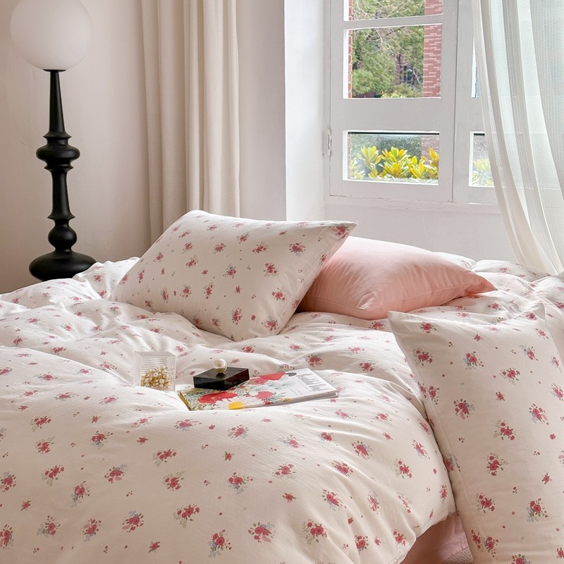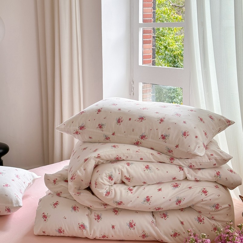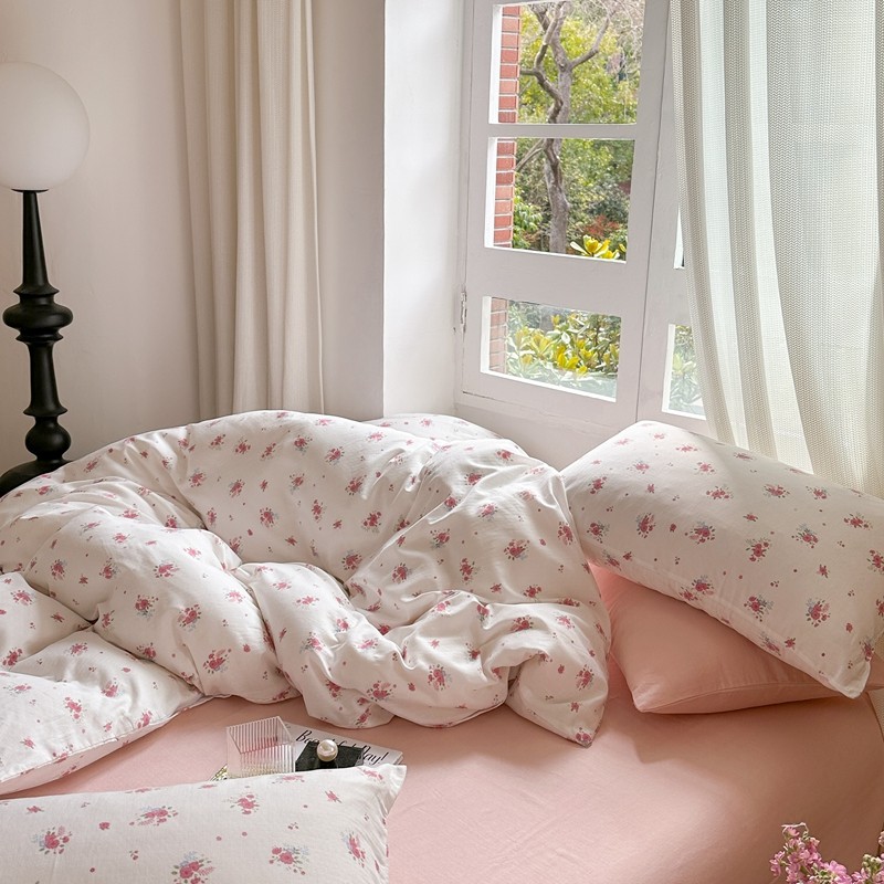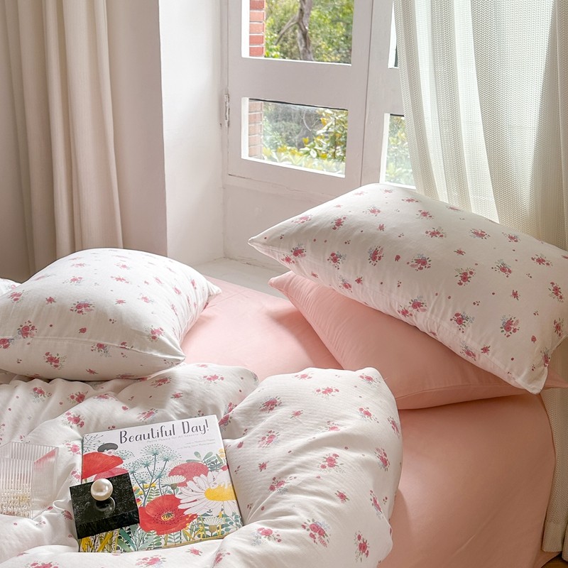 商品名称:时年 2023新款全棉母婴级有氧双层纱夏被四件套 陌上花开-粉