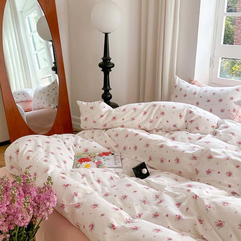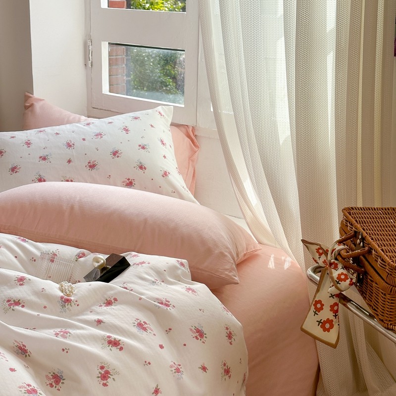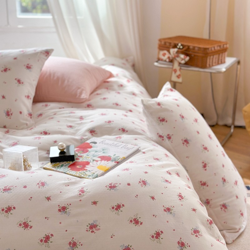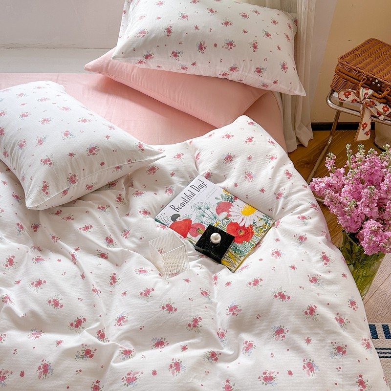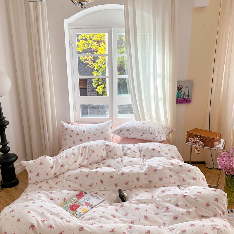 商品名称:时年 2023新款全棉母婴级有氧双层纱夏被四件套 陌上花开-粉