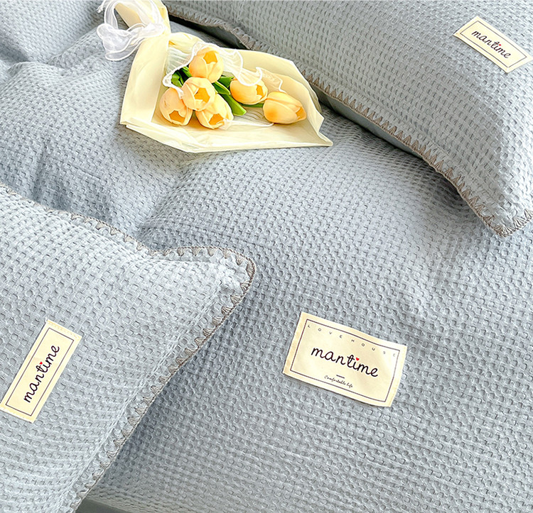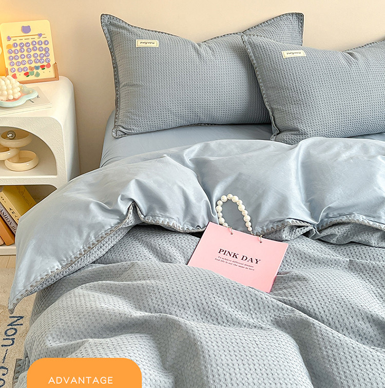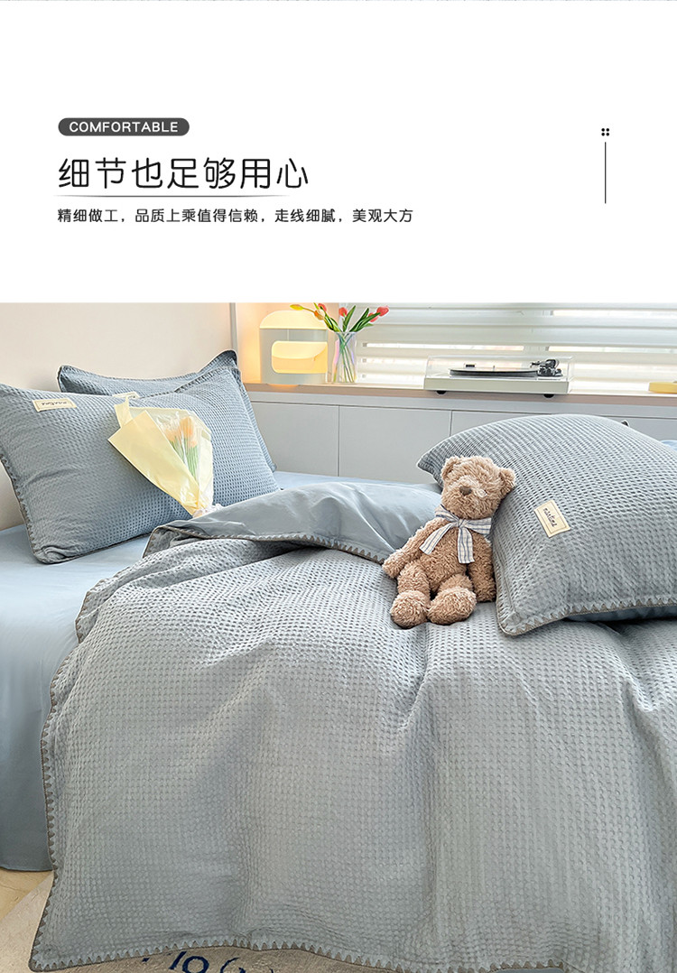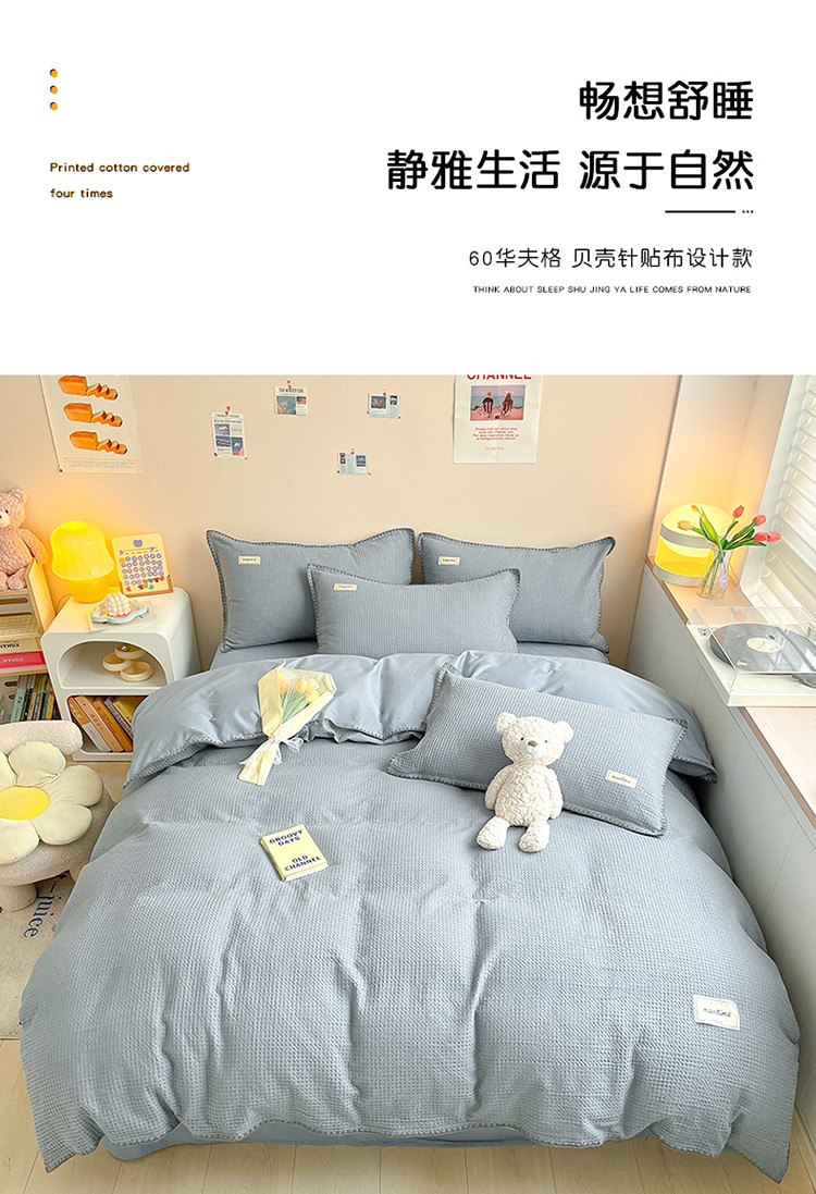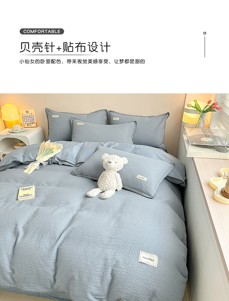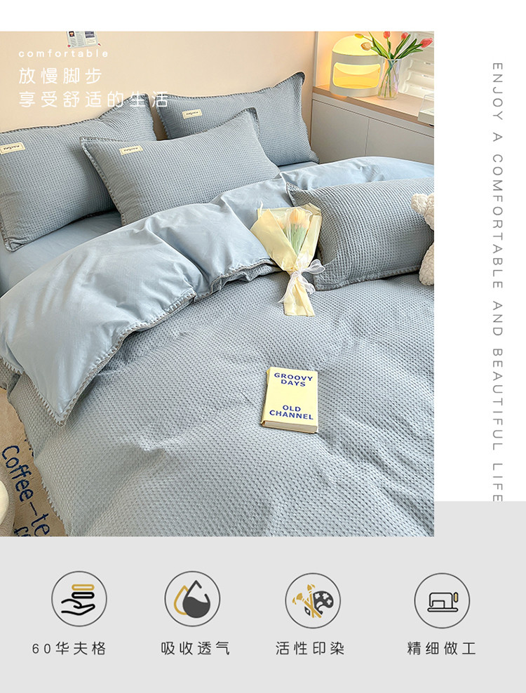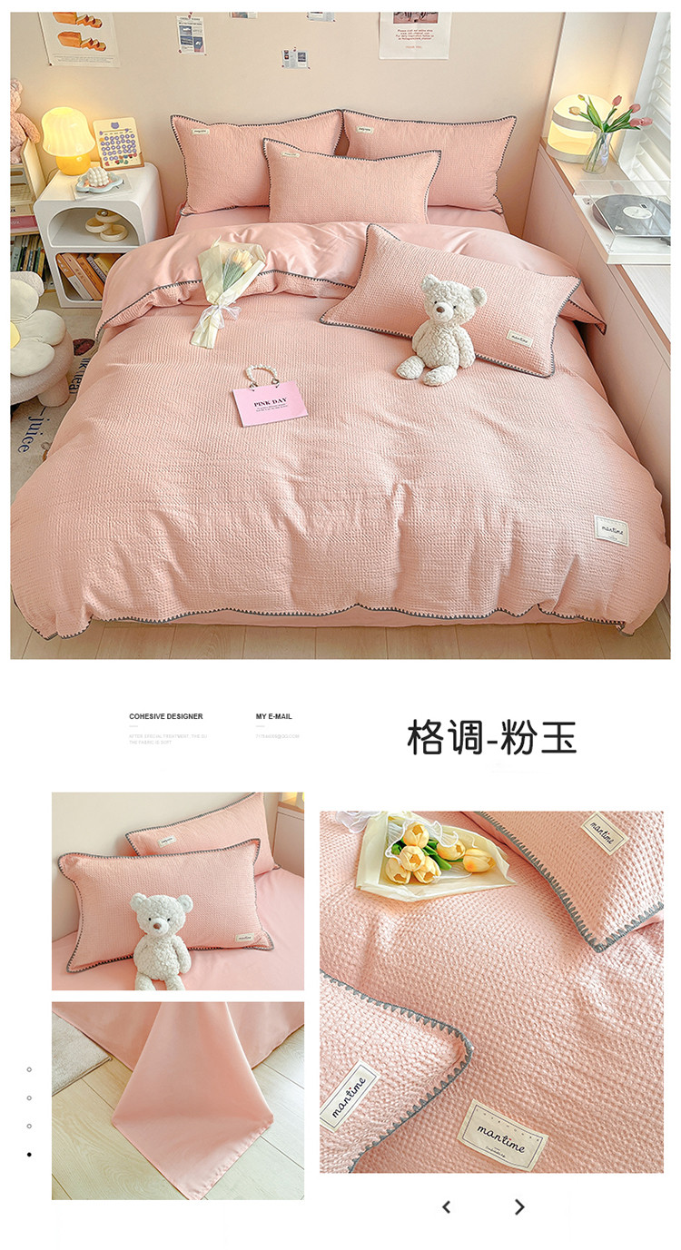 (总)静家居-简约原创家纺 四季款三层纱本色加厚提花四件套,本色-海盐蓝,本色-灰,本色-米咖,本色-松弛粉