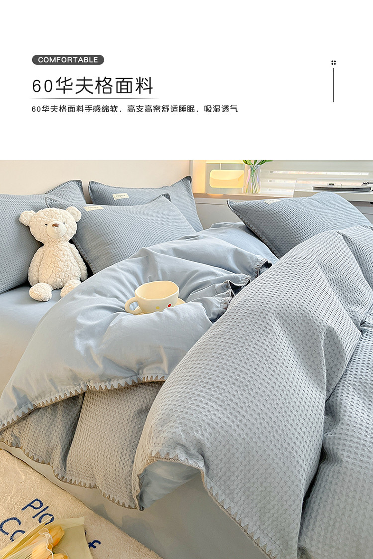 (总)静家居 2025新款全棉纯棉华夫格北欧小熊刺绣四件套系列-风格二,北欧小熊-白咖,北欧小熊-鹅黄,北欧小熊-粉玉,北欧小熊-黄绿,北欧小熊-咖,北欧小熊-露草,北欧小熊-绿,北欧小熊-浅灰