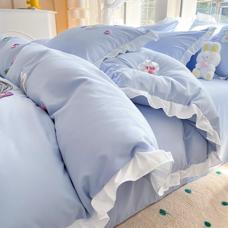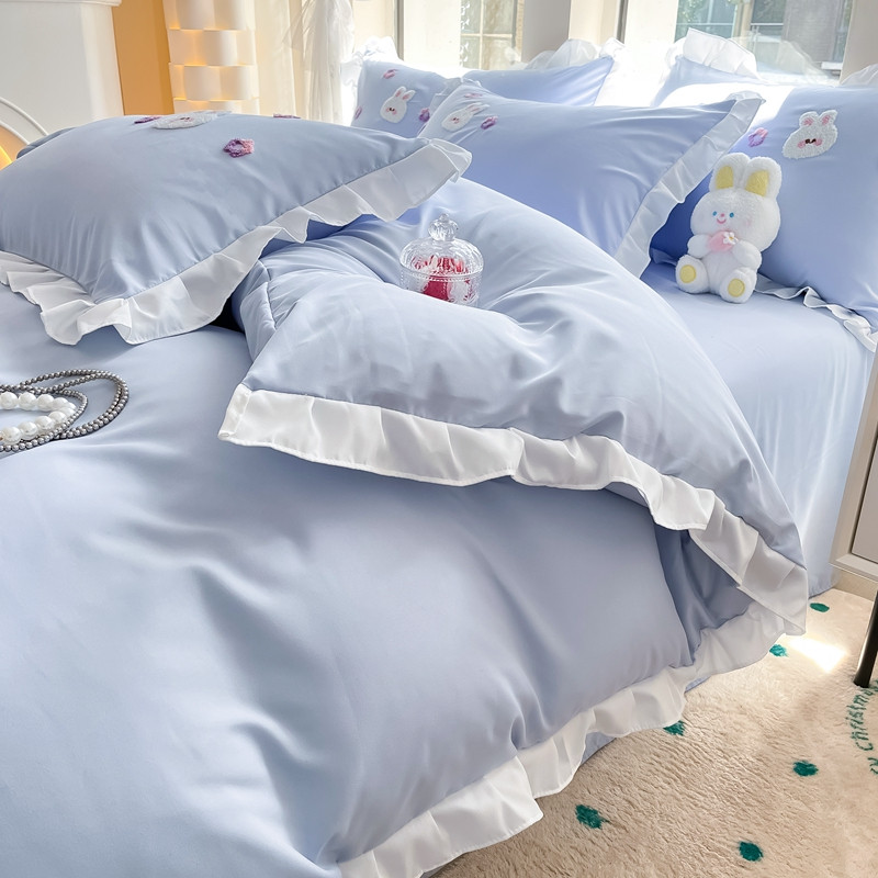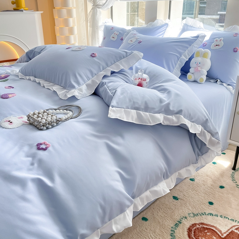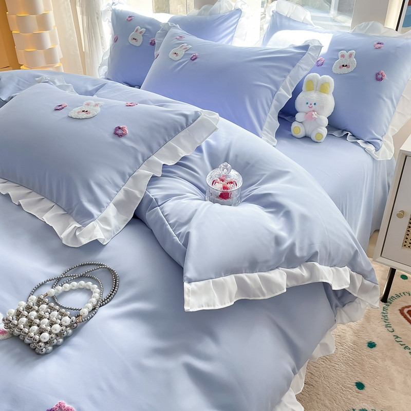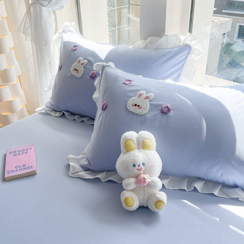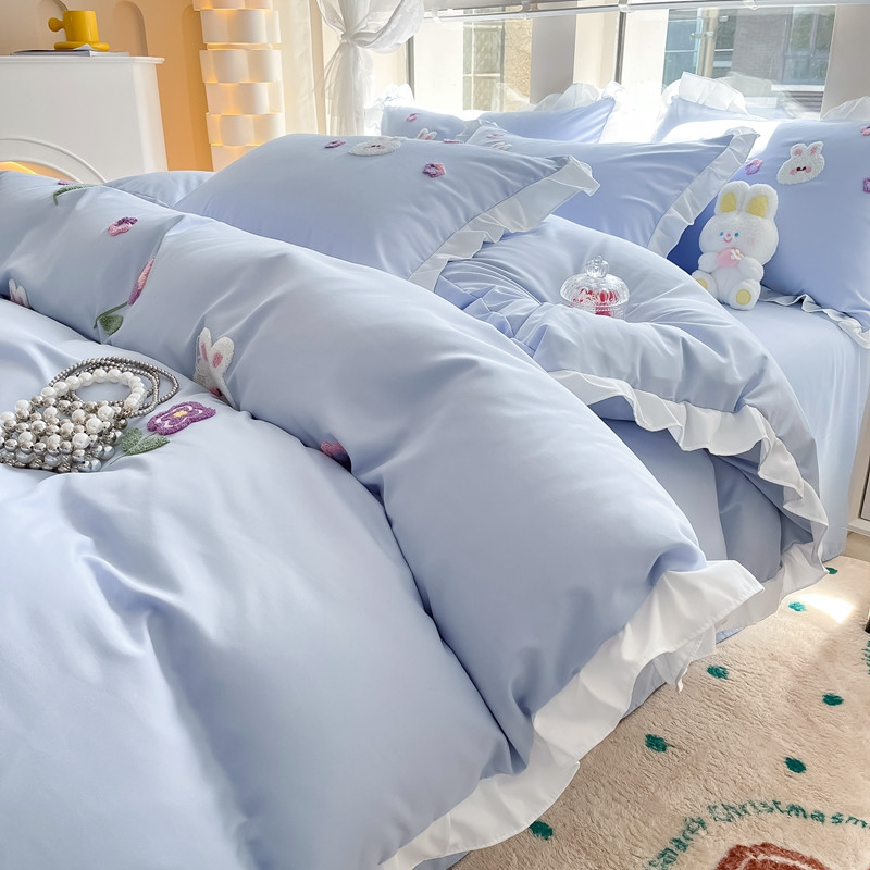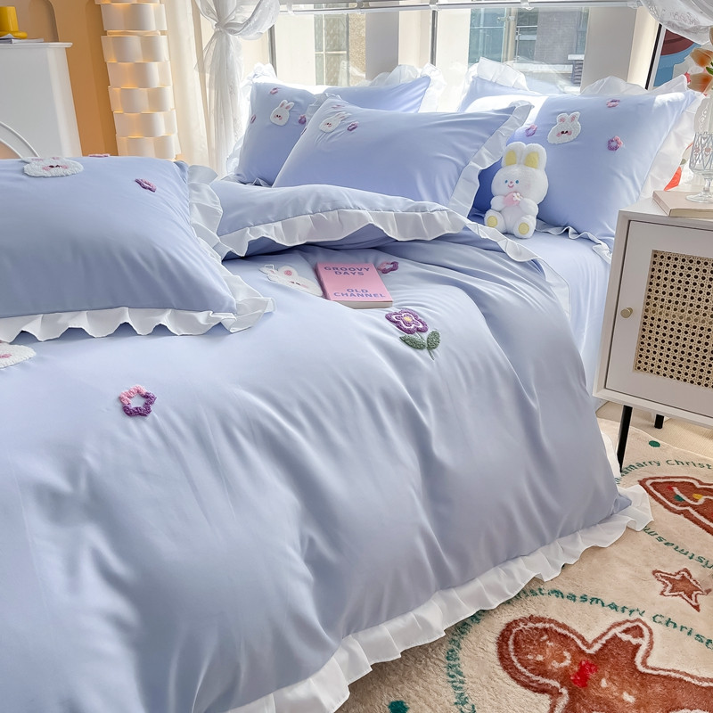 芯贝儿2023新款小清新卡通贴布绣水洗m毛巾绣花四件套 可爱兔--蓝